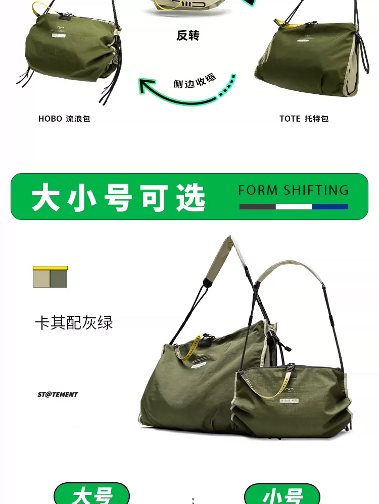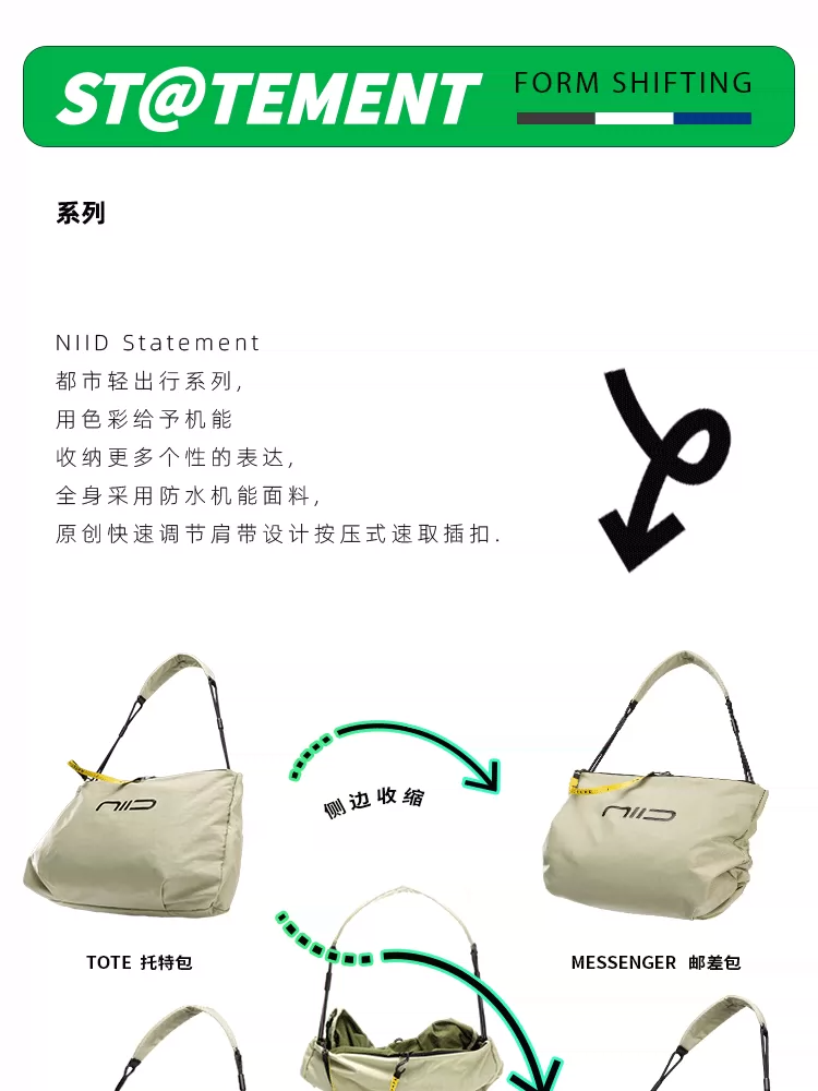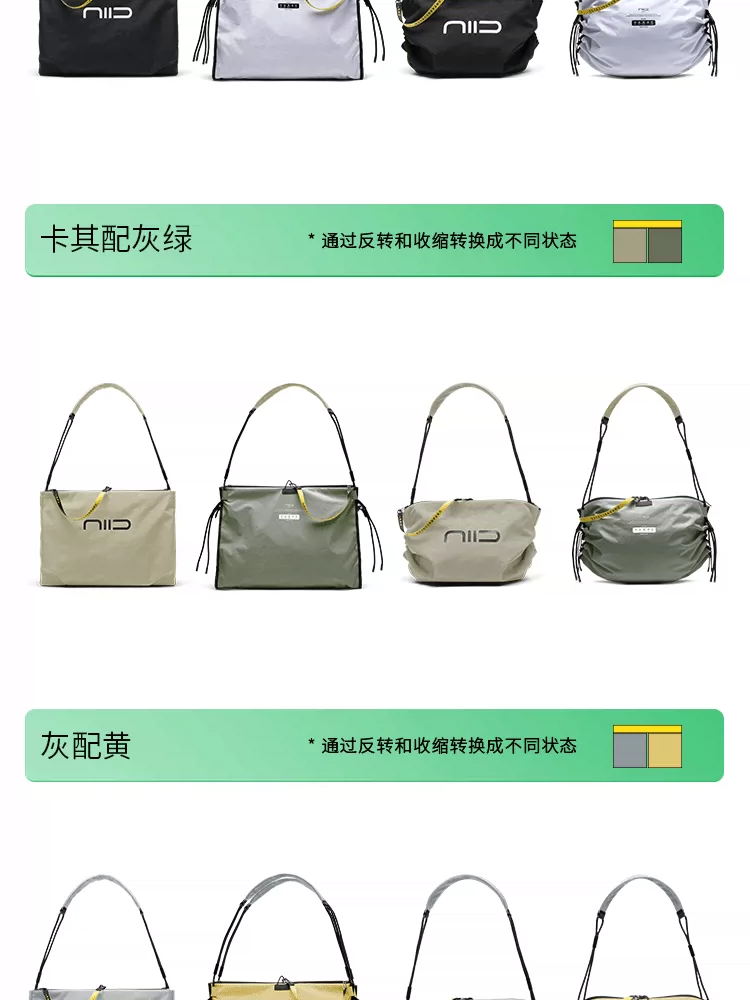 【1包2色4用】NIID-S7变形包袱包机能潮包(3-834)