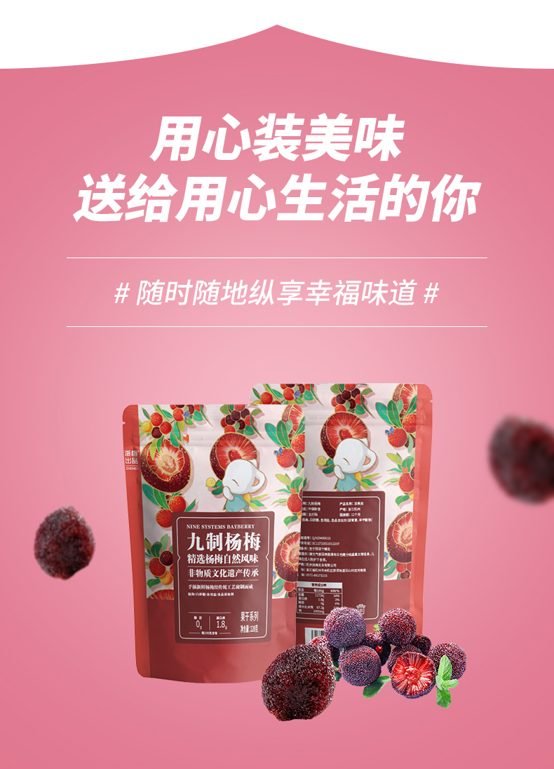 浙梅九制杨梅128g*3袋蜜饯干果酸梅休闲零食杨梅干果办公室零食