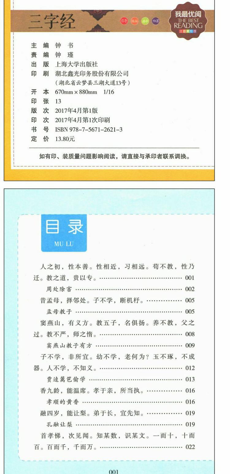 1-3年级适用 注音美绘版-三字经 钟书正版少儿读物我优阅系列拼音彩图版三字经 儿童文学课外读物小学生作文阅读写作能力
