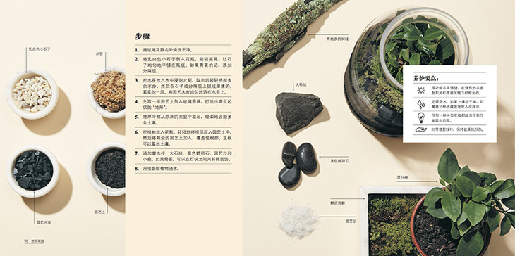 不会照料?没有时间?别再摧残那些绿植了!玻璃生态花园容易制作,养护简单,跟着《迷你花园:打造你的玻璃生态瓶》中的操作步骤,也可以成为园艺高手。