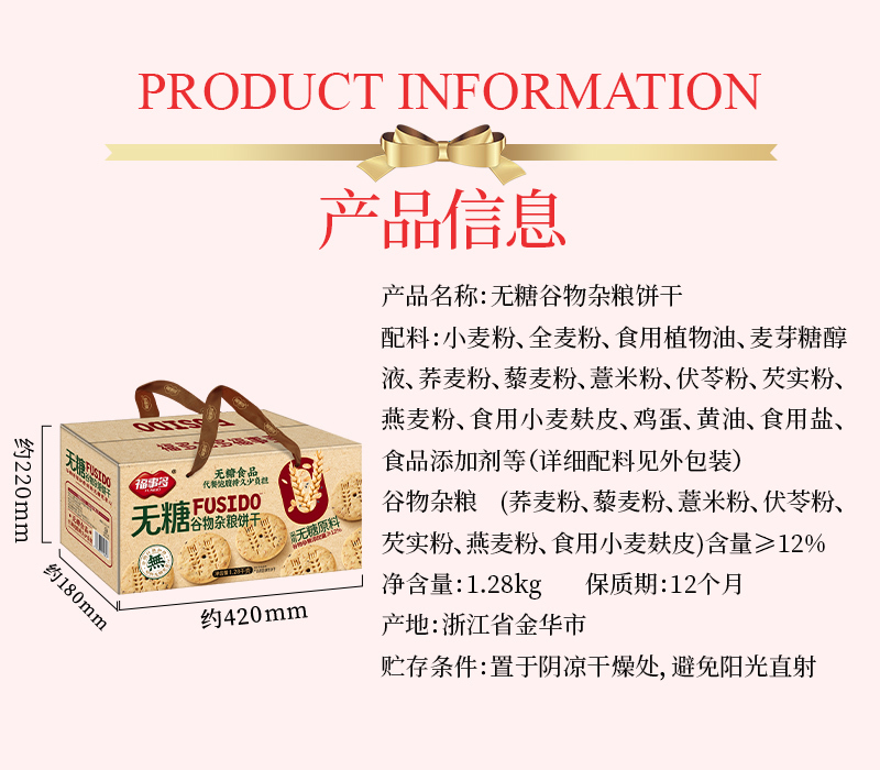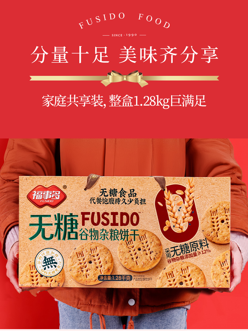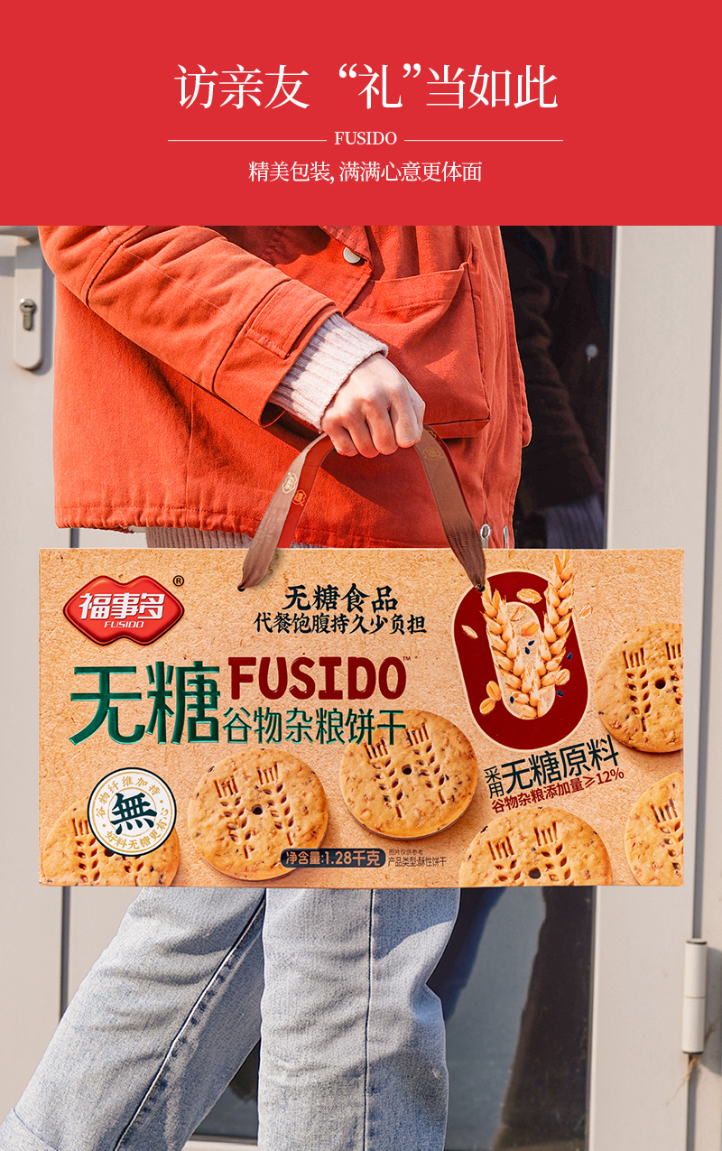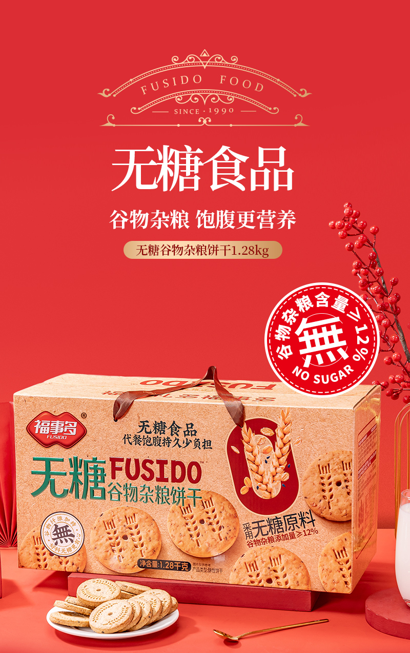 福事多无糖谷物杂粮饼干礼盒1280g