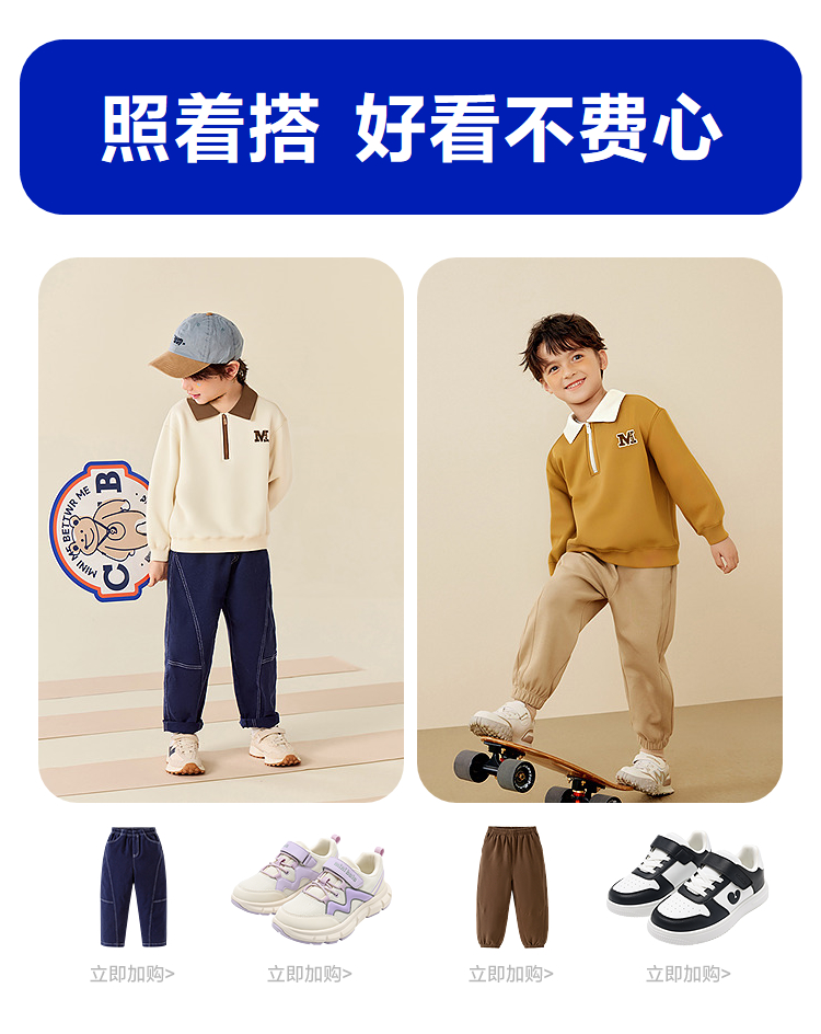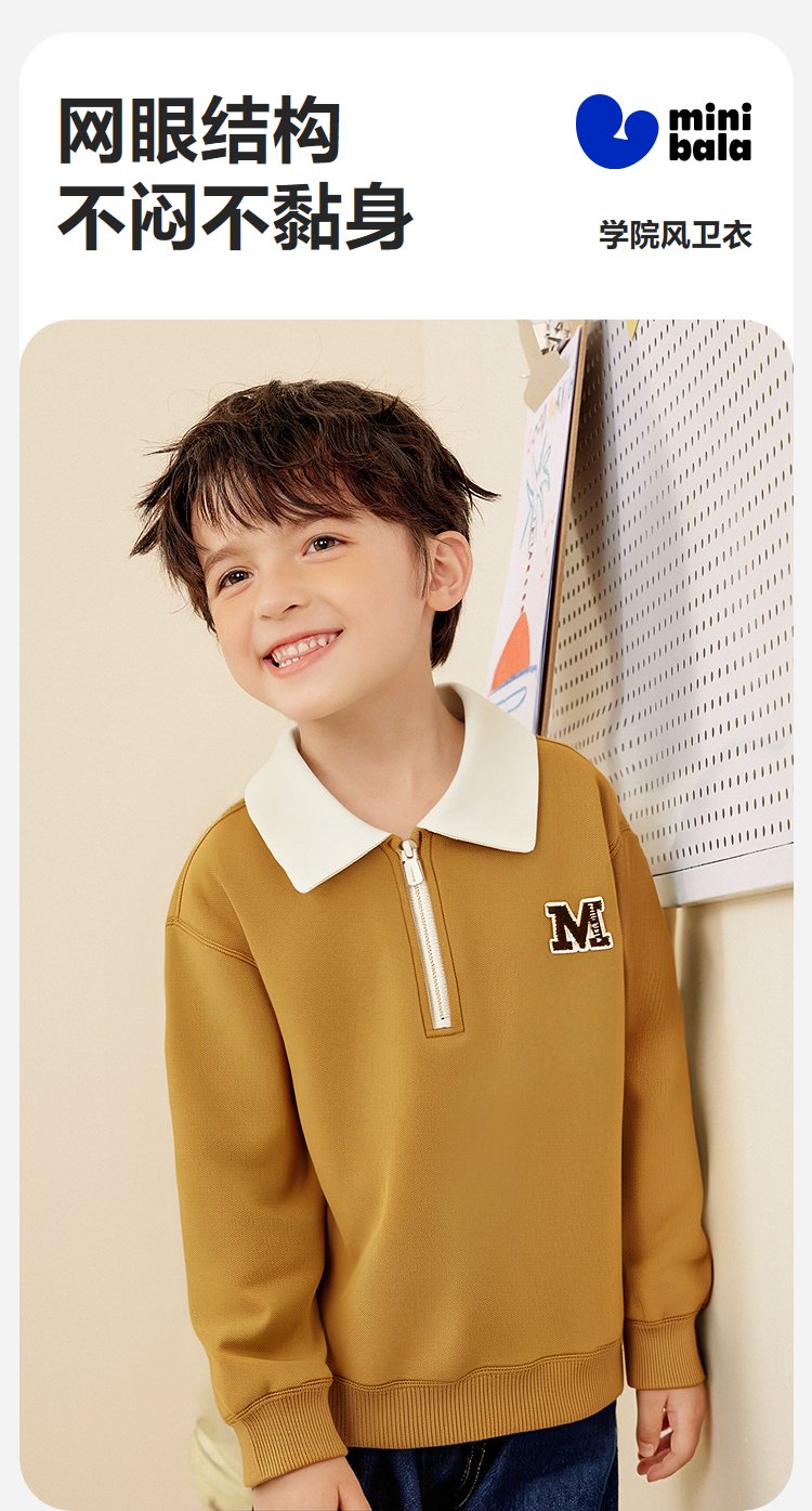 迷你巴拉男童卫衣儿童学院风柔软透气2025秋新品不易变形长袖上衣