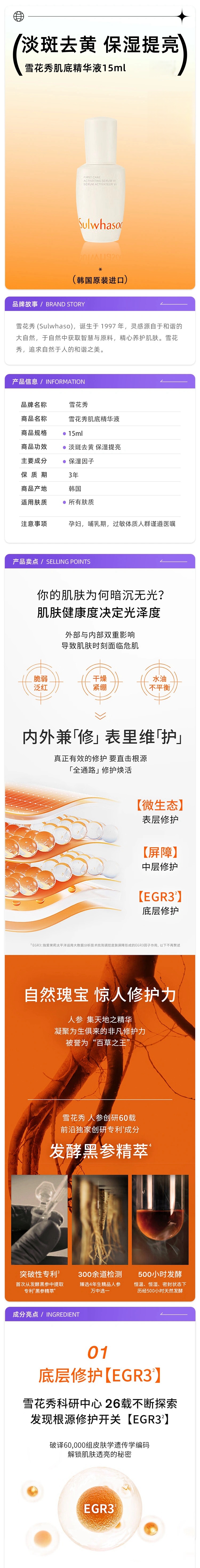 雪花秀全新第六代润致焕活人参肌底润燥精华15ml中样维稳修护祛黄提亮肤色抗老