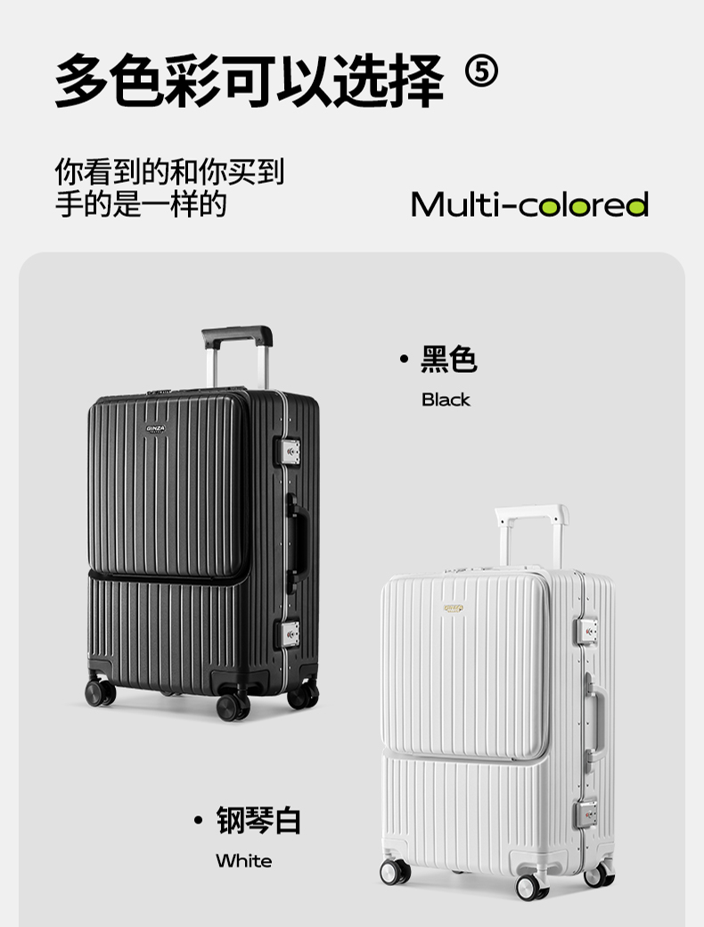 银座GINZA TRAVEL精致窄边24寸铝框前开盖行李箱系列6661K
