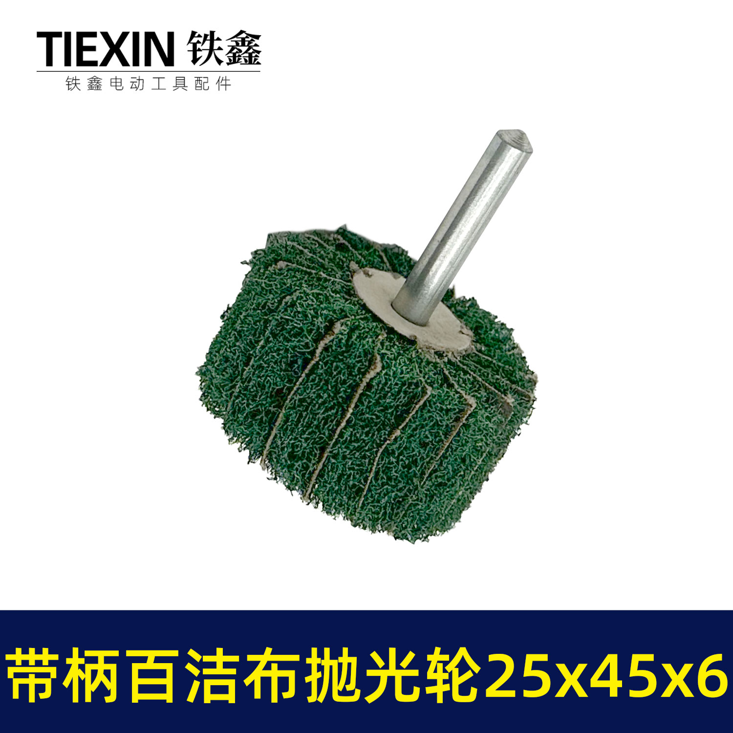 【货号03538】6毫米带柄百洁布磨头25*45*6圆头抛光头纤维磨头不锈钢抛光除锈轮拉丝轮飞翼轮