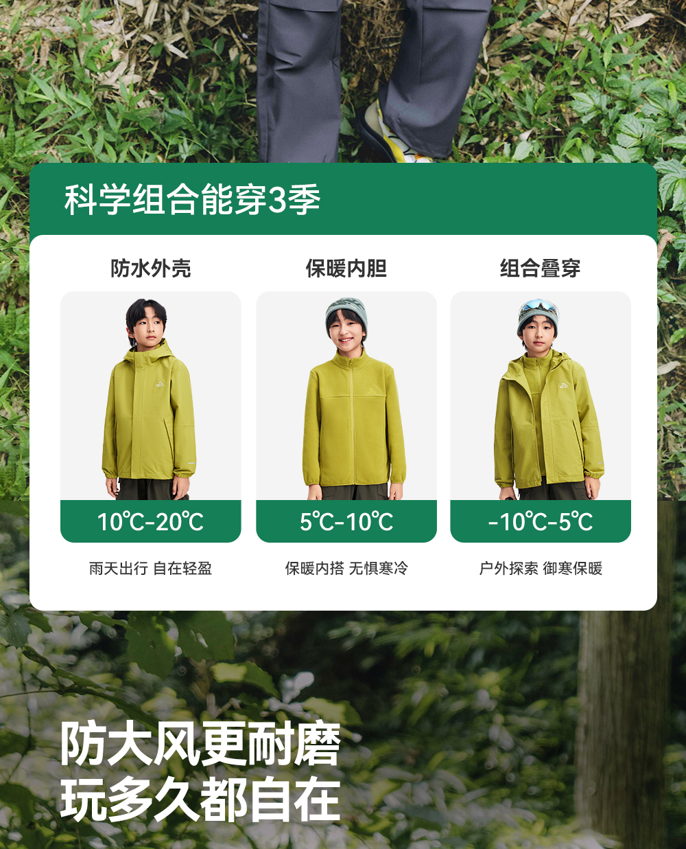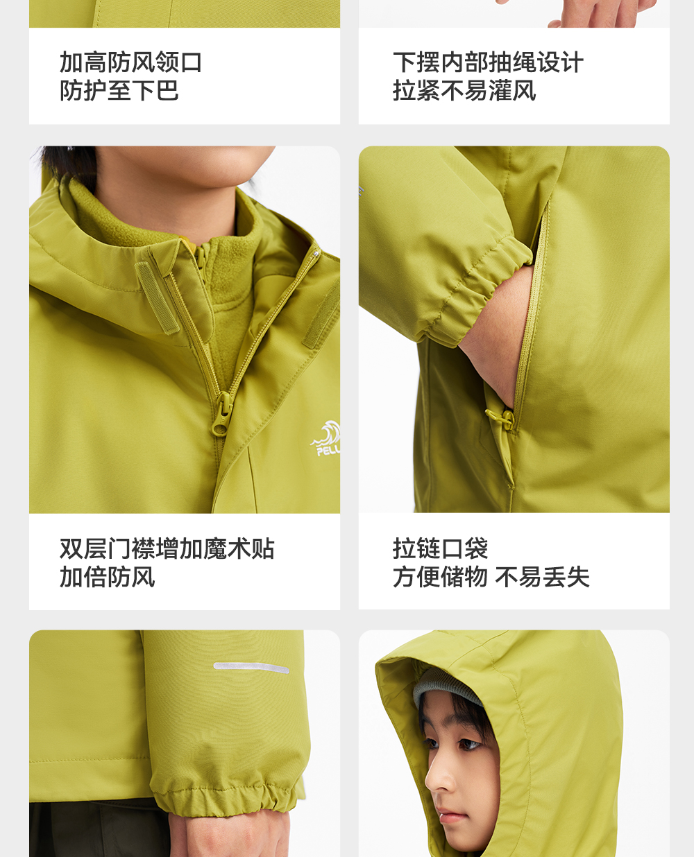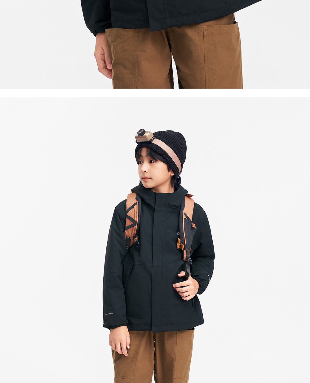 伯希和户外三合一冲锋衣儿童秋冬新款加厚摇粒绒内胆防水登山外套