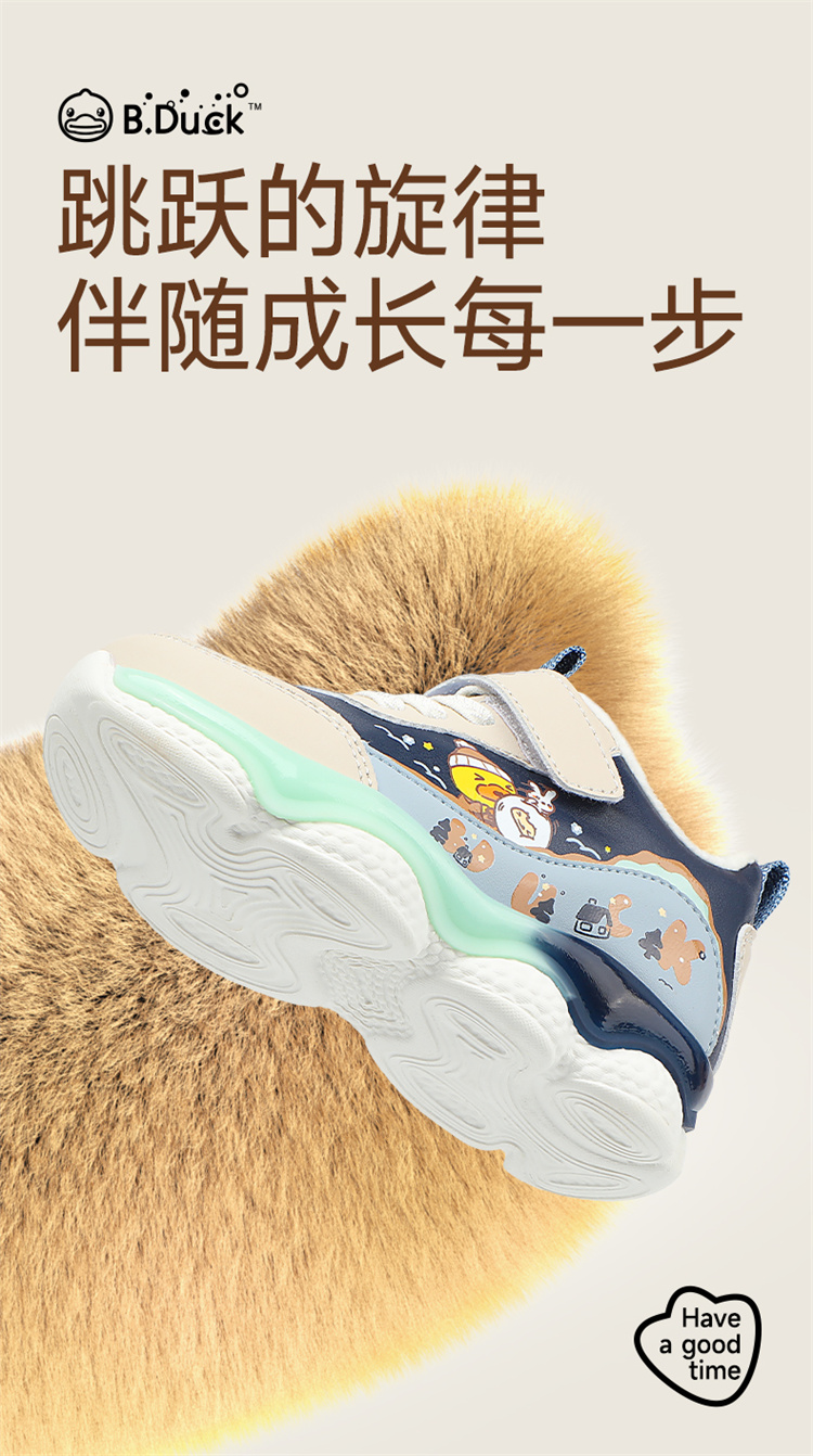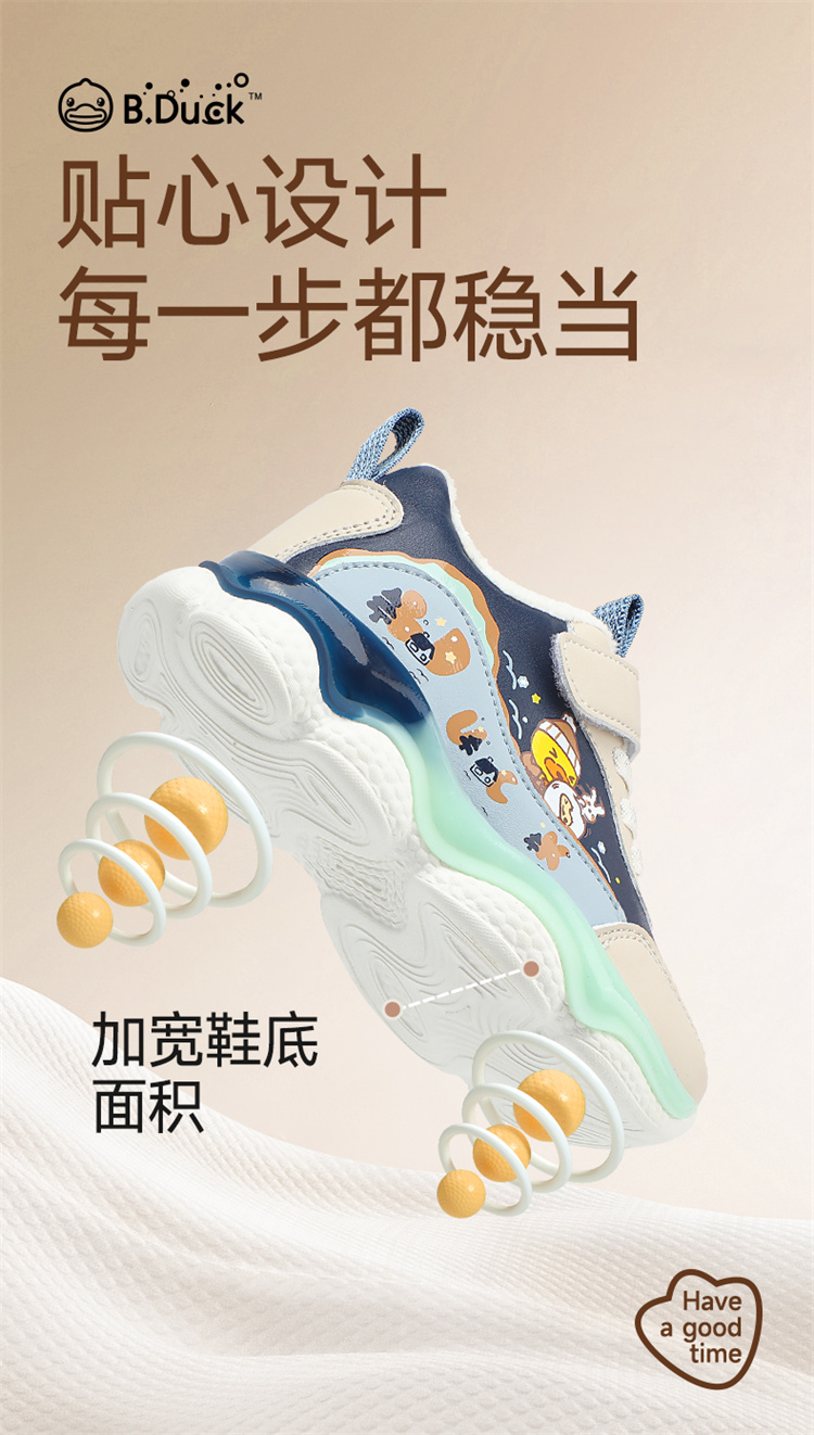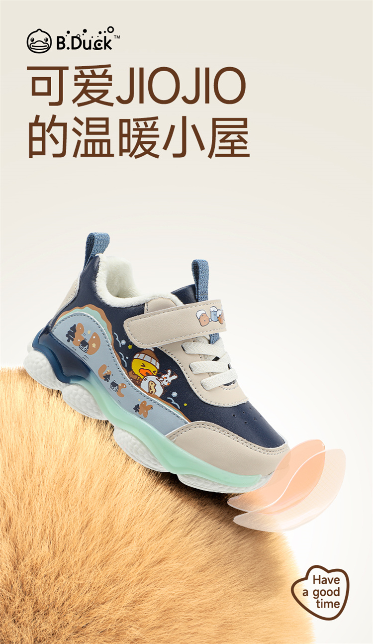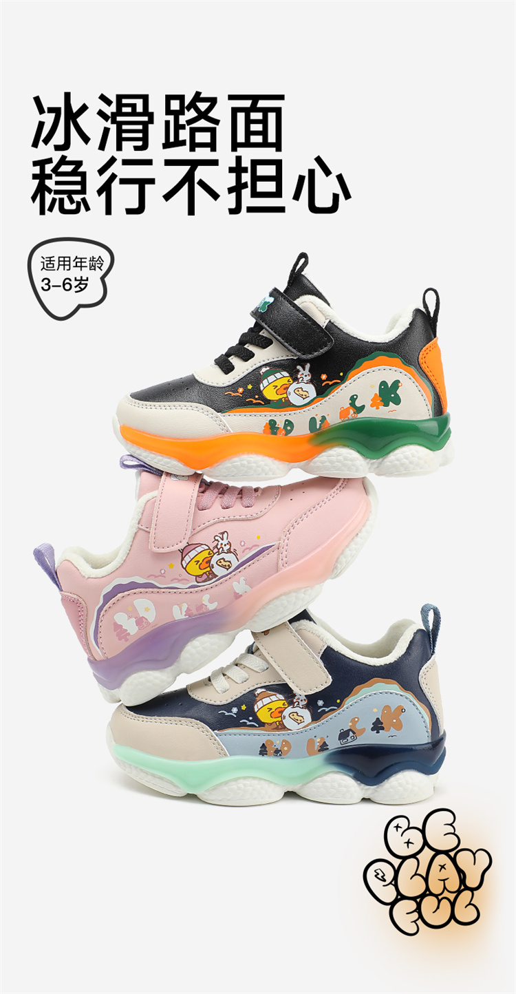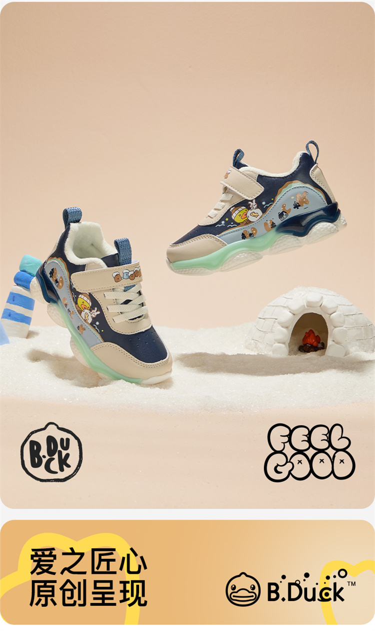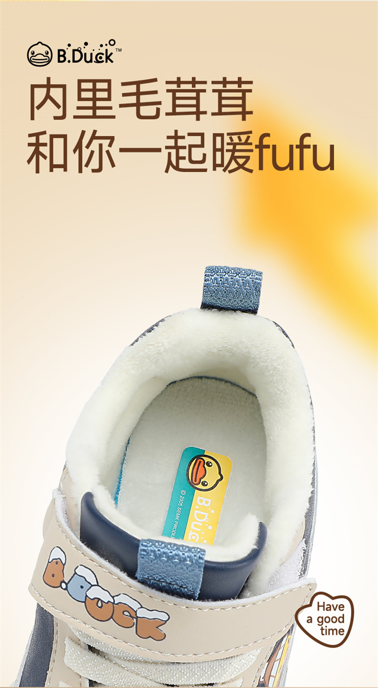 B.Duck小黄鸭童鞋防滑运动鞋冬季男女童加绒休闲鞋24-30 B5586971