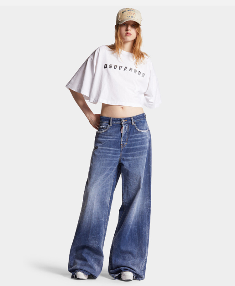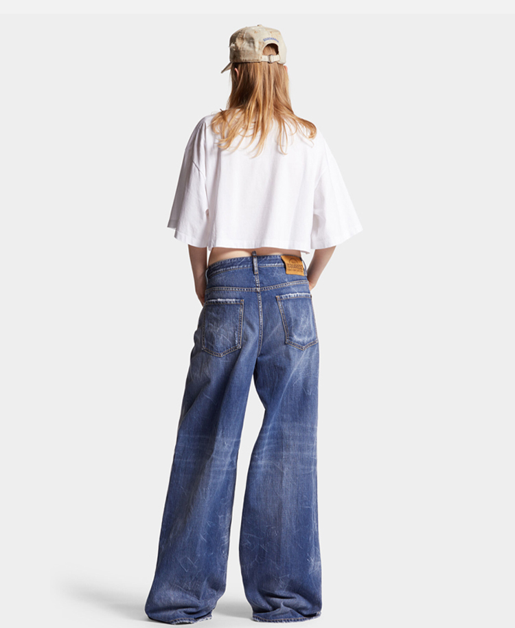DSQUARED2 女士徽标标签中号休闲牛仔裤 蓝色 S72LB0805 S30309 470
