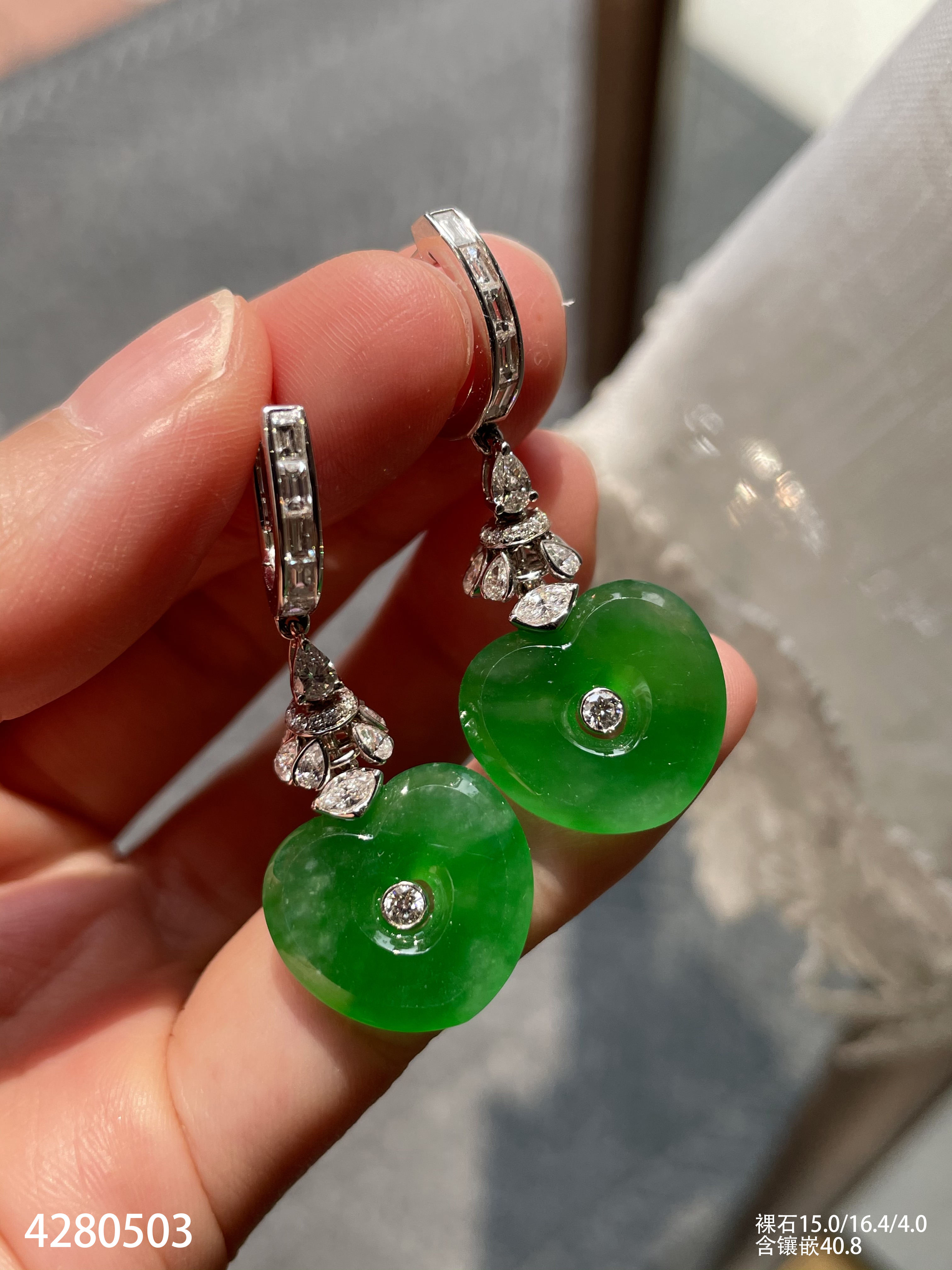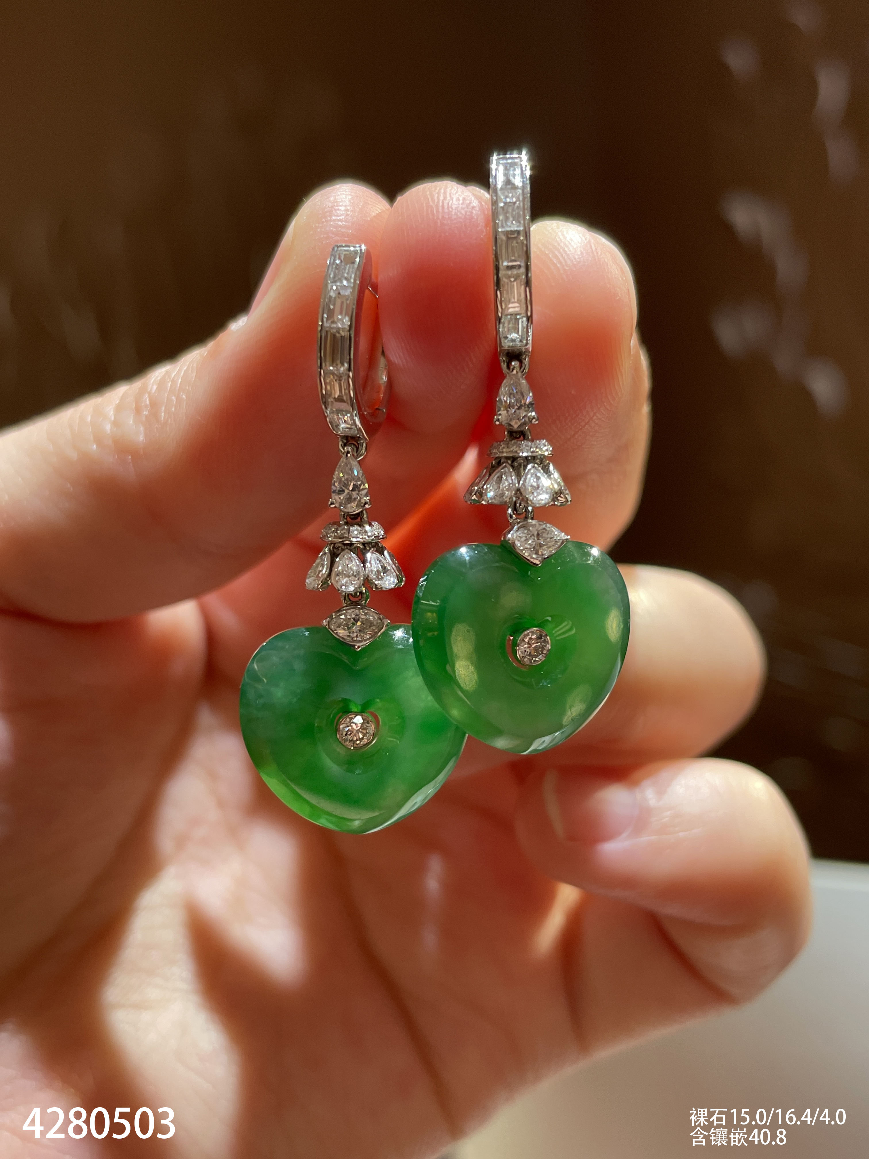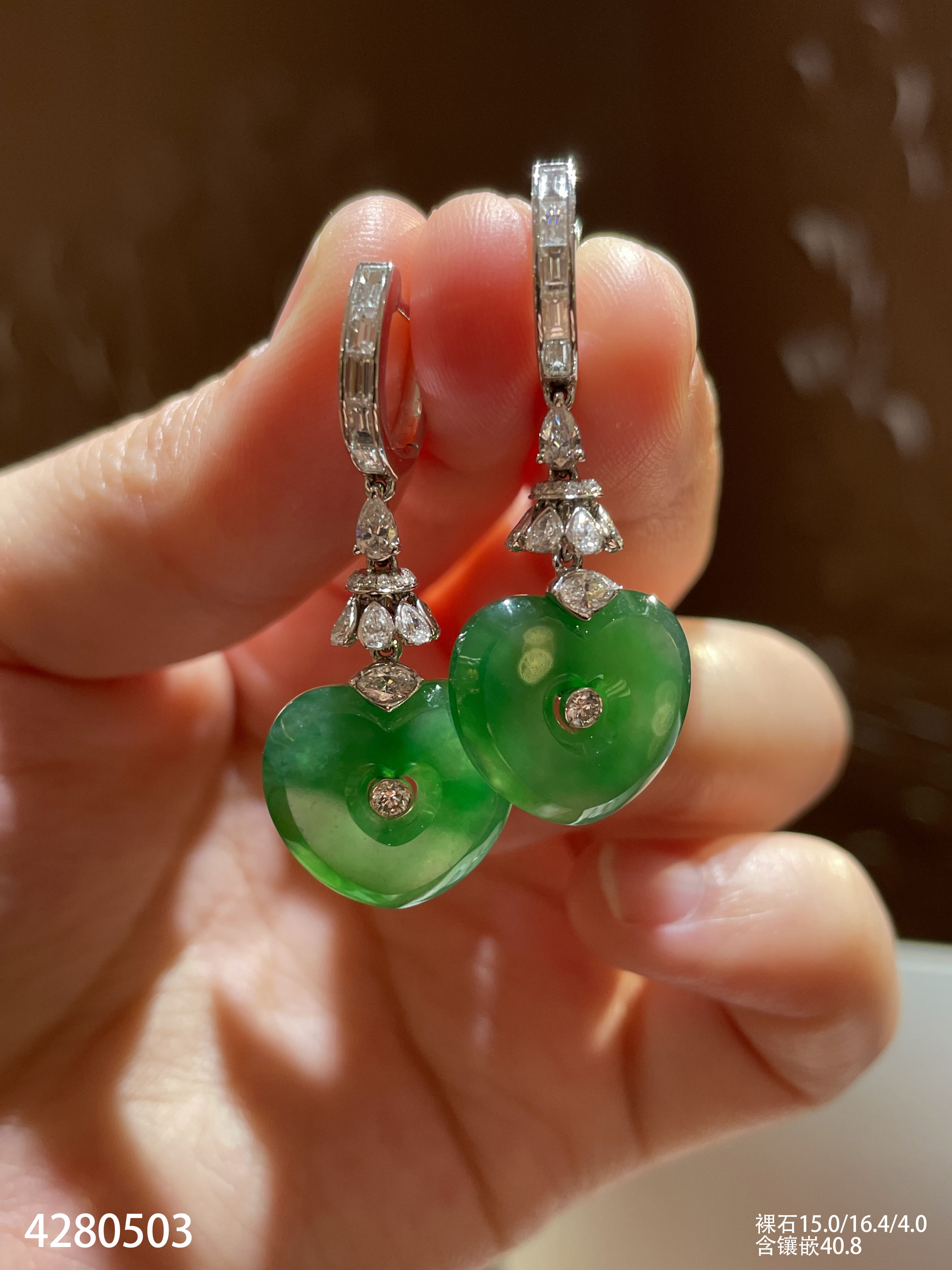 艳绿心形耳坠【4280503】具体价格微信咨询