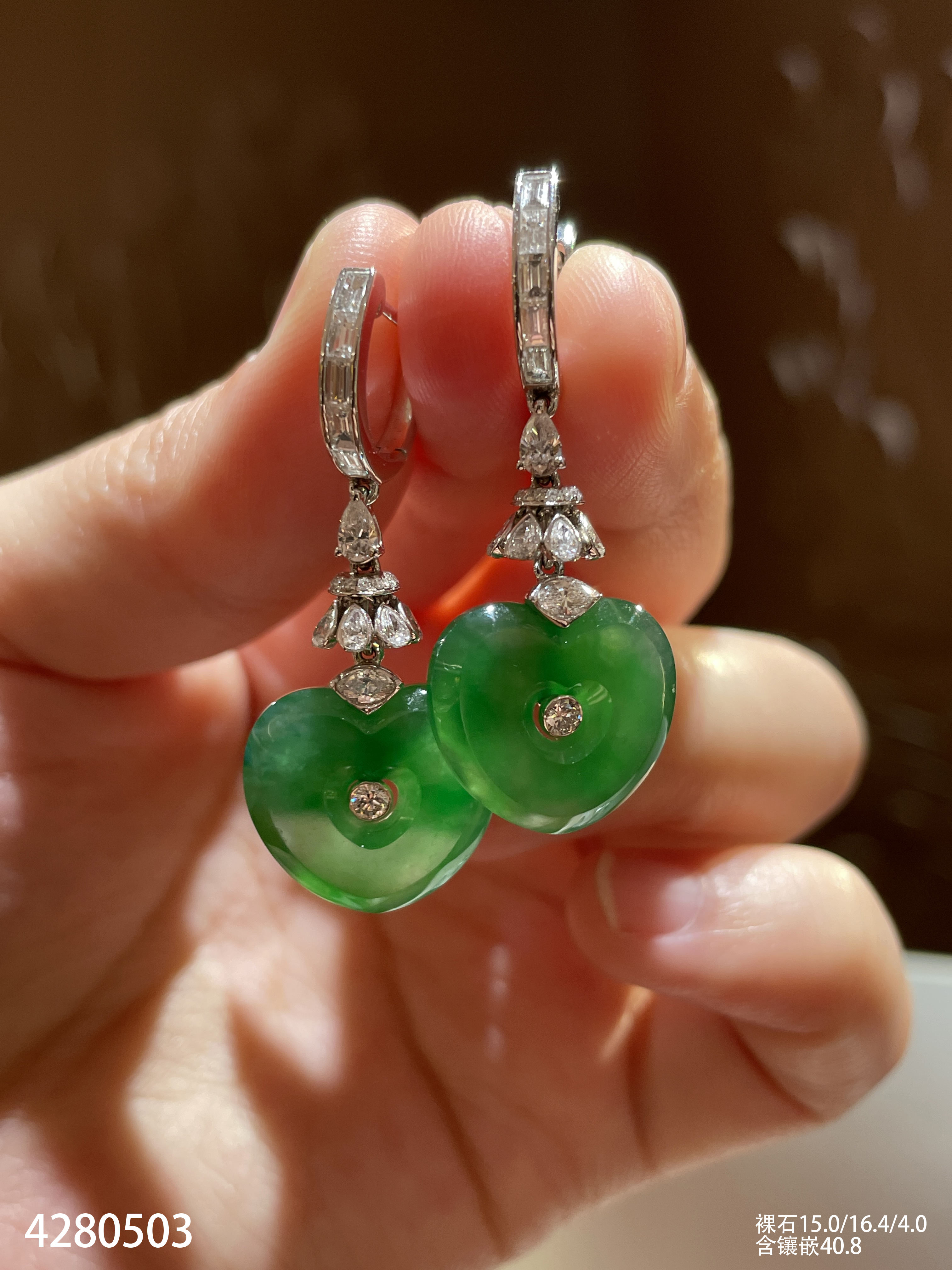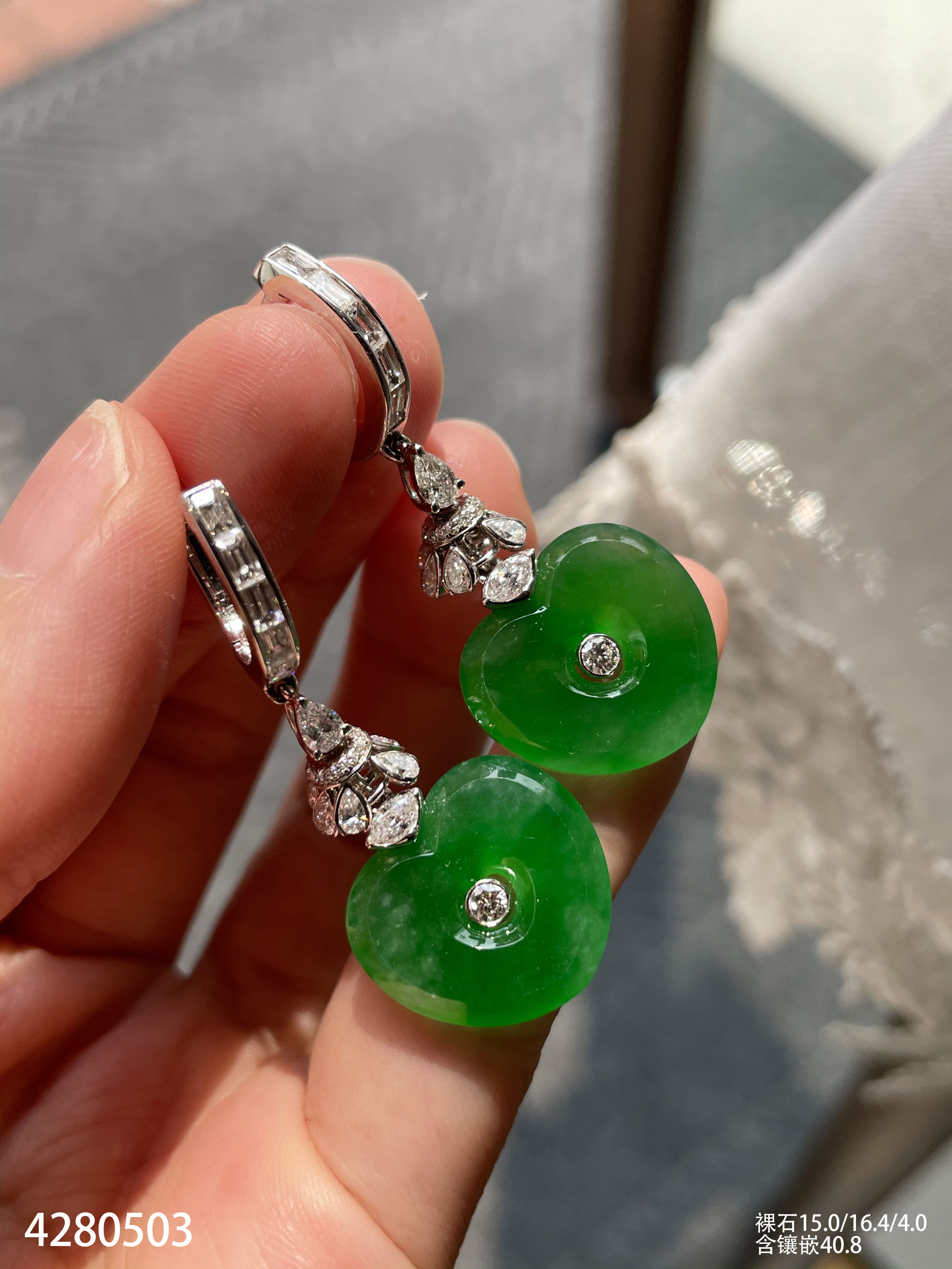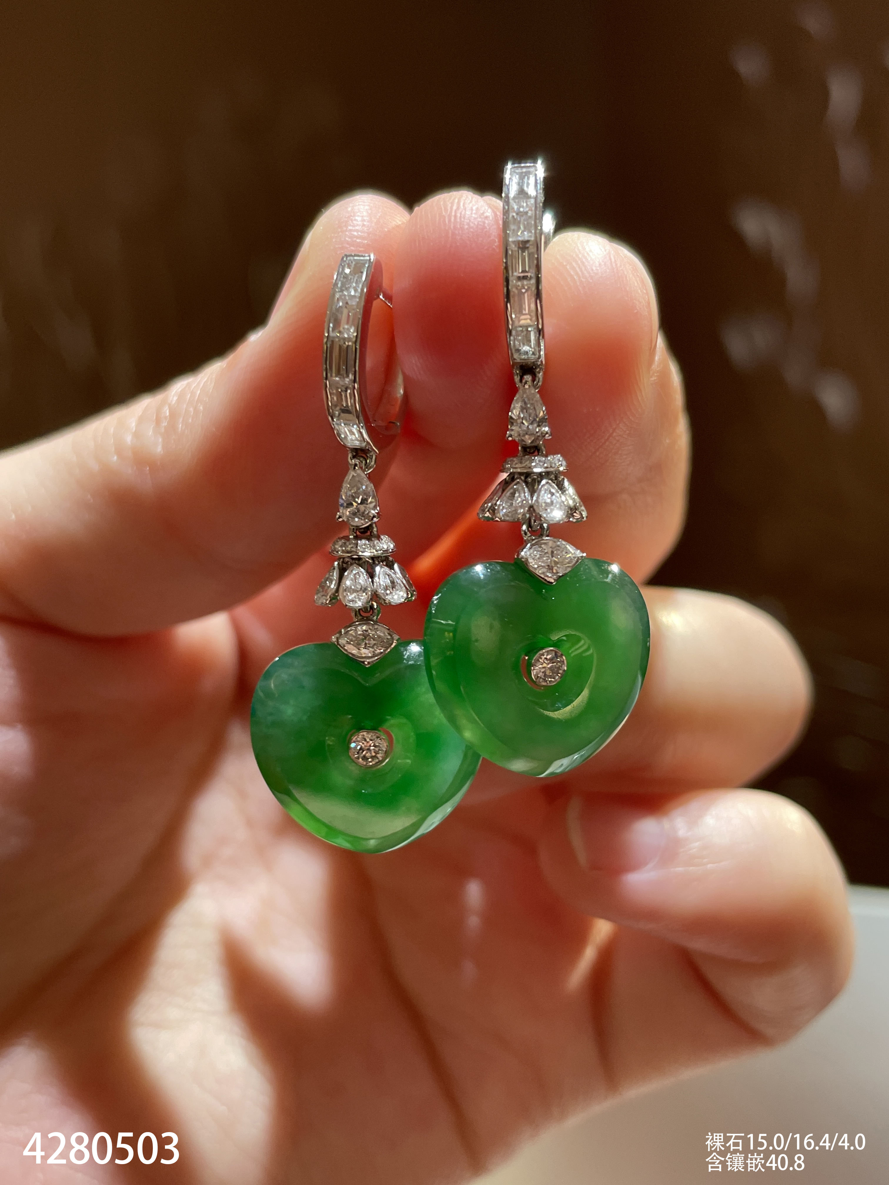 艳绿心形耳坠【4280503】具体价格微信咨询