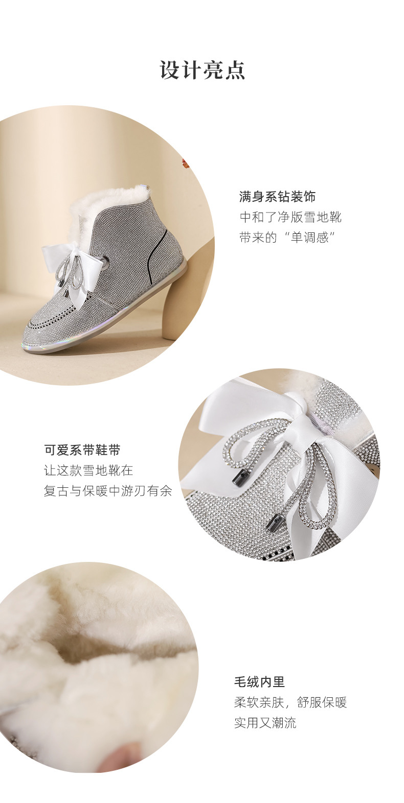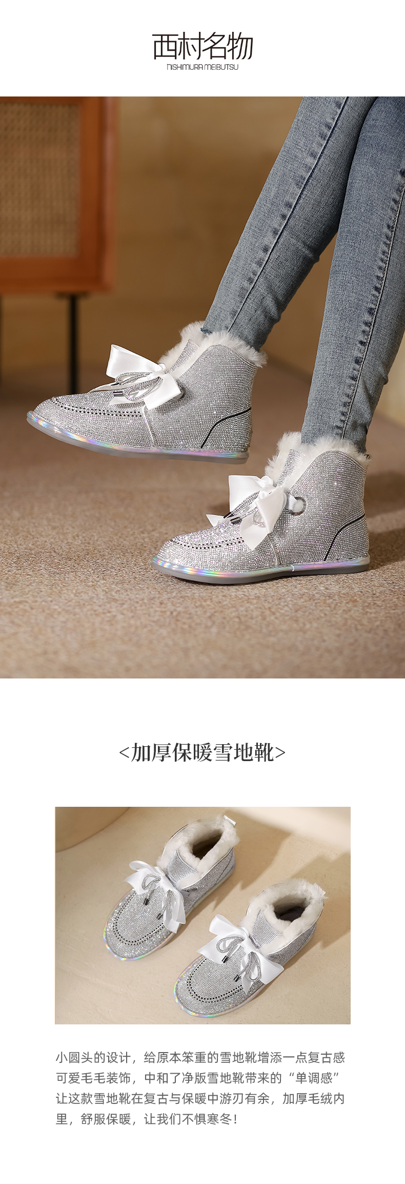 西村名物2021冬季新款平底学生靴子一脚蹬短靴女保暖雪地靴T21DS45161