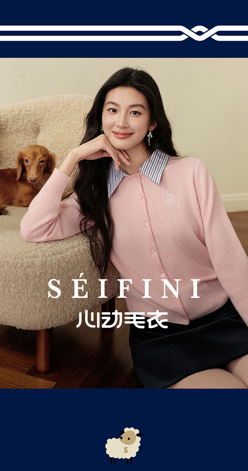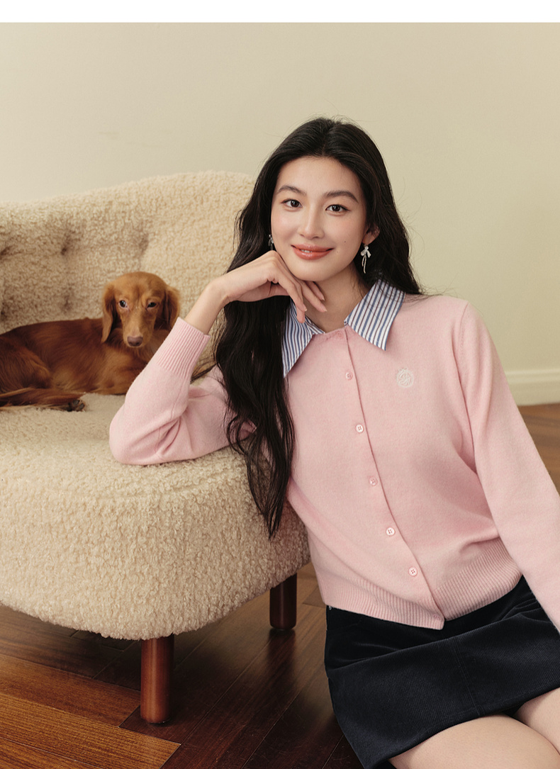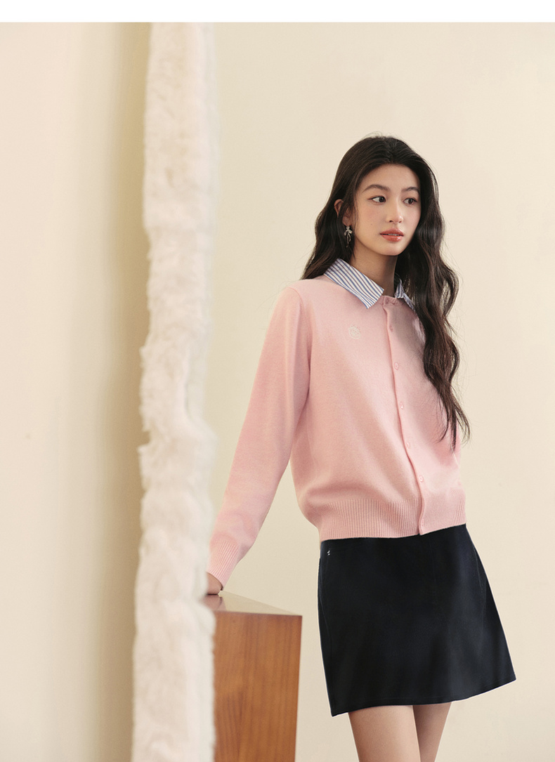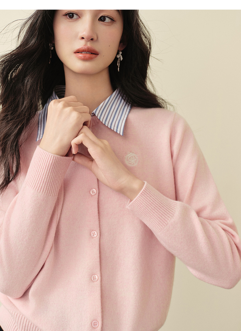 【严选】诗凡黎100%绵羊毛假两件针织开衫2025冬新款可脱卸衬衫领长袖上衣7GB133151