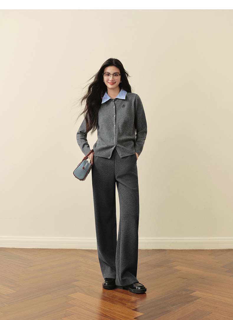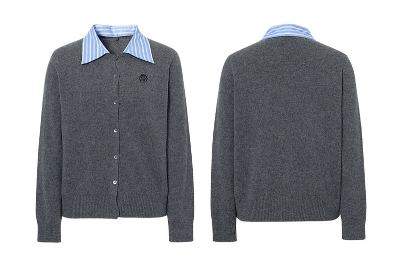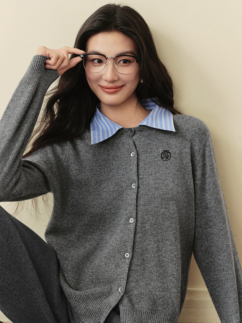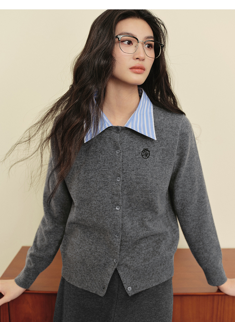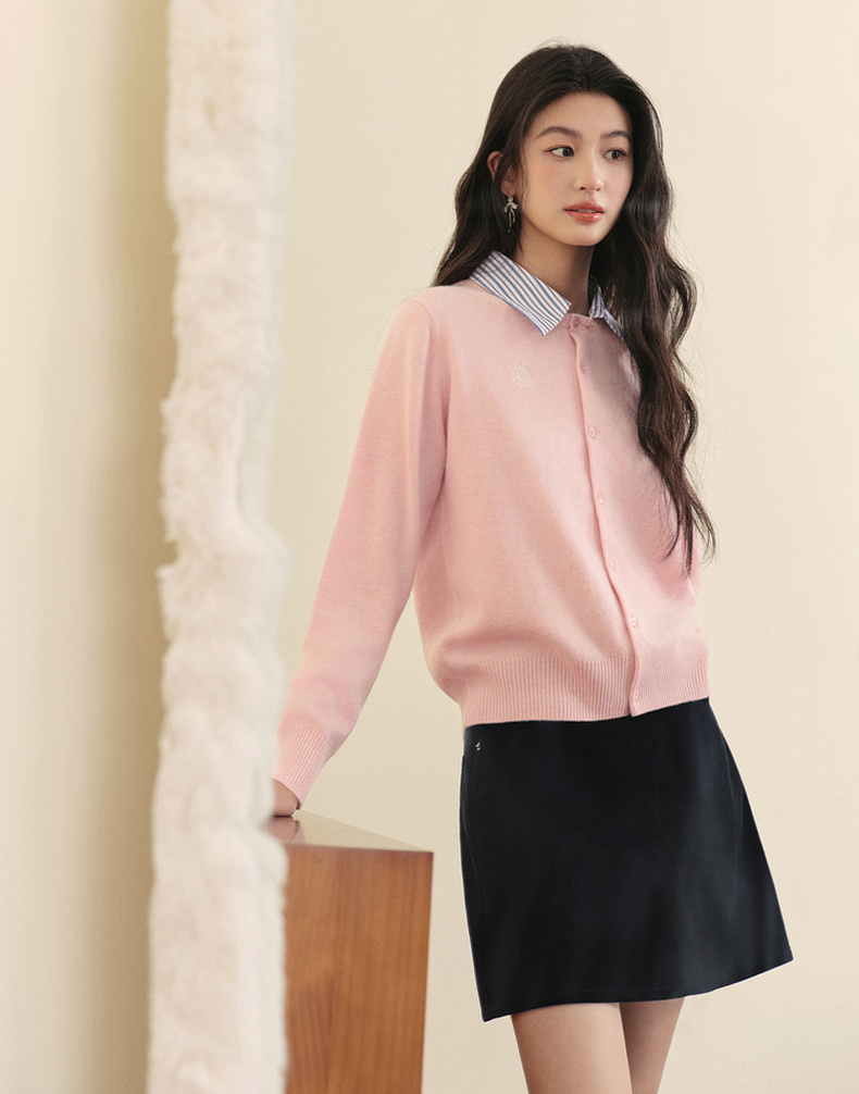 【严选】诗凡黎100%绵羊毛假两件针织开衫2025冬新款可脱卸衬衫领长袖上衣7GB133151