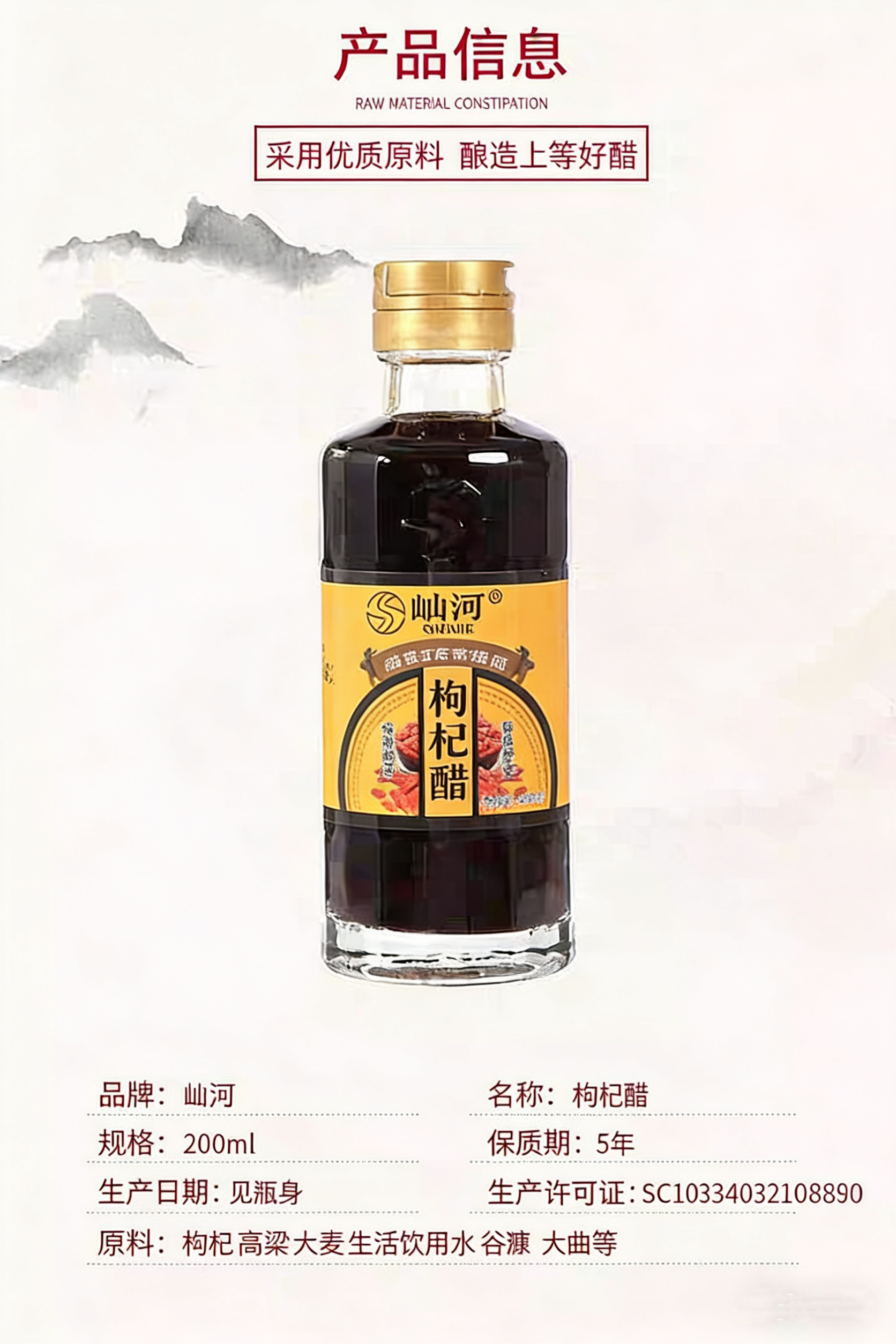【2瓶立减10元】非遗枸杞醋 纯粮食酿造 非遗工艺 手工制作 无添加 酸香浓郁