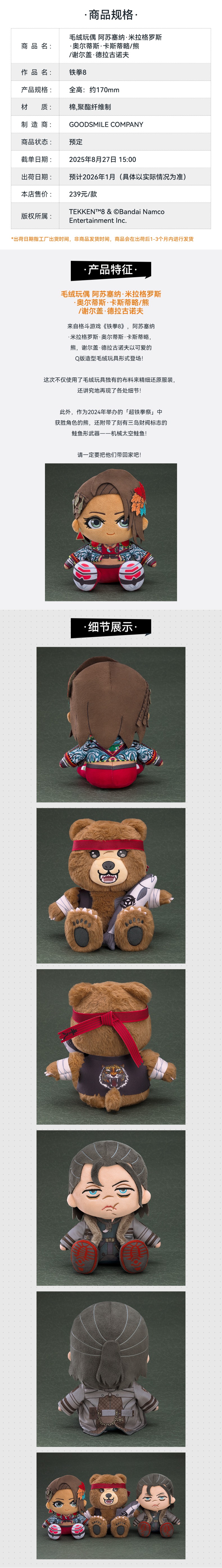 【GSC现货】毛绒玩偶 阿苏塞纳·米拉格罗斯·奥尔蒂斯·卡斯蒂略/熊/谢尔盖·德拉古诺夫 铁拳8