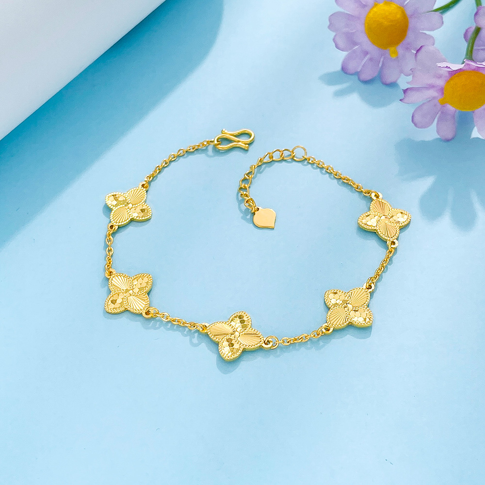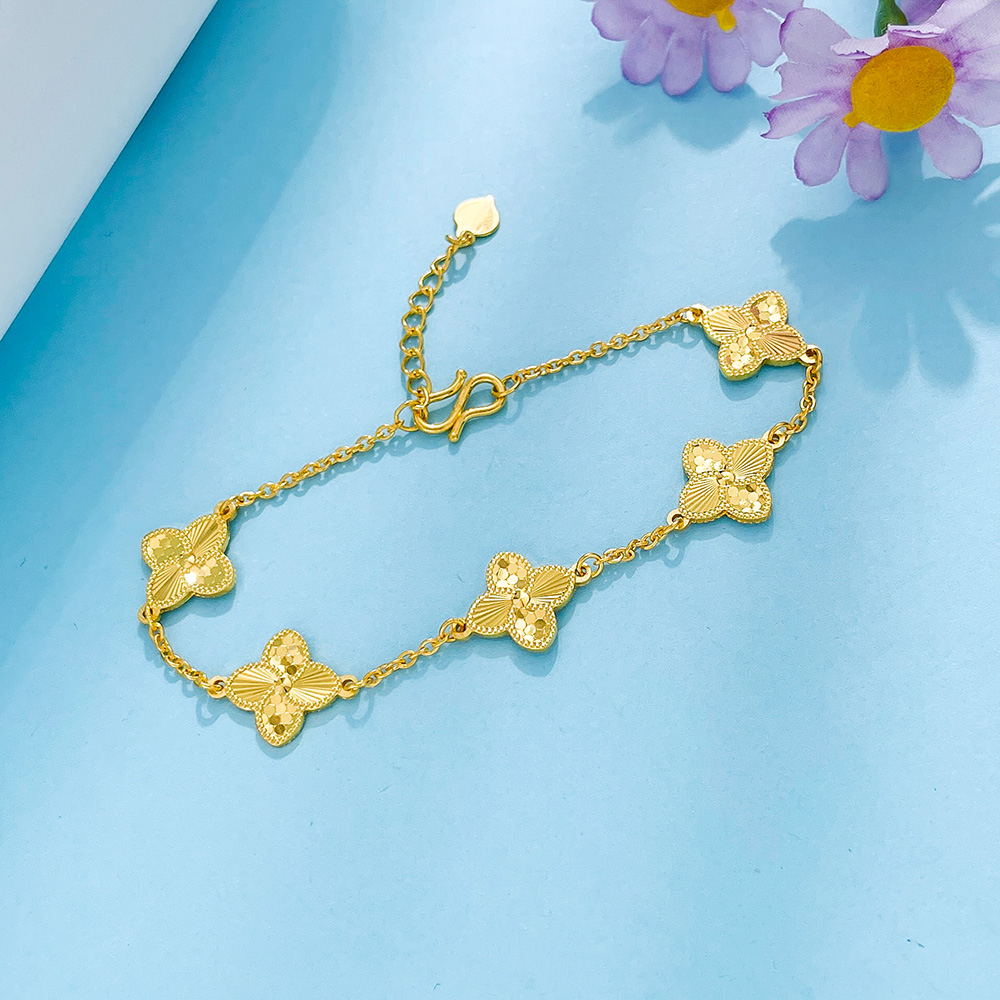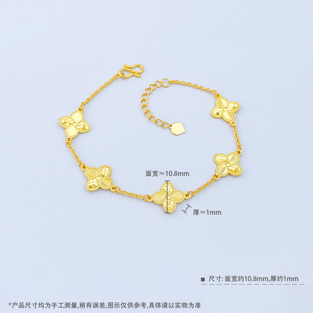 【限时克减150元】足金999.9 调节实心双面小幸运鱼鳞五花四叶草花形手链(AWSL00149)预售产品下单后不退款不退货不换货不补差价