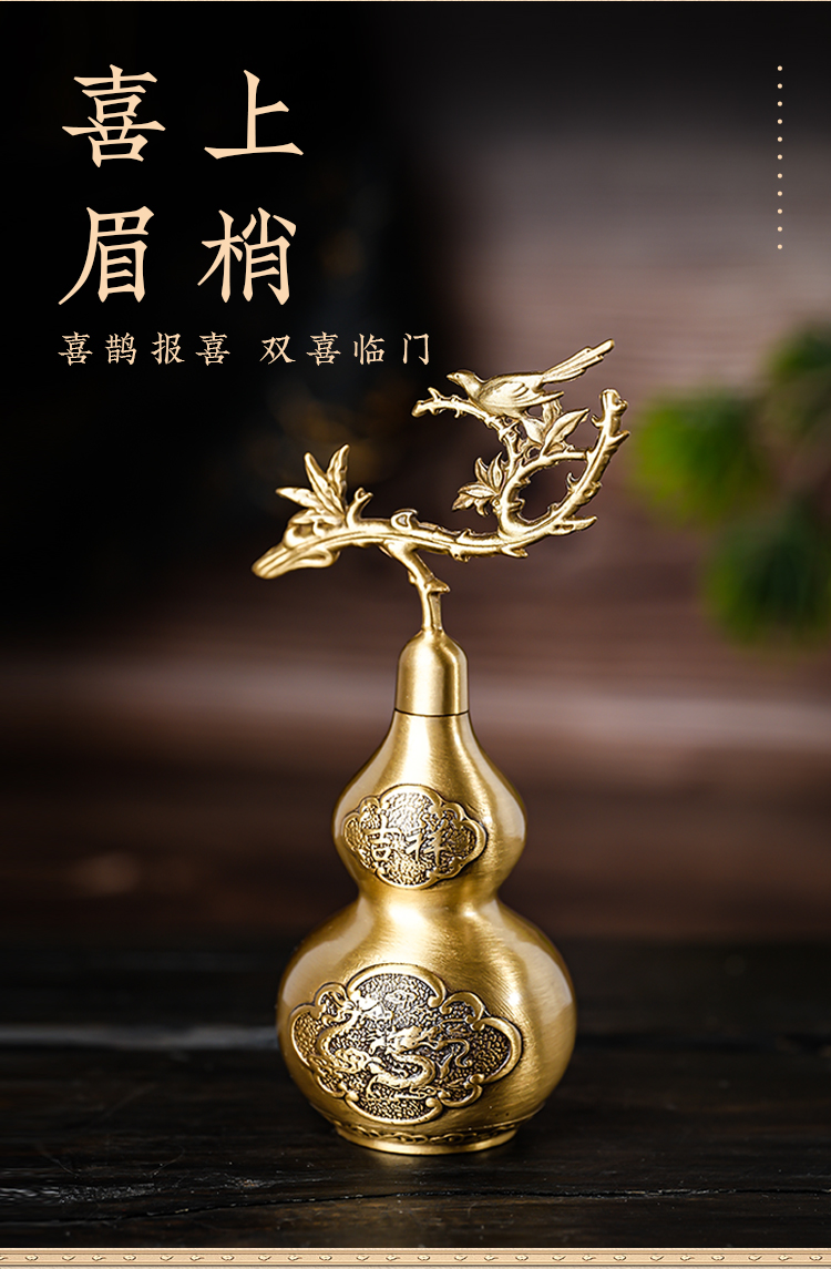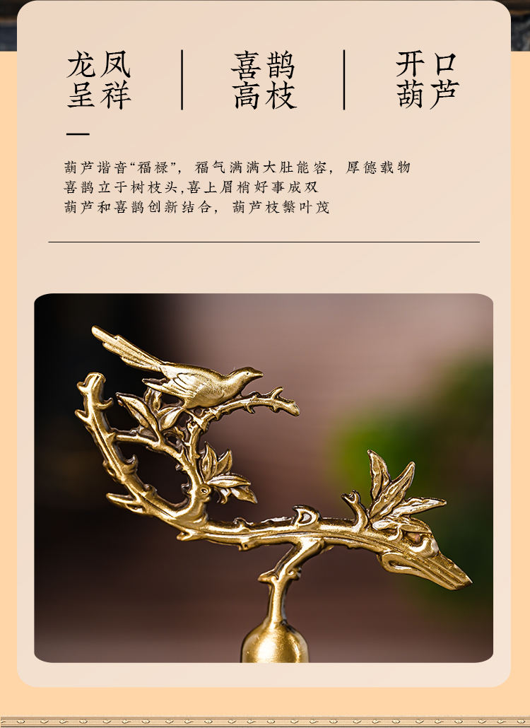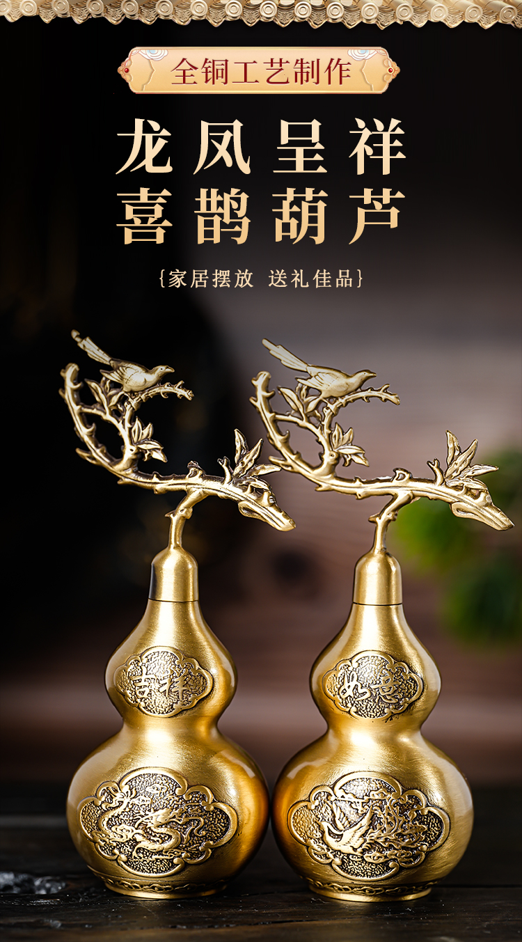 龙凤呈祥喜鹊葫芦摆件复古工艺品家居玄关客厅书房吉祥物装饰品