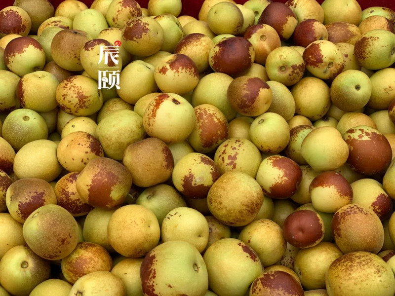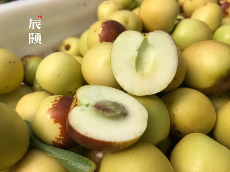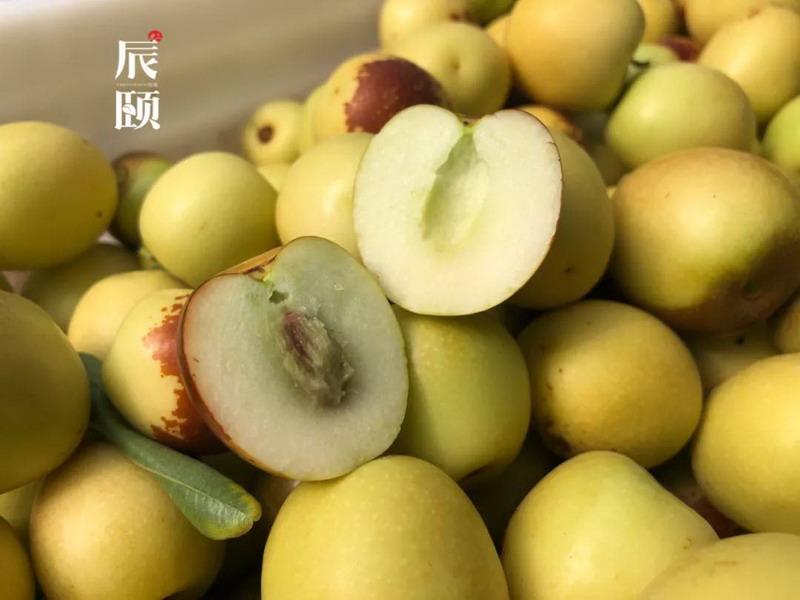 口感特点:果面光洁,成熟后呈现出点红,片红,皮薄肉脆,核小,甘甜清香,食之无渣,果肉松脆。普遍糖度在23度左右,但是也会有个别枣树不甜的,我们枣子没有泡过糖精,望大家理解原生态水果的特点。