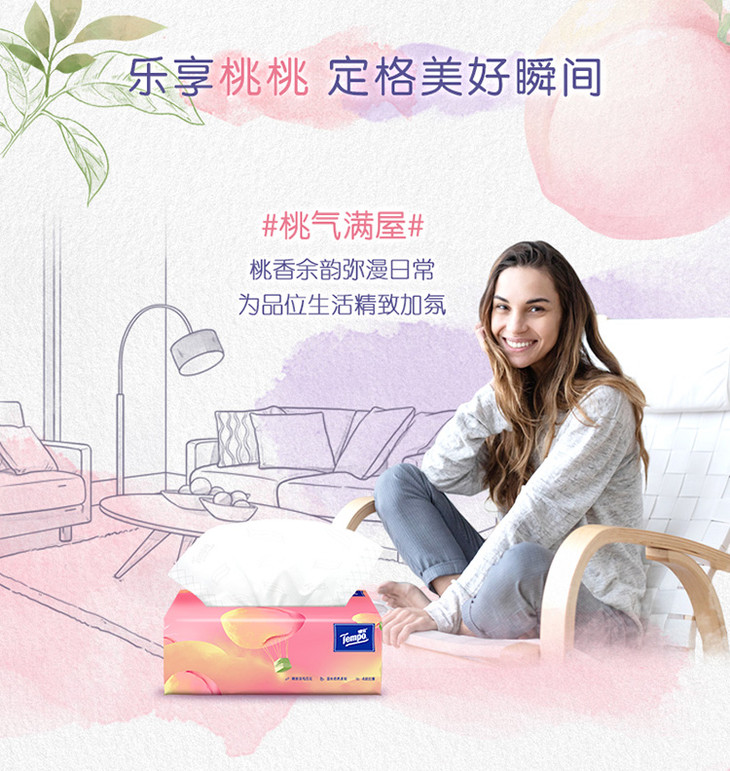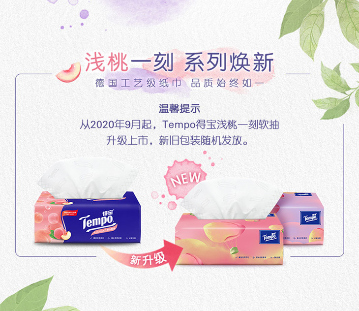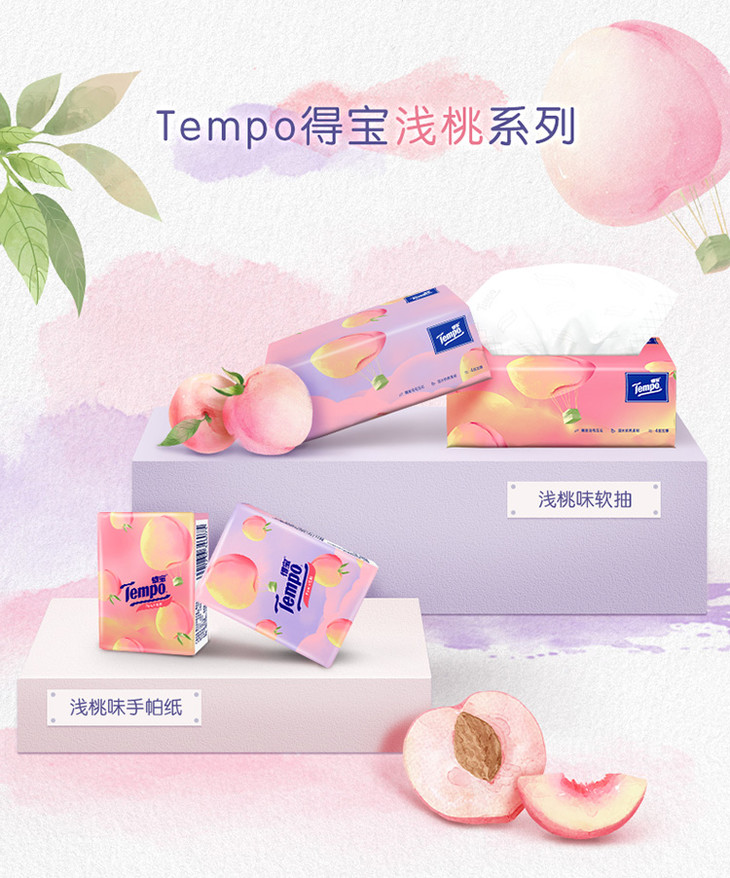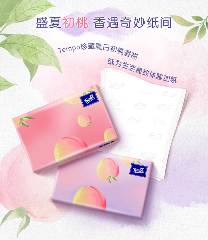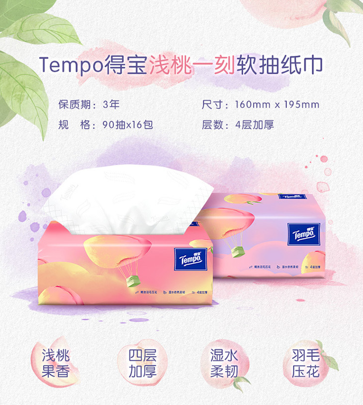 Tempo得宝软抽纸巾甜心桃味4层加厚90抽16包箱装家用抽纸餐巾纸实惠装