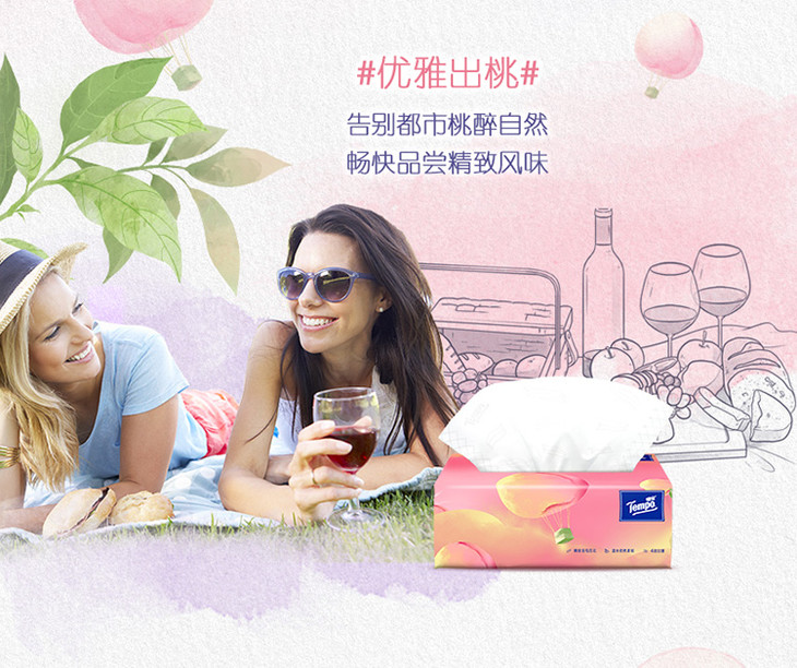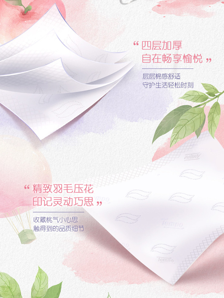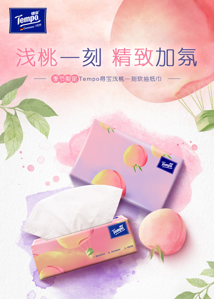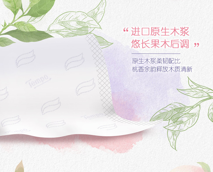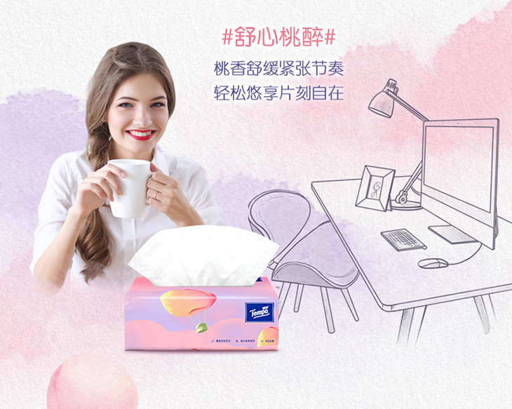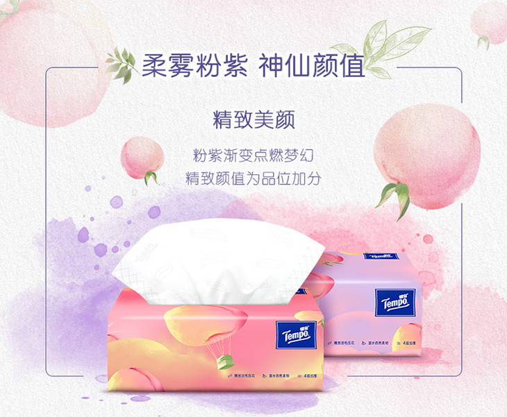 Tempo得宝软抽纸巾甜心桃味4层加厚90抽16包箱装家用抽纸餐巾纸实惠装