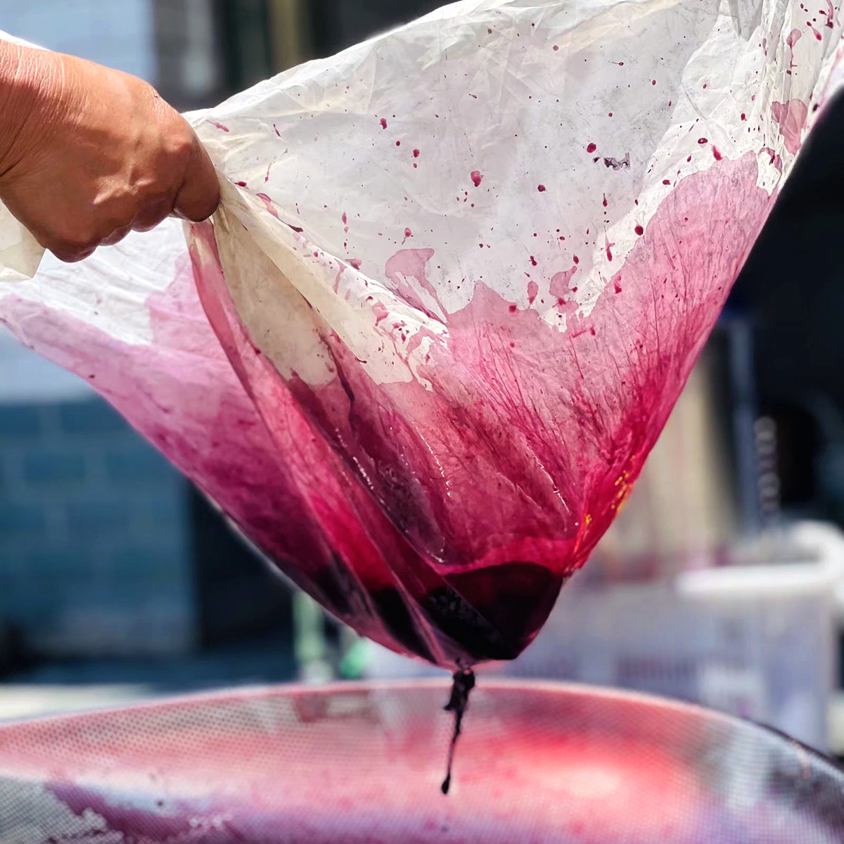 桑葚鲜果放入纱布,反复捶打,榨出桑葚原汁。
