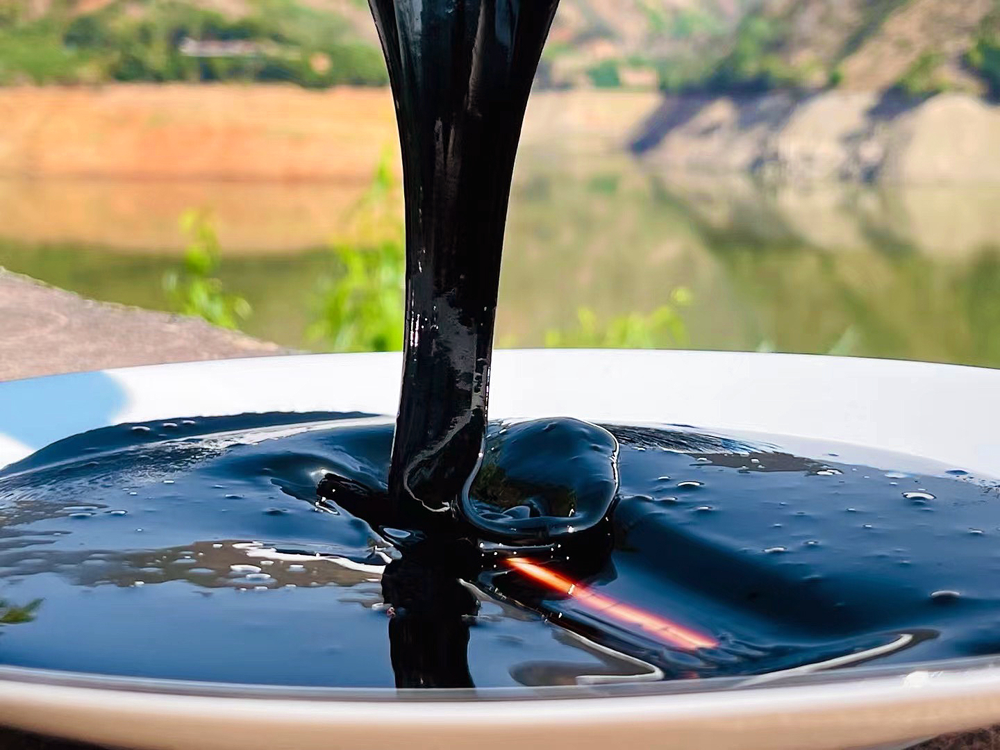 最终熬出的桑葚膏, 色泽金亮,墨黑如绸,牵丝不断!这样的膏,不愧是滋养良膏!