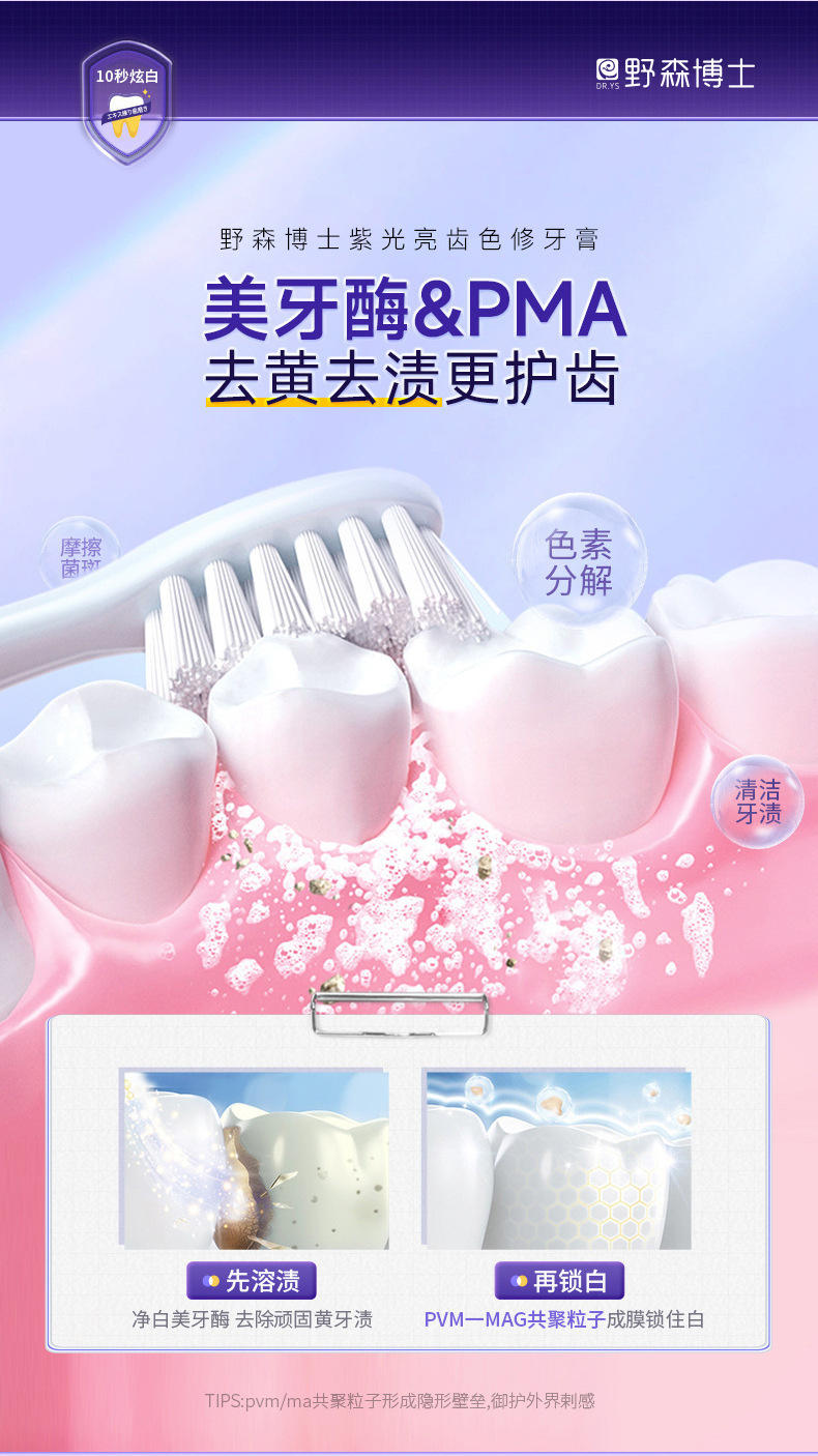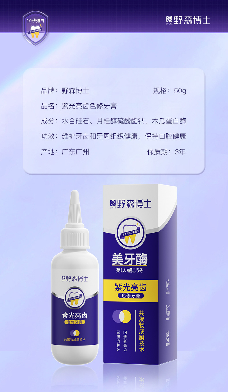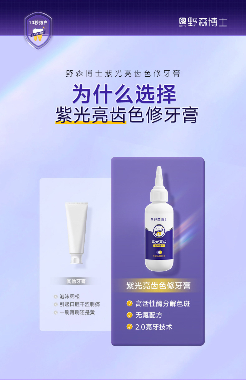 爆款【紫光亮齿色修牙膏】去黄去渍清洁口腔 清新口气亮白牙齿