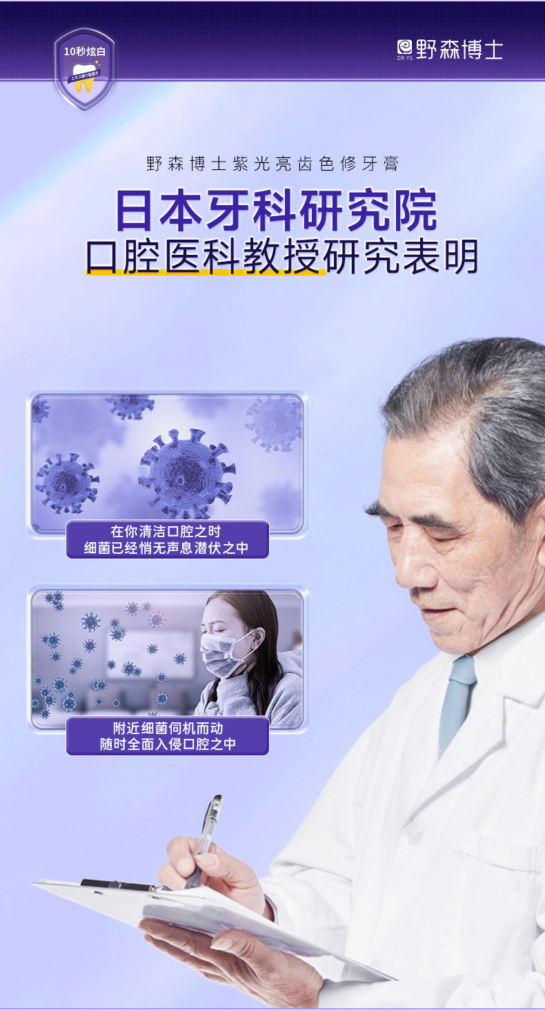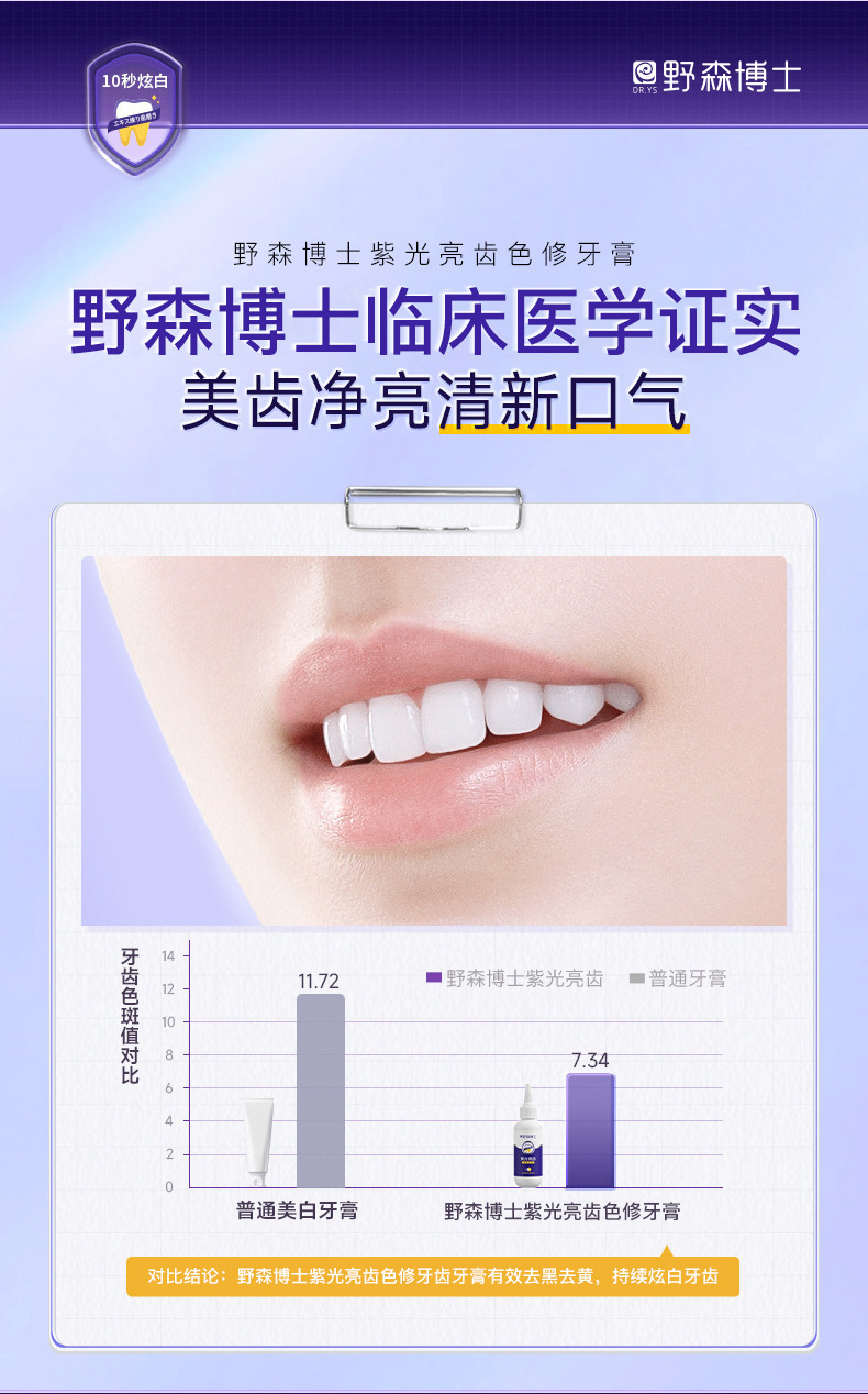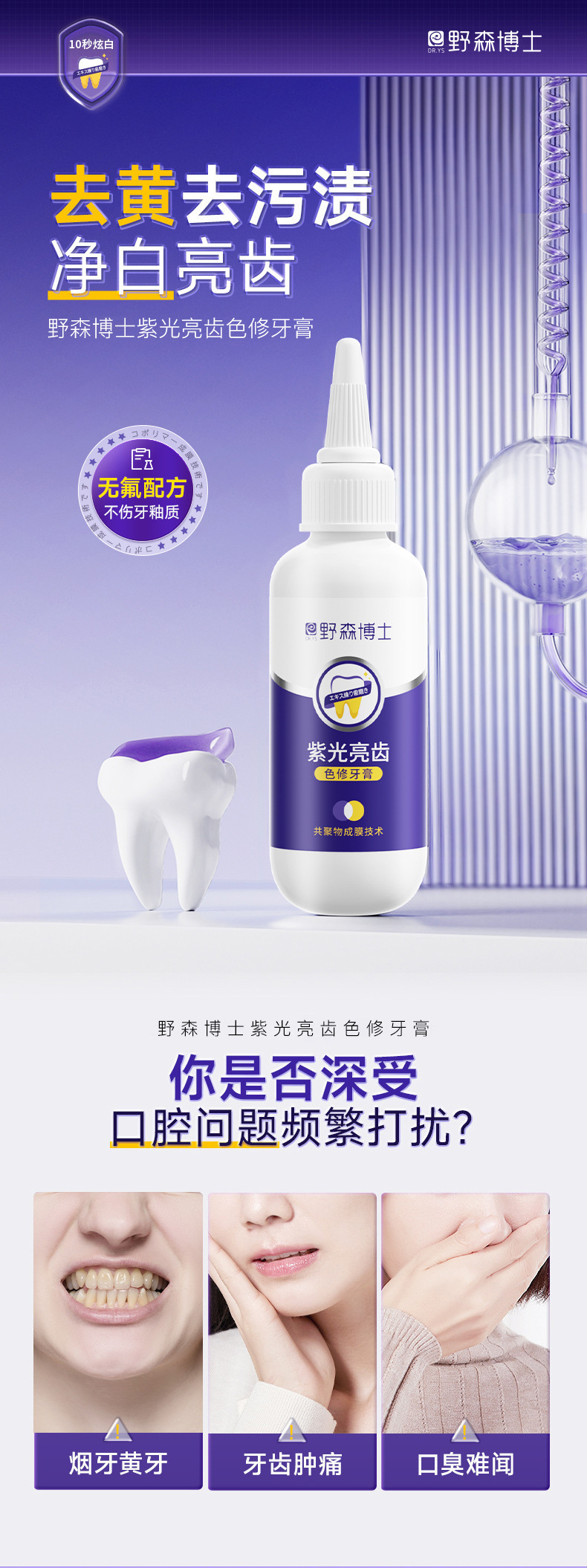 爆款【紫光亮齿色修牙膏】去黄去渍清洁口腔 清新口气亮白牙齿