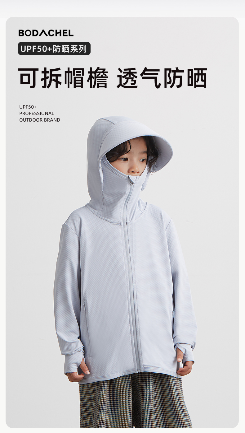 【亲妈精选】八度丘 男童女童防晒衣帽檐可拆冰丝薄款透气防紫外线防晒服RTFSY001