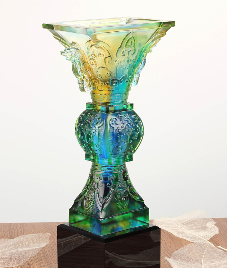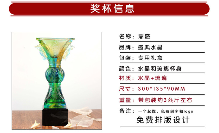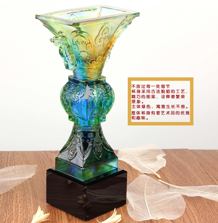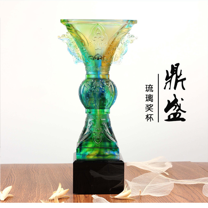 琉璃奖杯定制 琉璃鼎摆件 刻字纪念品 商务礼品 定做开业纪念品