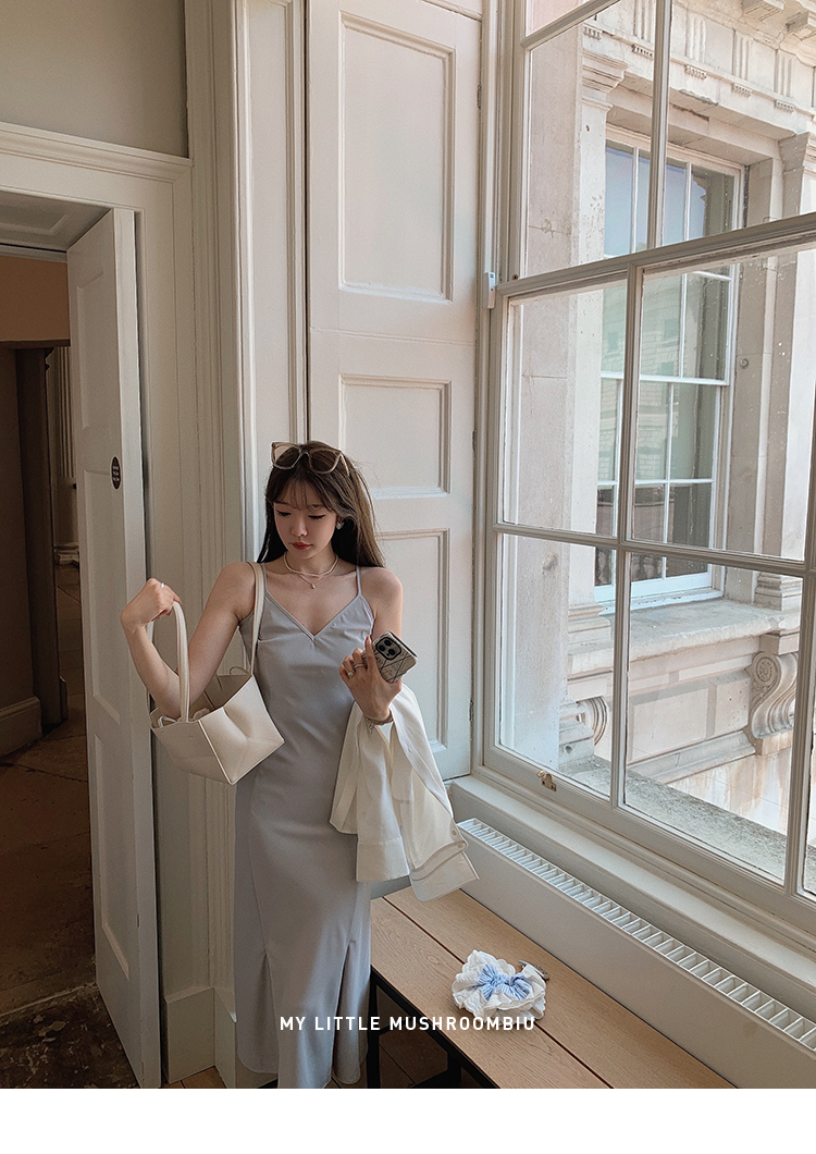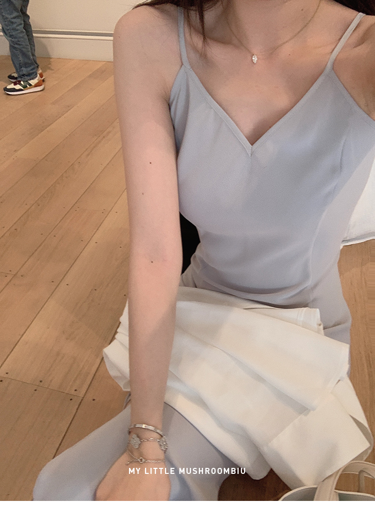 材质:灰蓝吊带裙.珍珠粉内搭裙:100%聚酯纤维