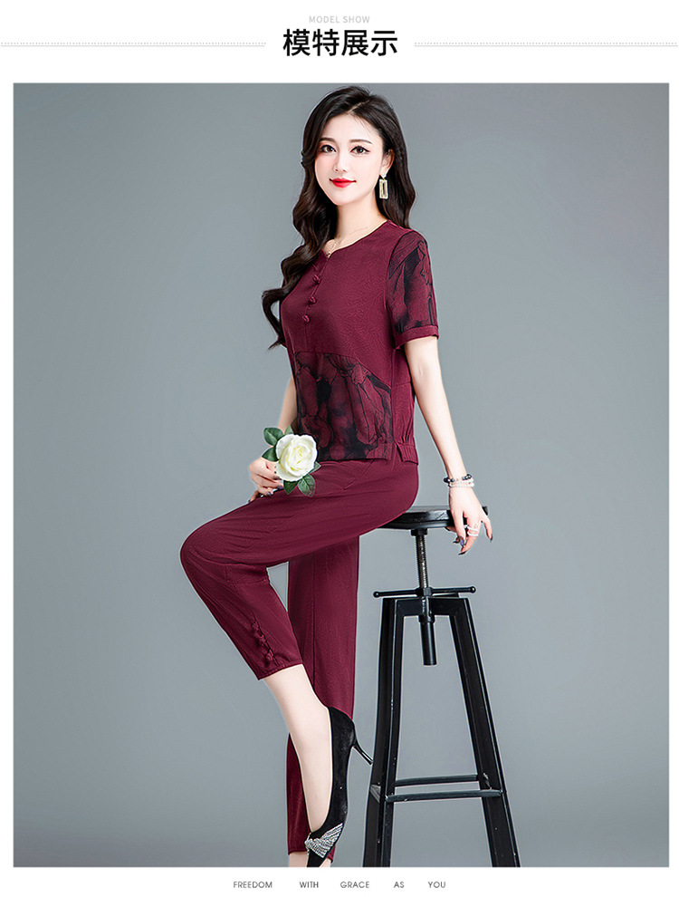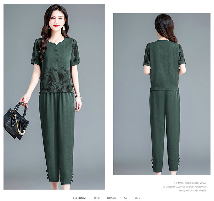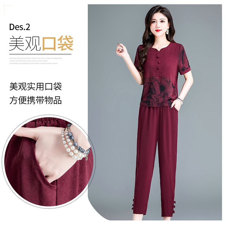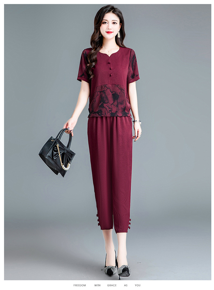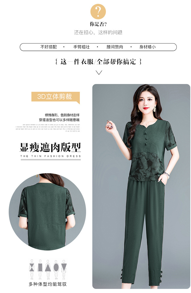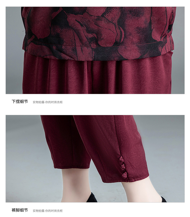 宽松休闲,夏款印花短款时尚小衫简约休闲九分哈伦裤两件套QYM-XYKL-J28-L