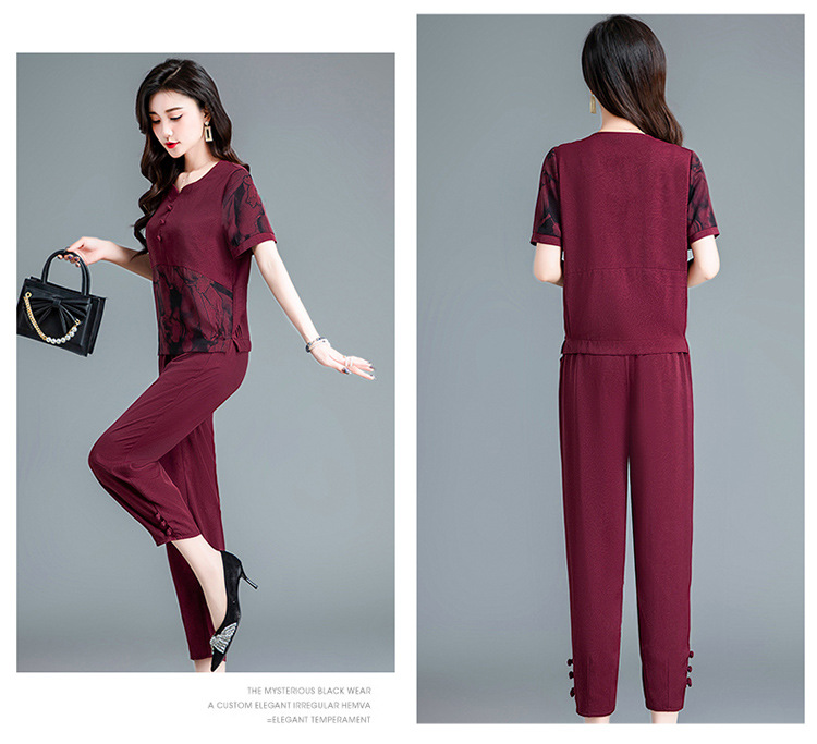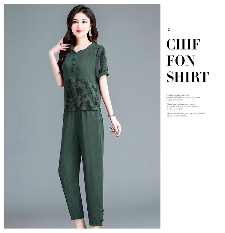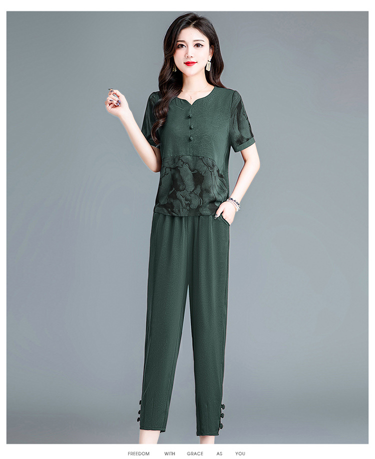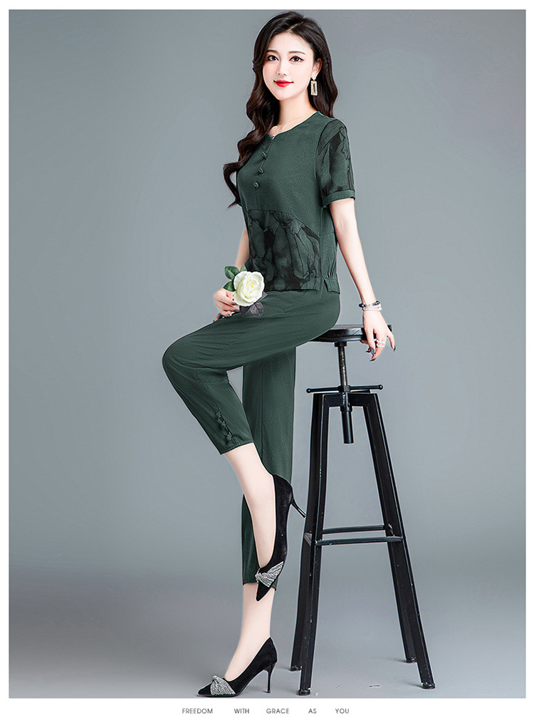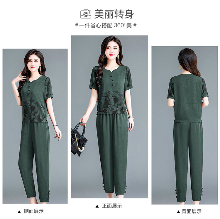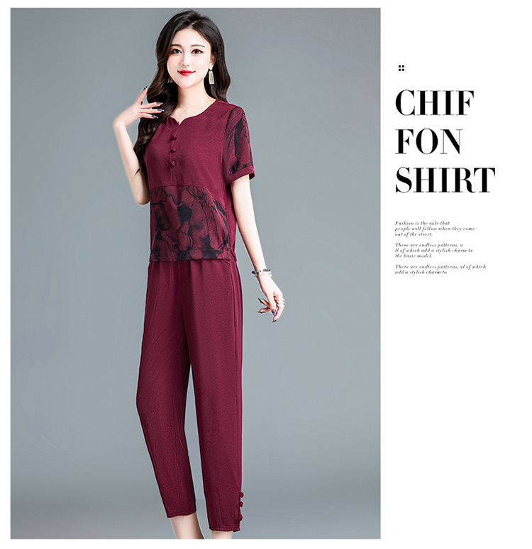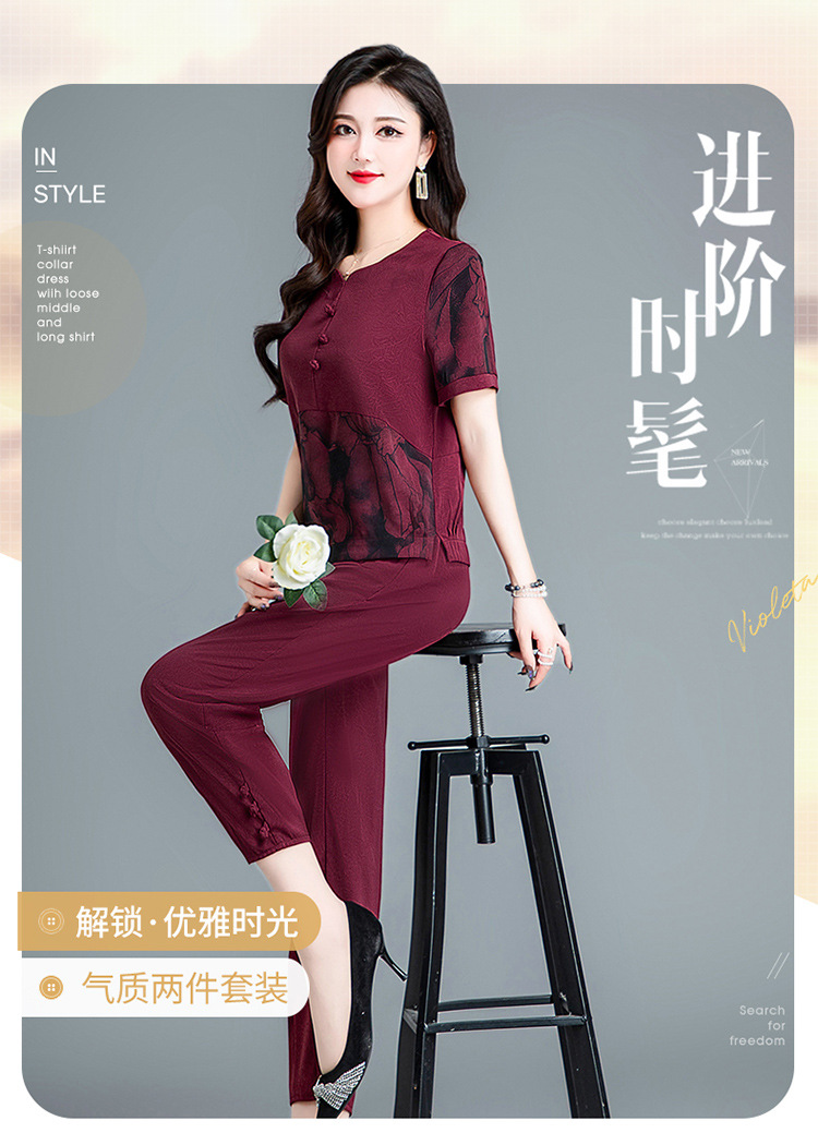 宽松休闲,夏款印花短款时尚小衫简约休闲九分哈伦裤两件套QYM-XYKL-J28-L