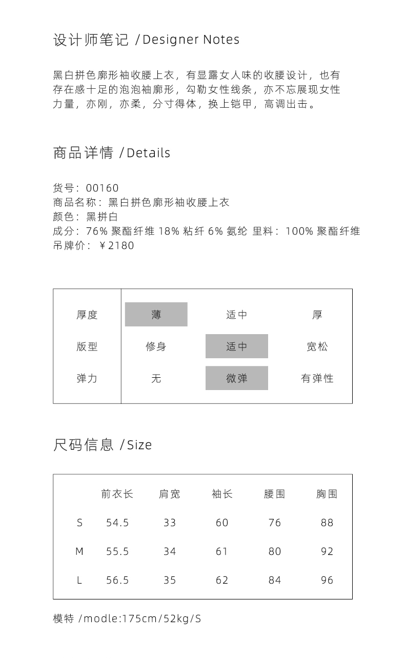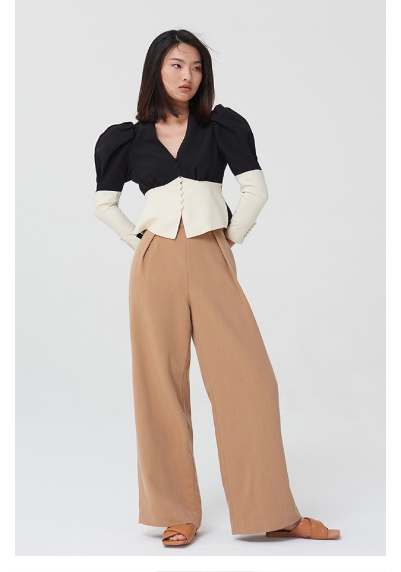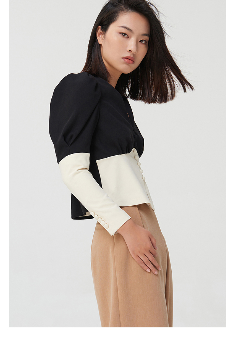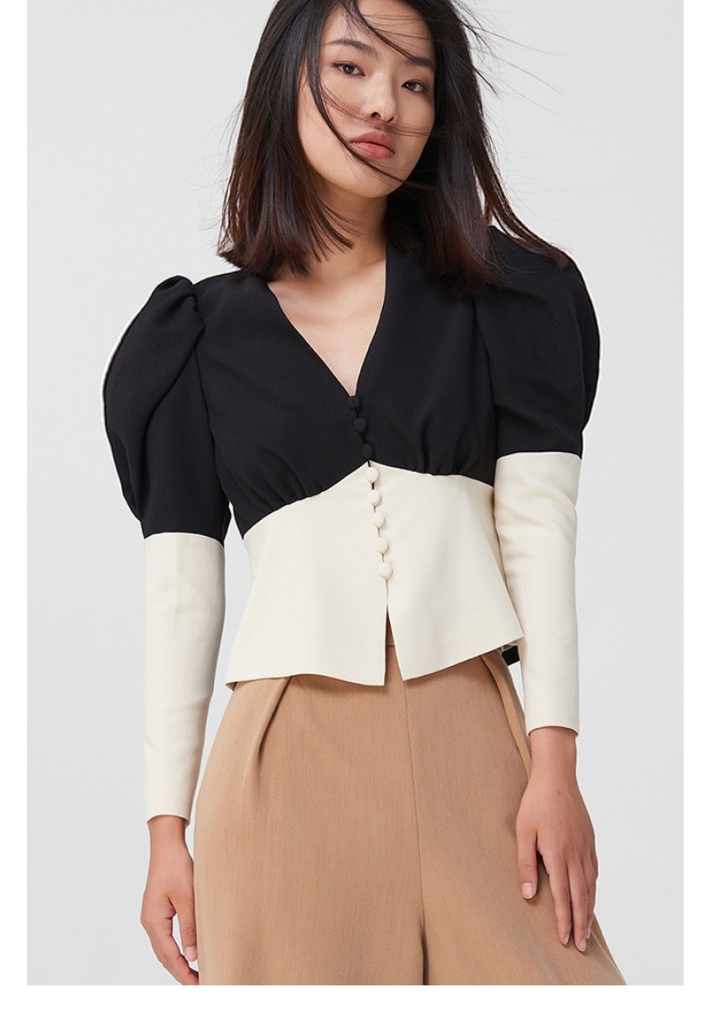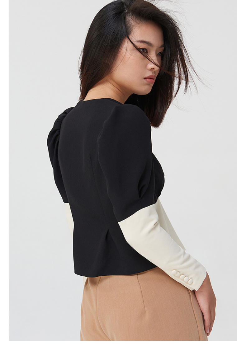 AtelierMissLu-【职场战衣】 黑白拼色廓形袖收腰上衣