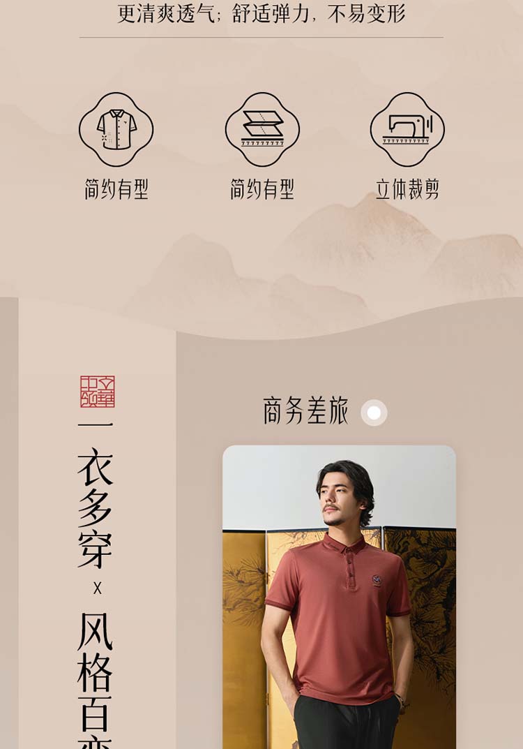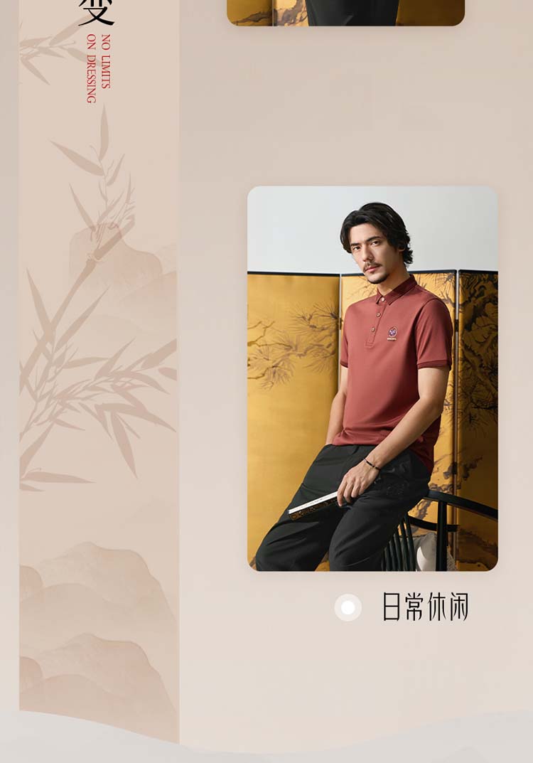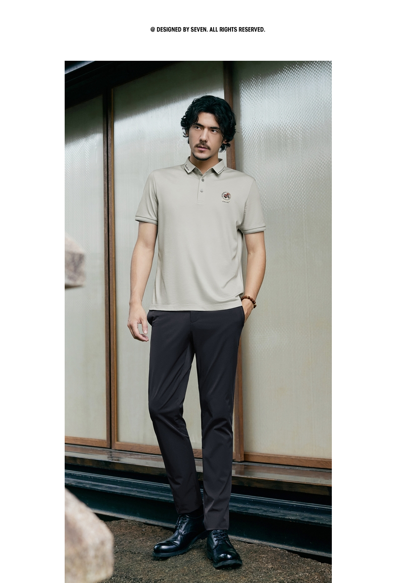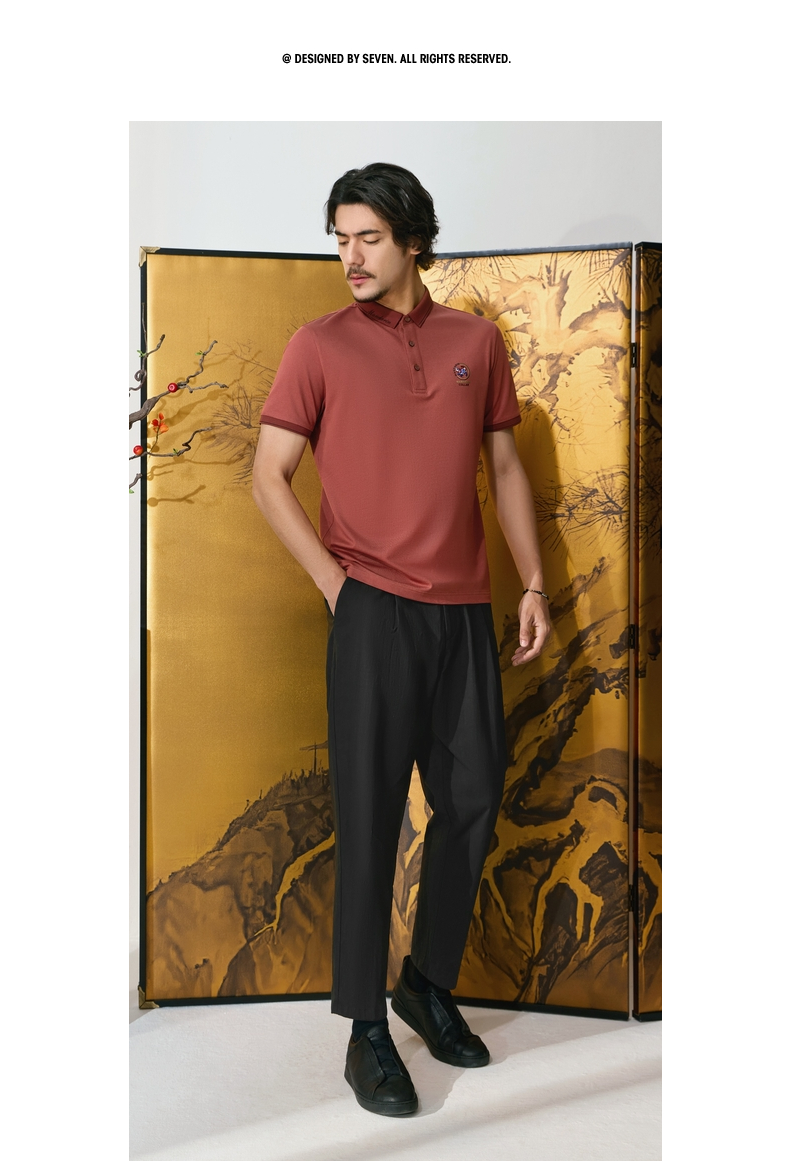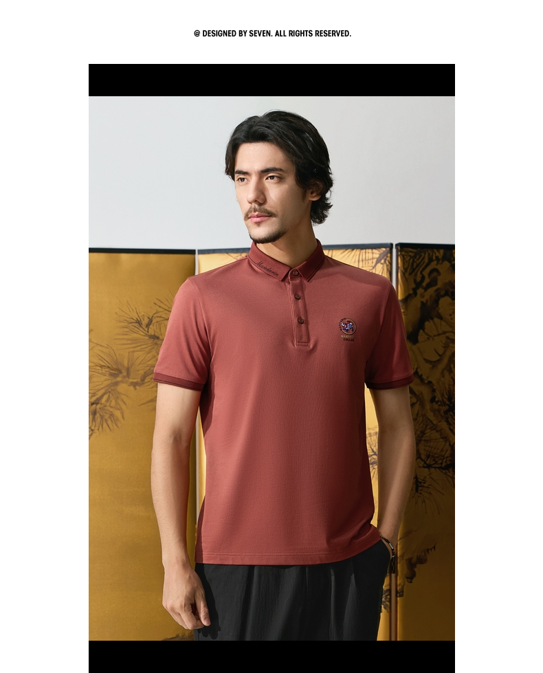 【国风图案Polo衫】柒牌短袖Polo衫男士夏季新品字母提花翻领T恤128T72030
