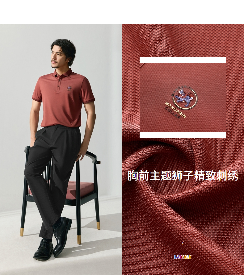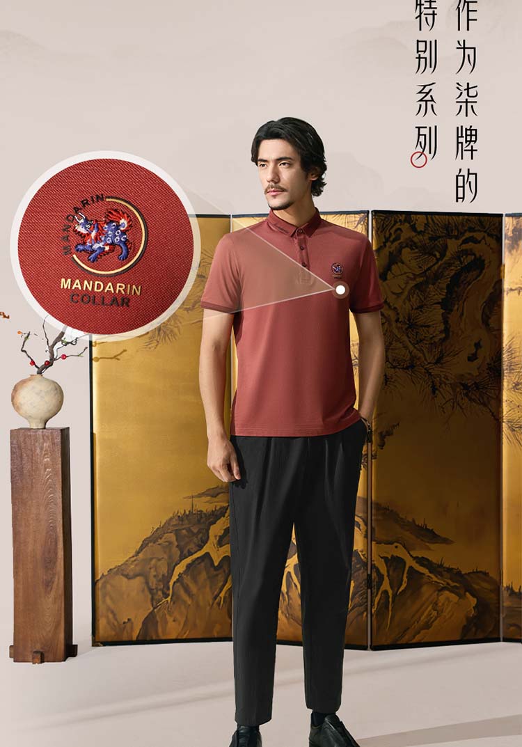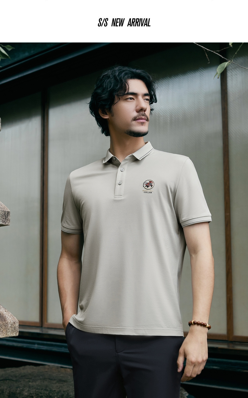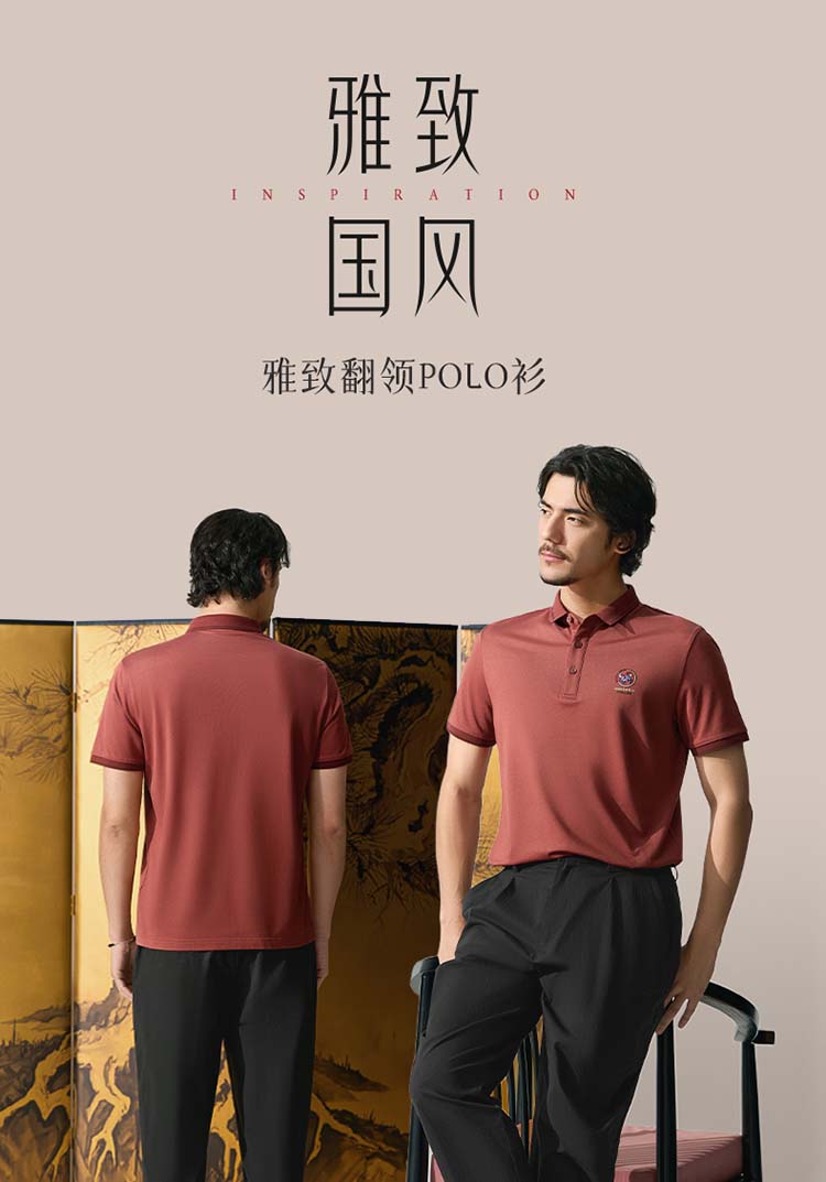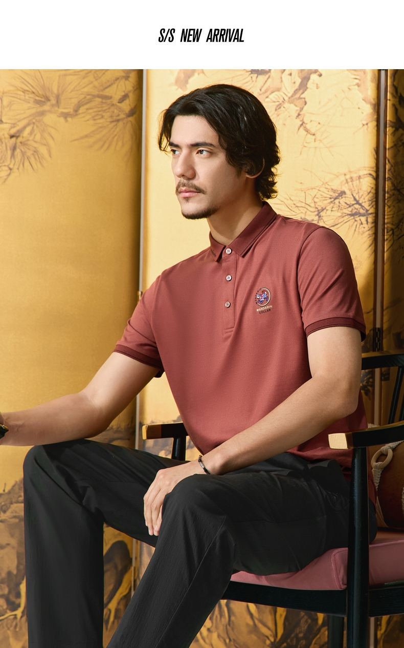 【国风图案Polo衫】柒牌短袖Polo衫男士夏季新品字母提花翻领T恤128T72030