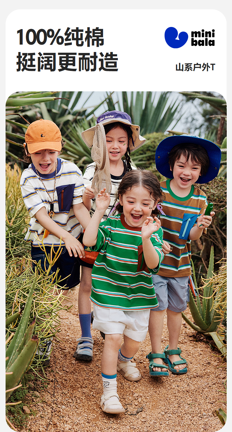 【速干纯棉】迷你巴拉男女童T恤儿童山系户外不易变形短袖T