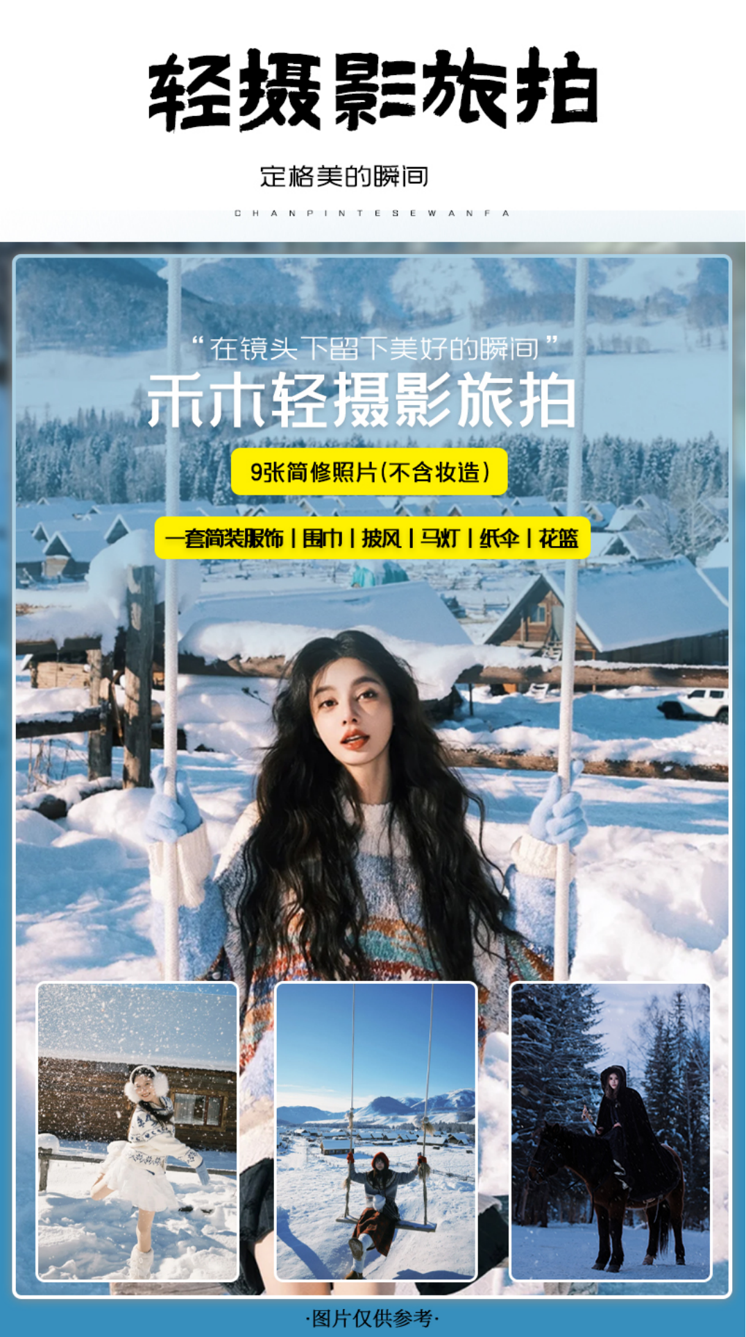 3.禾木权游版同款轻摄影旅拍,精选9张照片(不含妆造,赠送项目因个人原因不去不退)