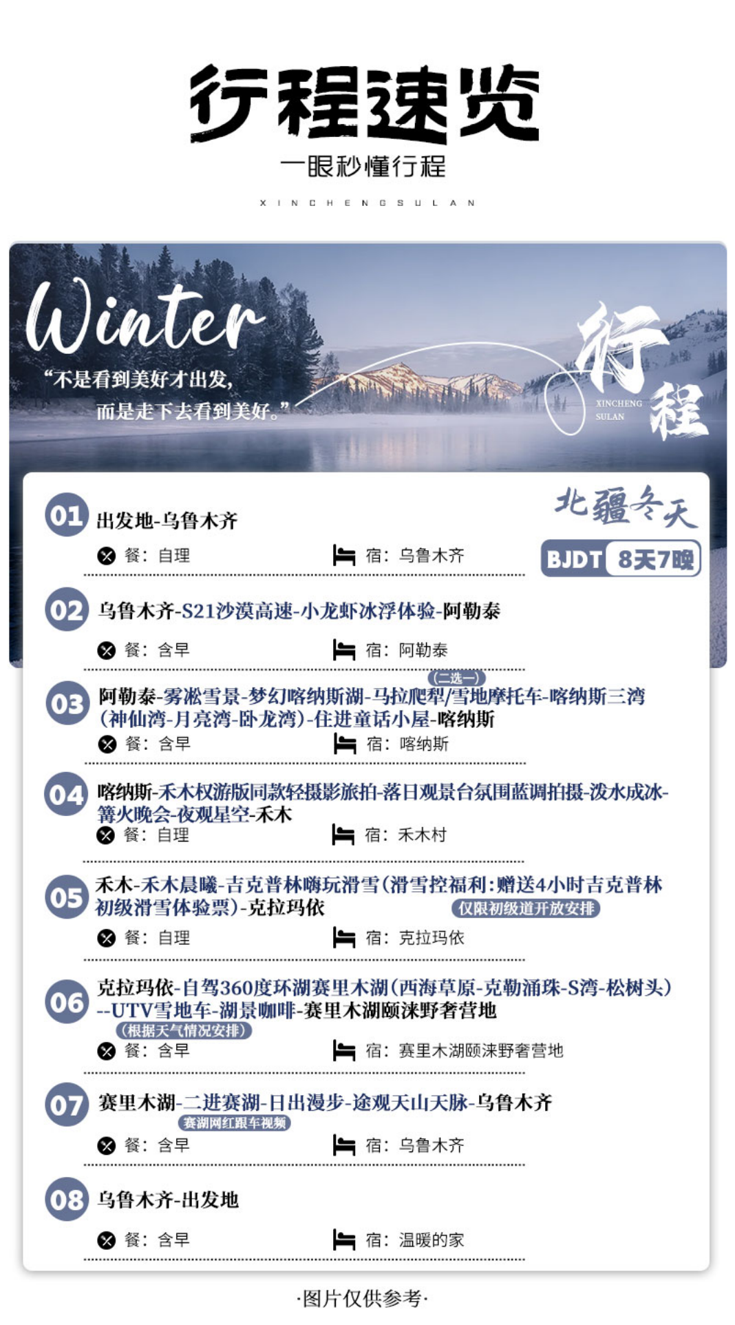 6人小团丨新疆冰浮体验、喀纳斯&禾木、赛里木湖环湖、吉克普林滑雪、雪域轻旅拍8天(天天出发,2人成团)