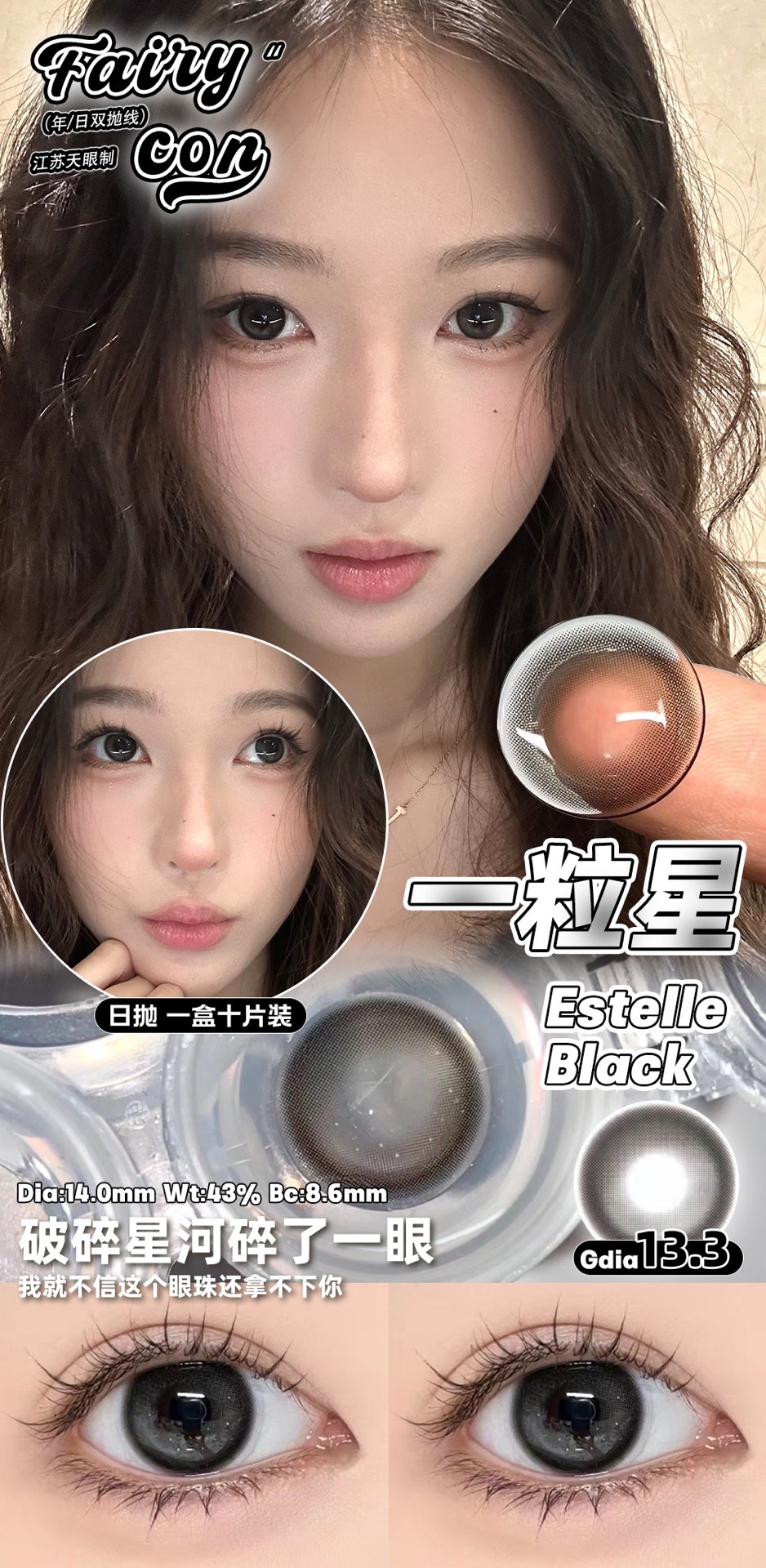 fairycon日抛 一粒星 黑 14.0mm 含硅水凝胶 日抛无售后!!!
