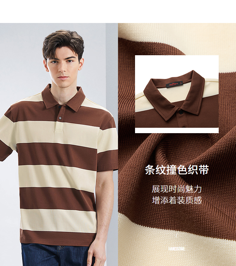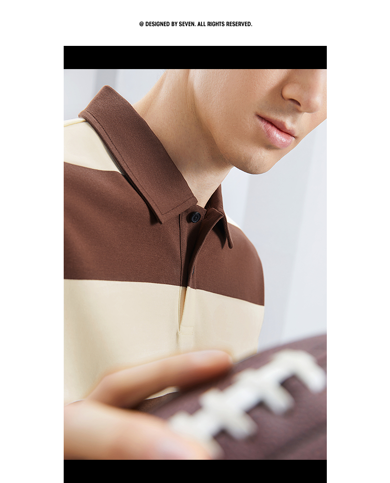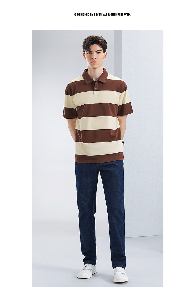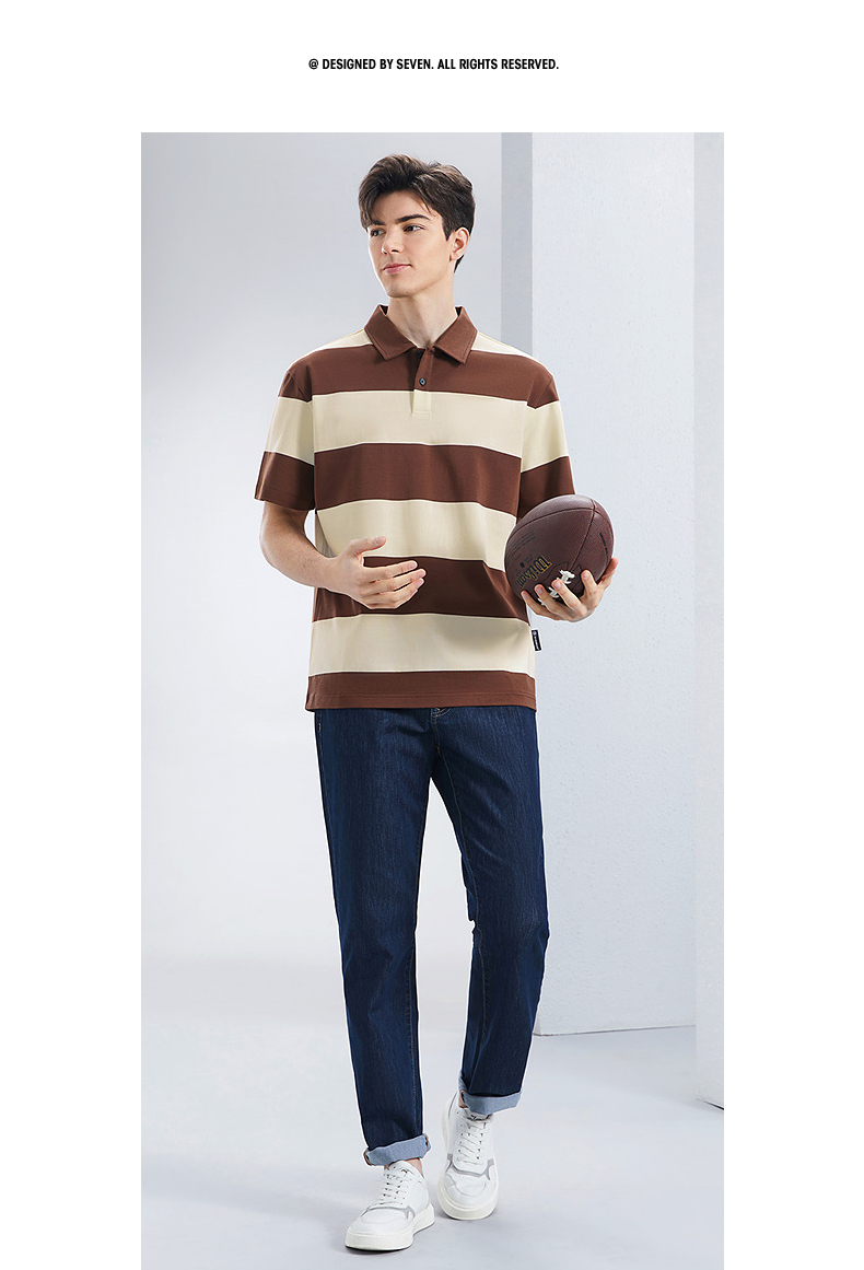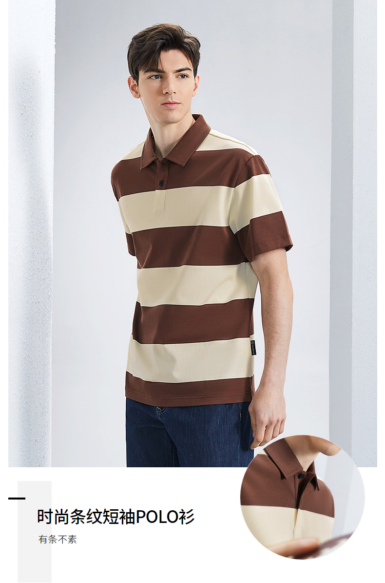 【特价】柒牌男士polo衫短袖2024夏季新款时尚休闲撞色条纹中青年翻领T恤 126T73440