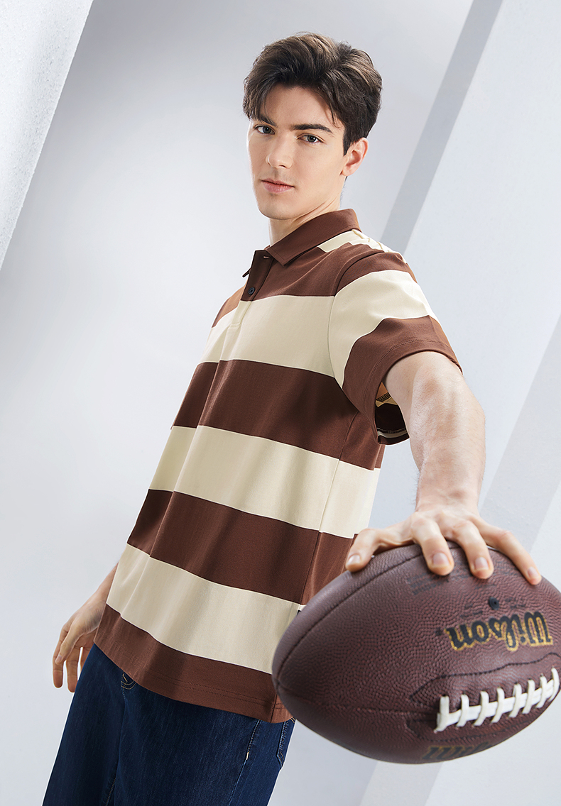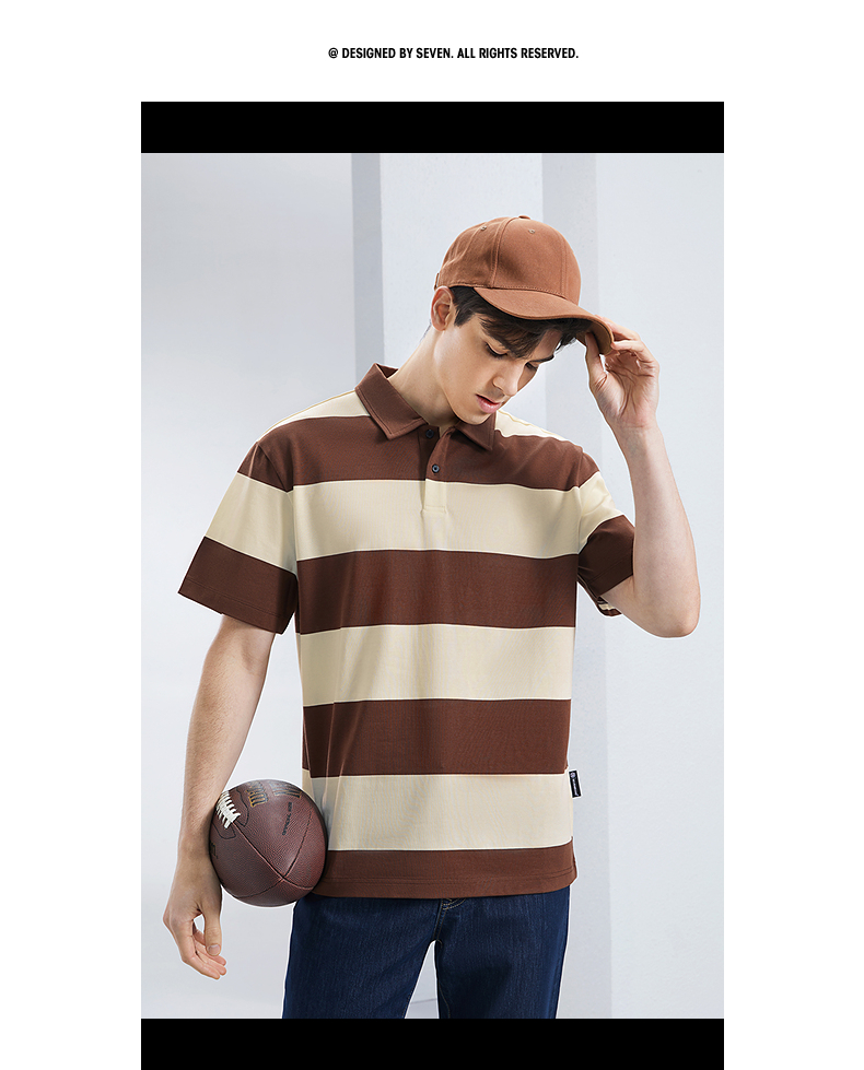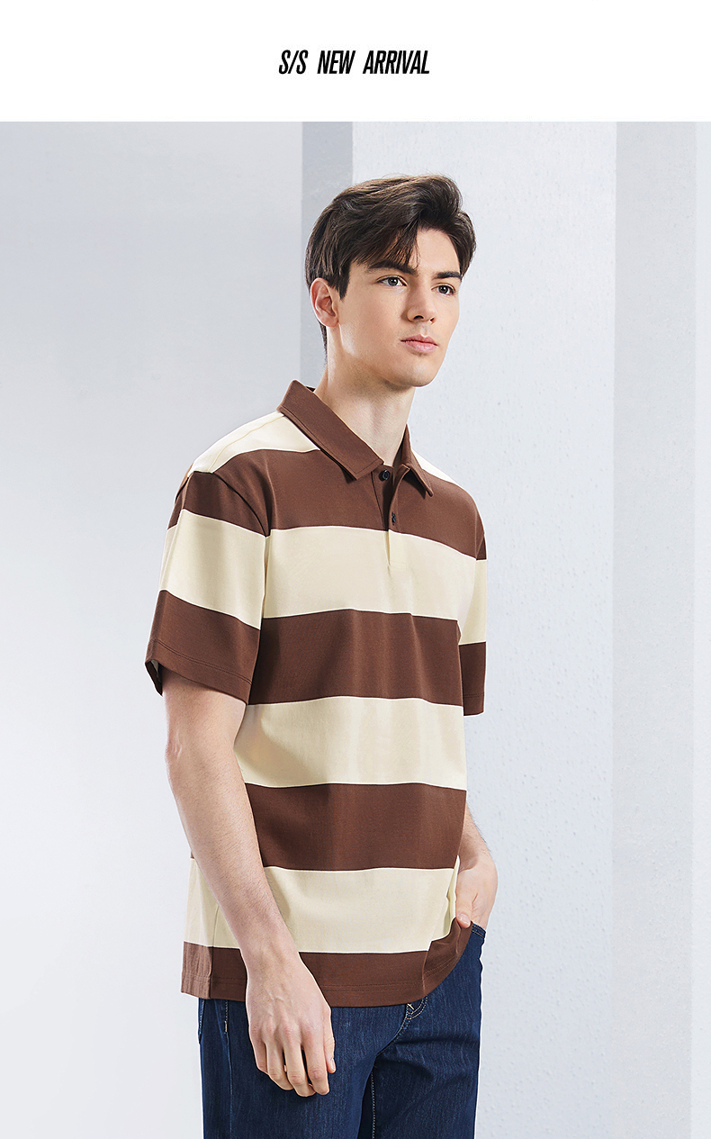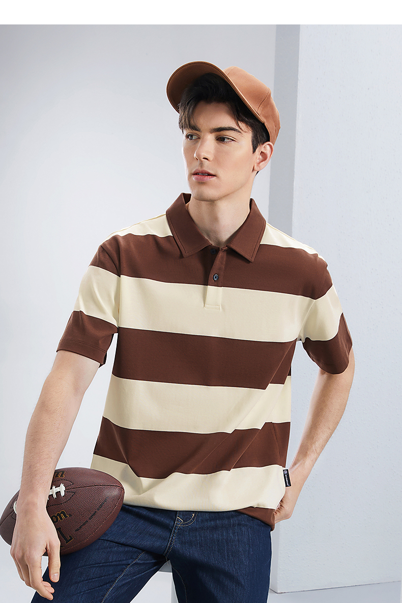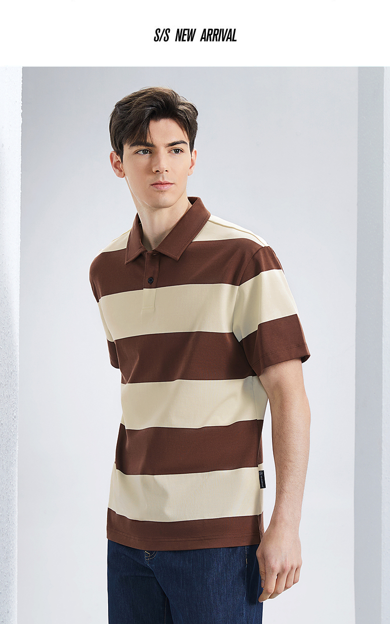 【特价】柒牌男士polo衫短袖2024夏季新款时尚休闲撞色条纹中青年翻领T恤 126T73440