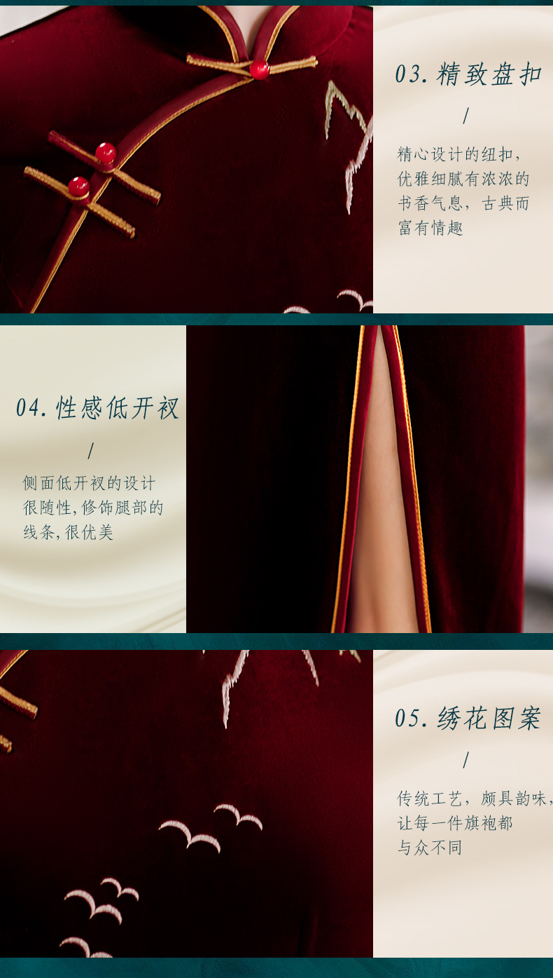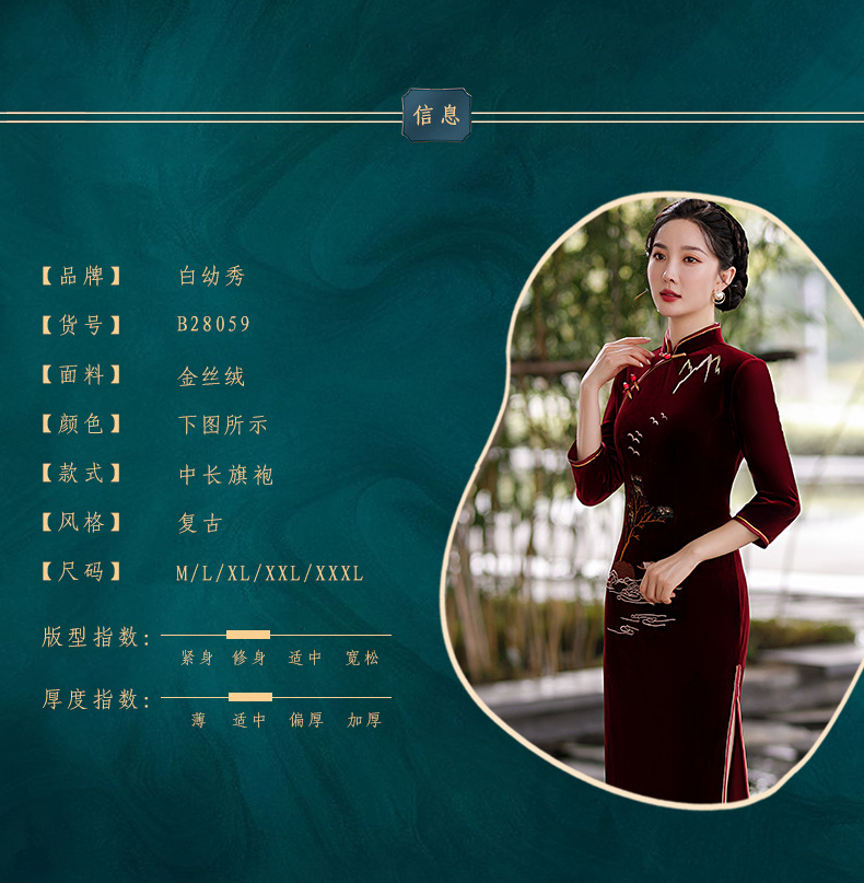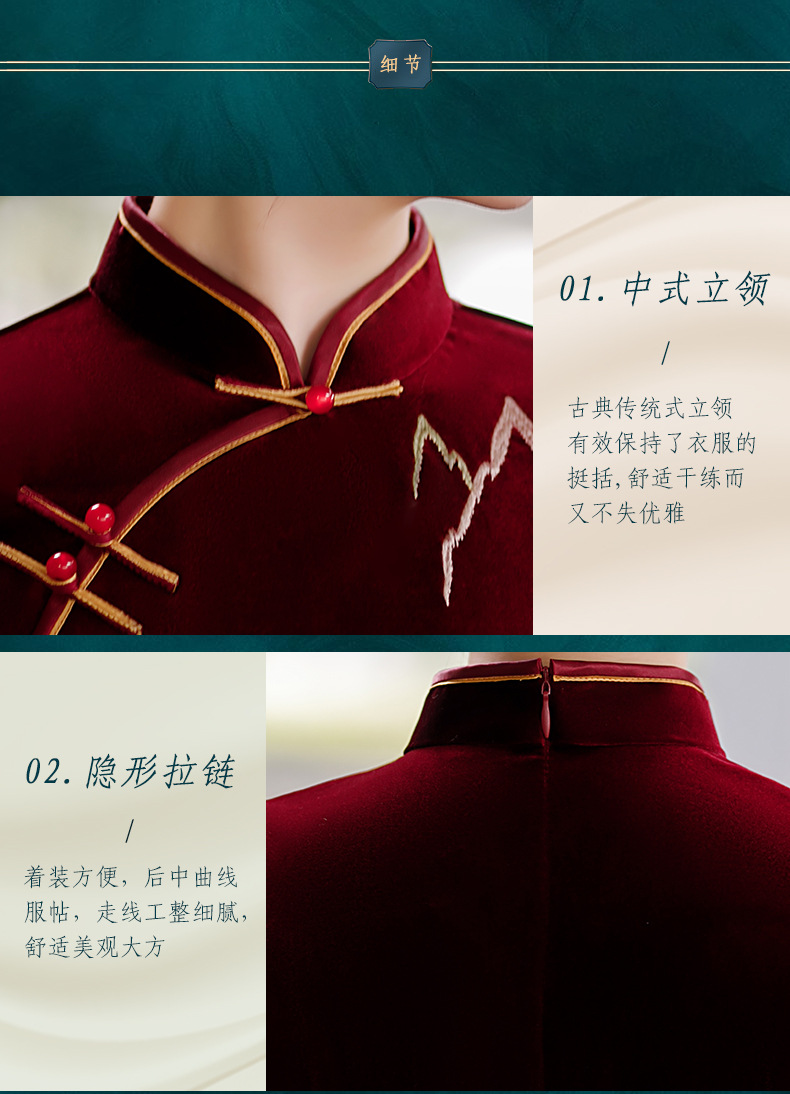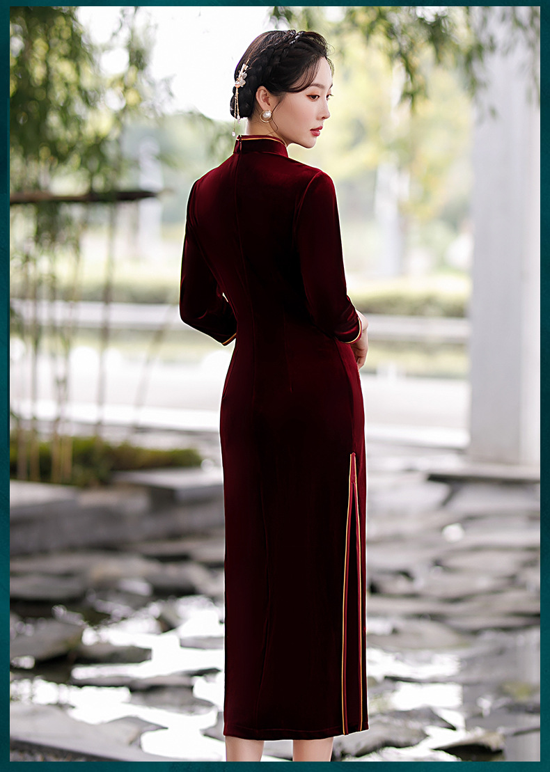 秋冬新款,气质仿水貂复合超柔中长款女士清新年轻款改良旗袍MLS-6826