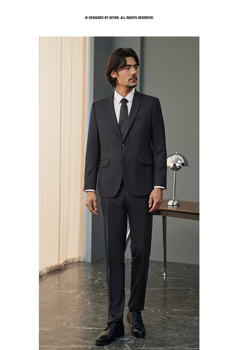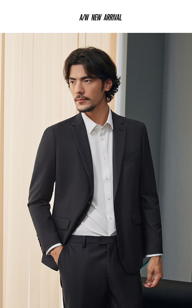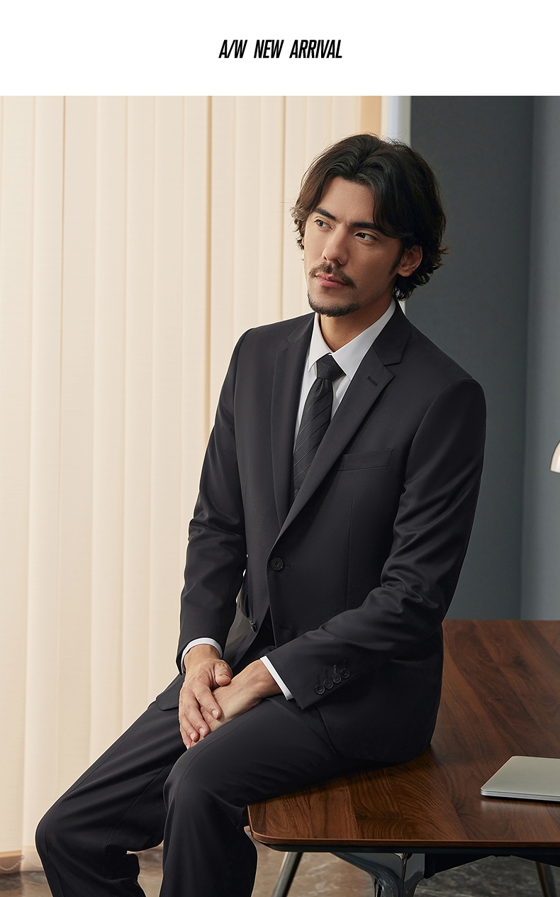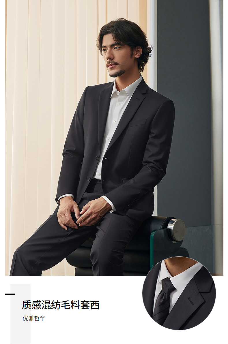 【婚礼季/毛料套西】柒牌西装套装男2025秋冬新款商务绅士黑色平驳领西服 127C71160