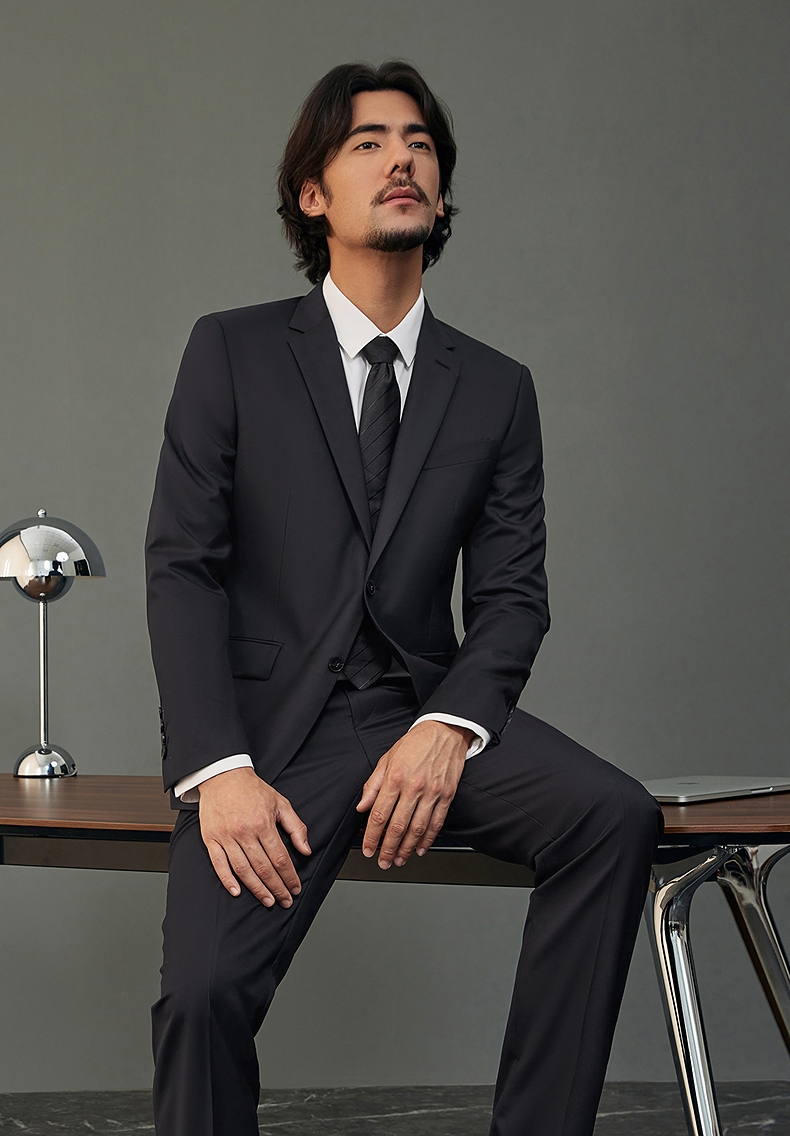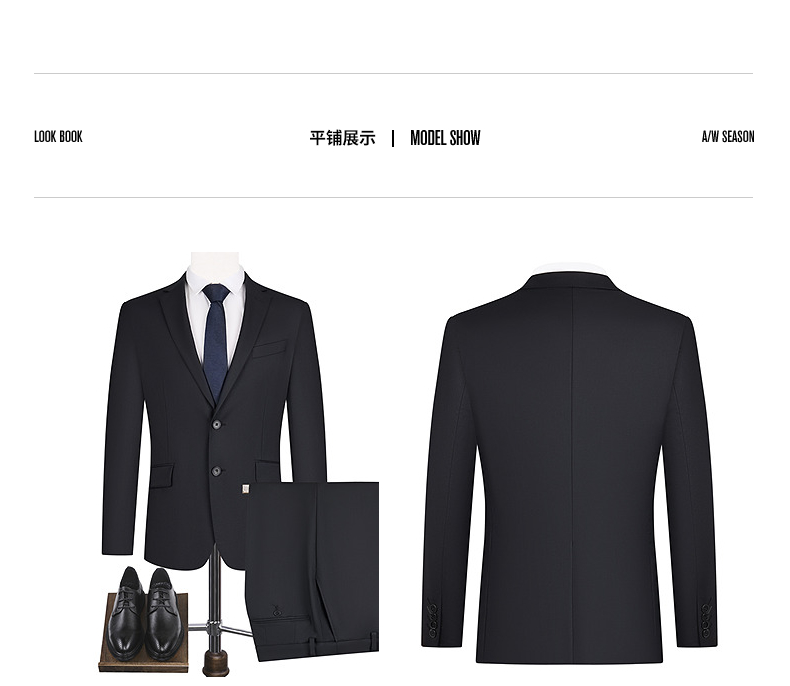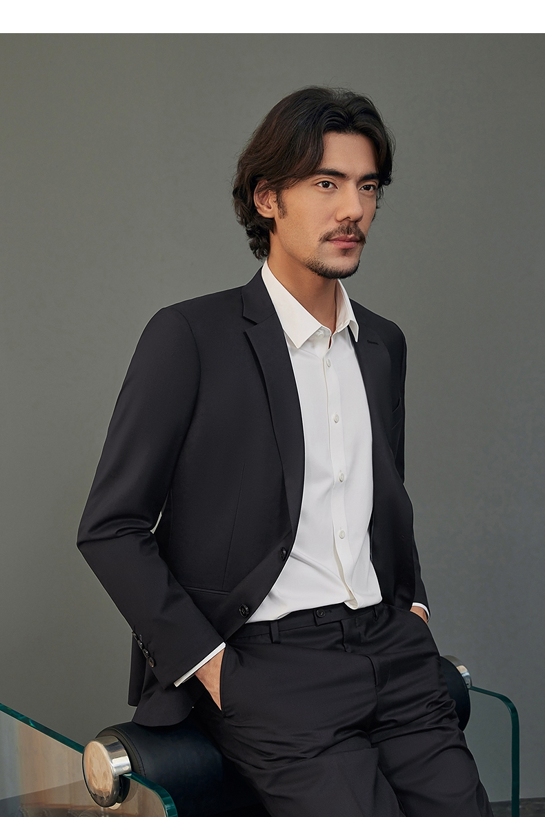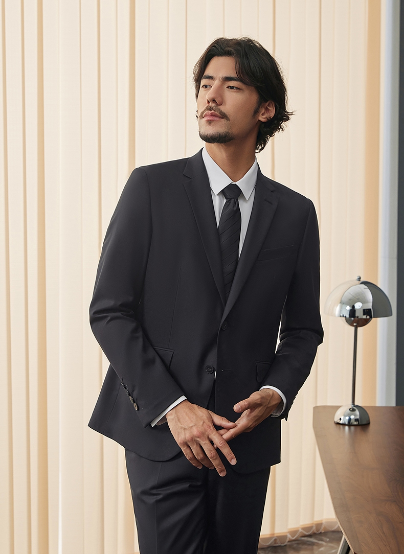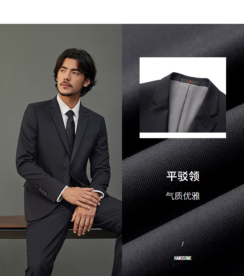 【婚礼季/毛料套西】柒牌西装套装男2025秋冬新款商务绅士黑色平驳领西服 127C71160