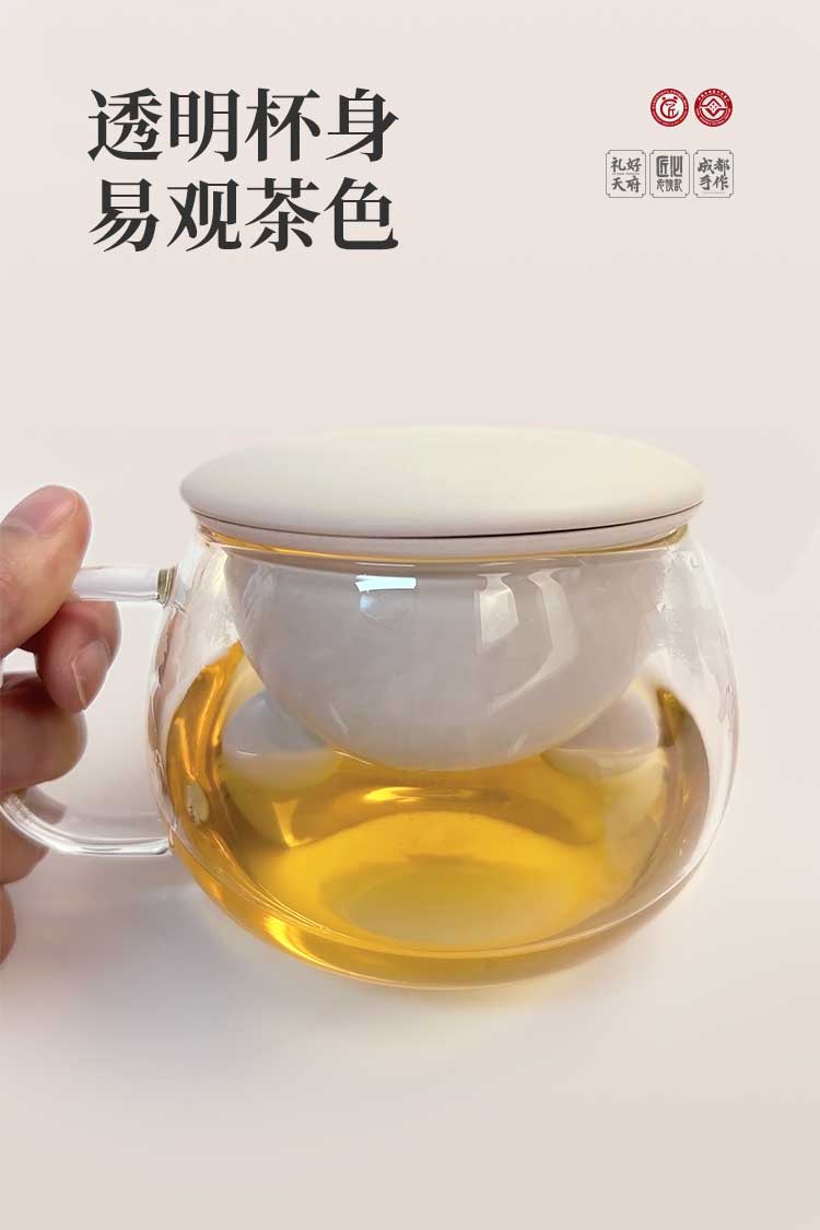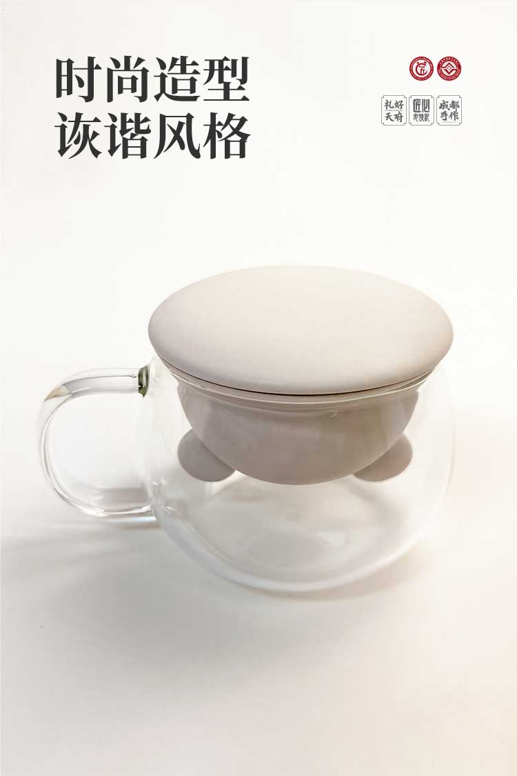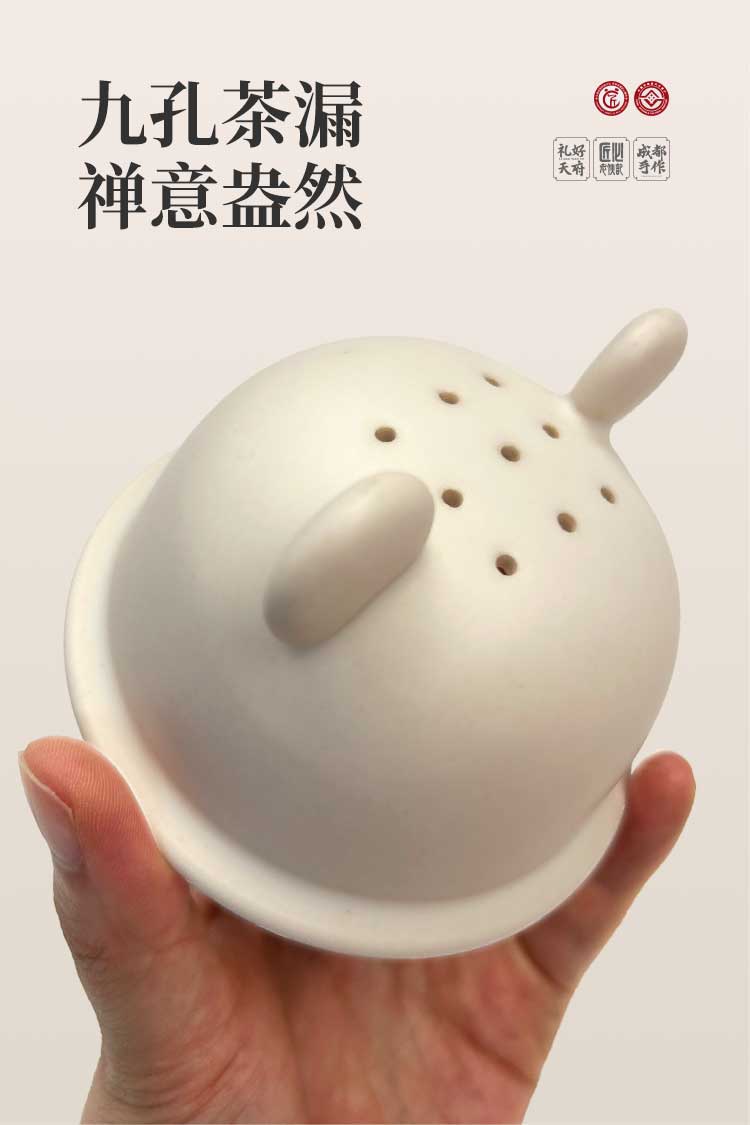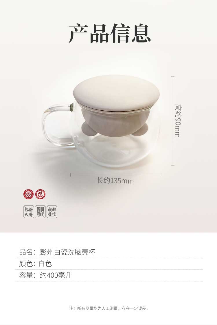 【彭州白瓷■洗脑壳飘逸杯】成都手作泡饮一体茶杯 家用高档送礼熊猫耳泡茶碗【非物质文化遗产】【大师匠作】