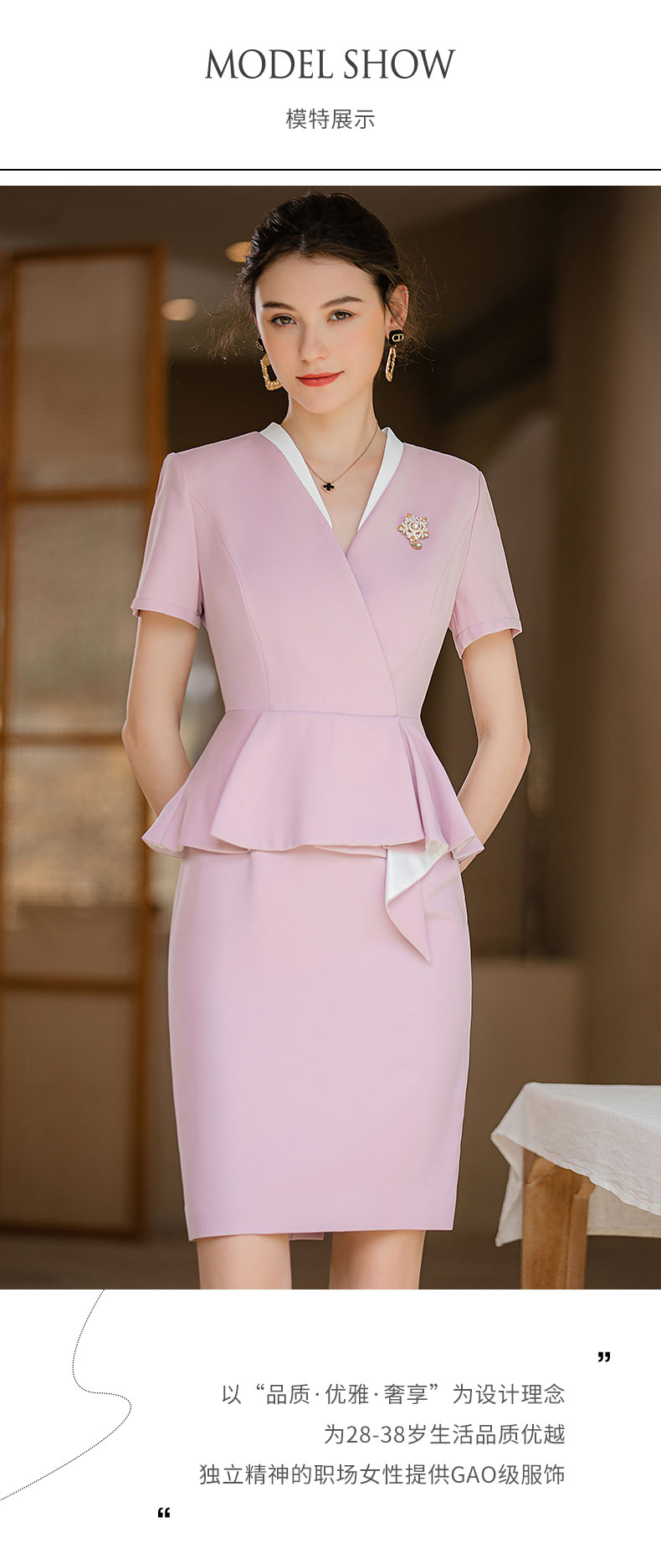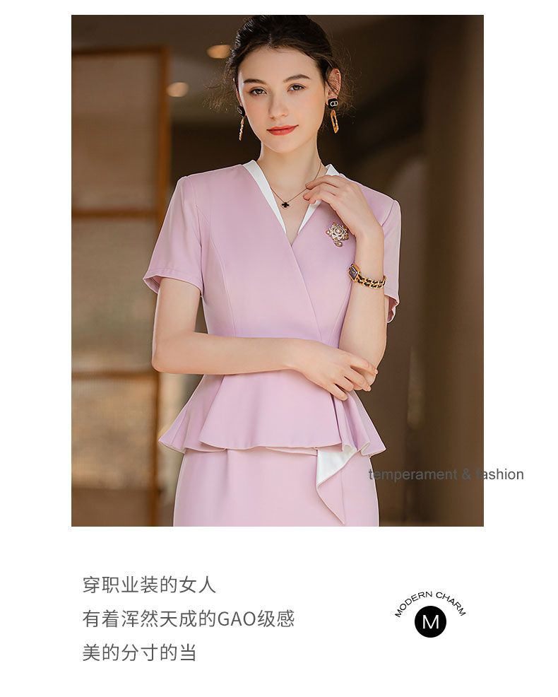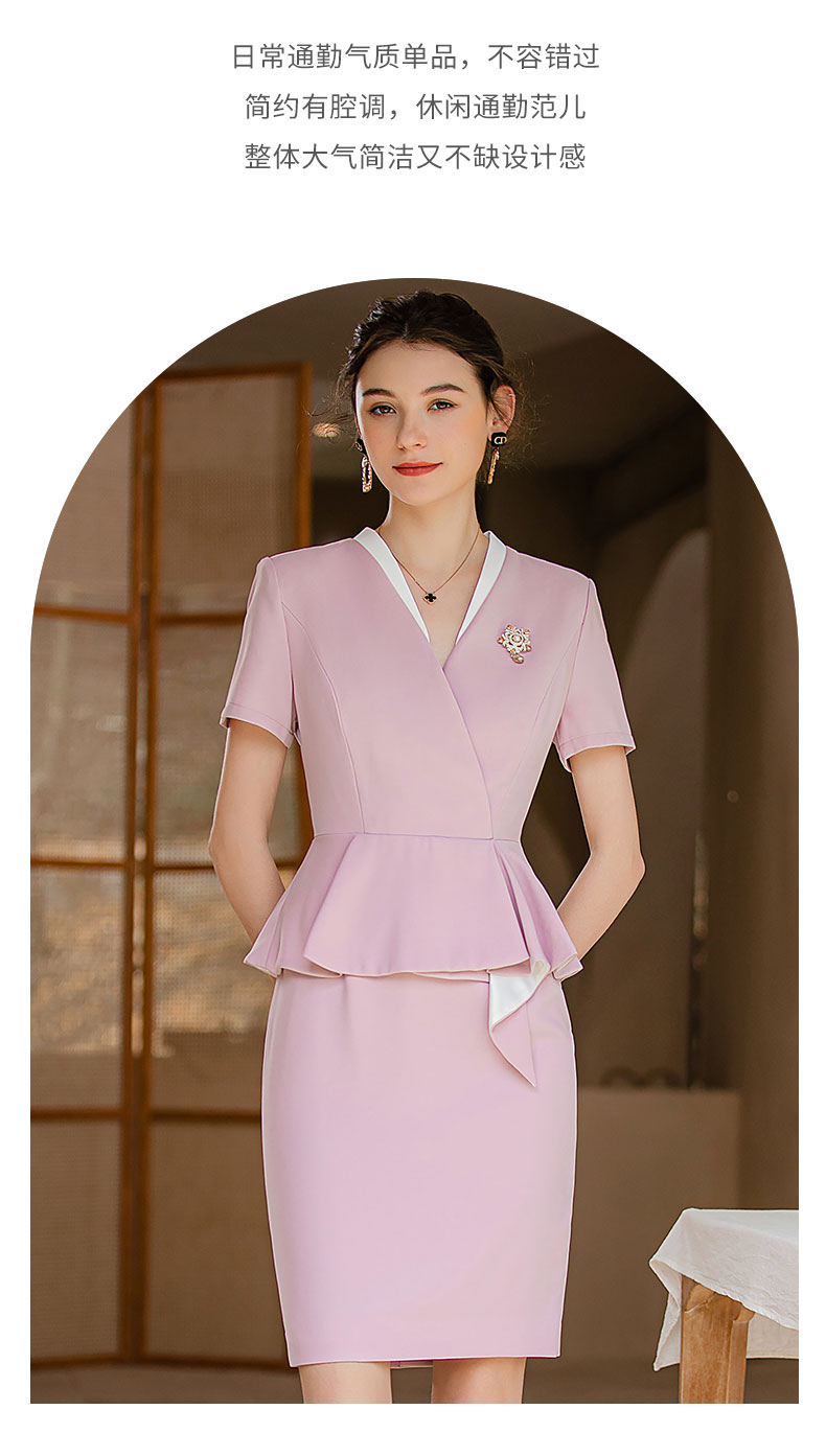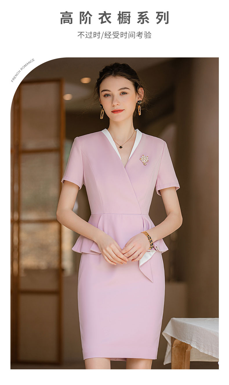 IWY/夏款气质假两件修身法式连衣裙女粉色高级感空姐工作服正装裙Q718