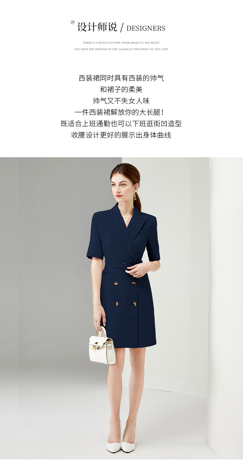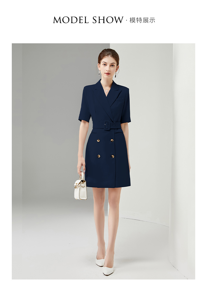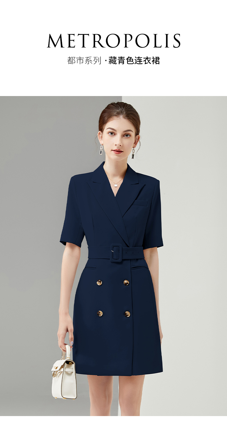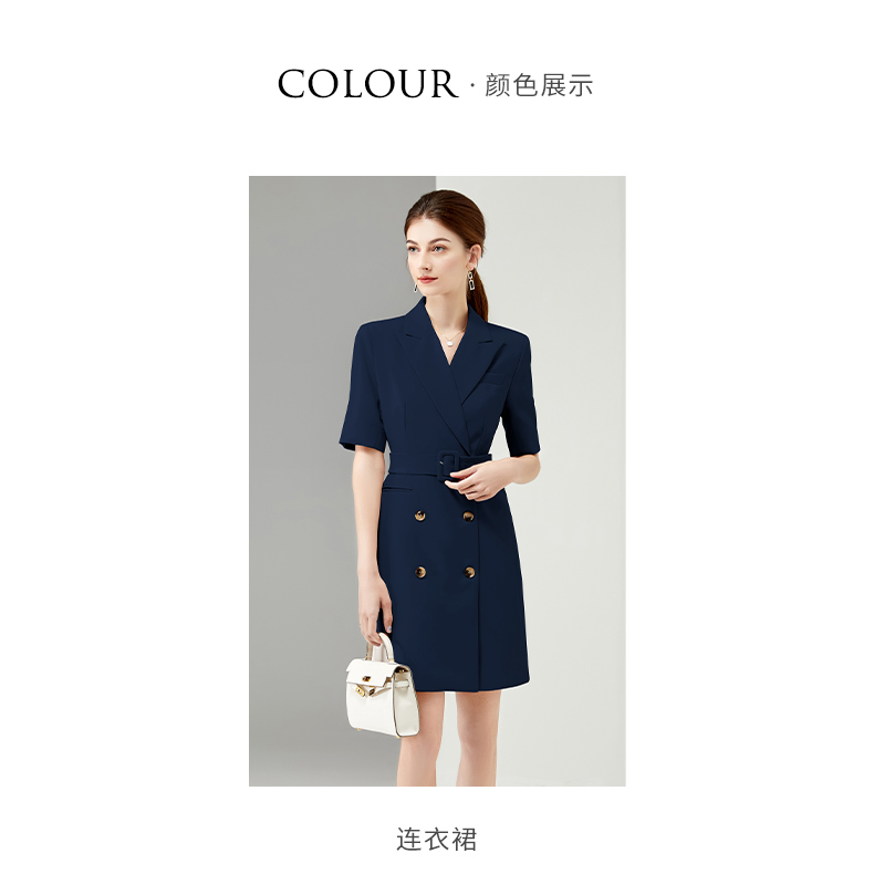 IWY/高端职业连衣裙女2022夏季修身显瘦藏青色气质短袖西装裙工装正装Q11248