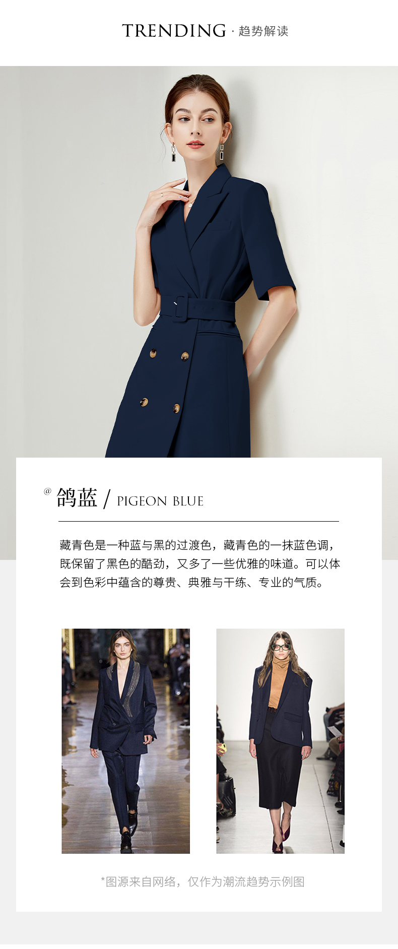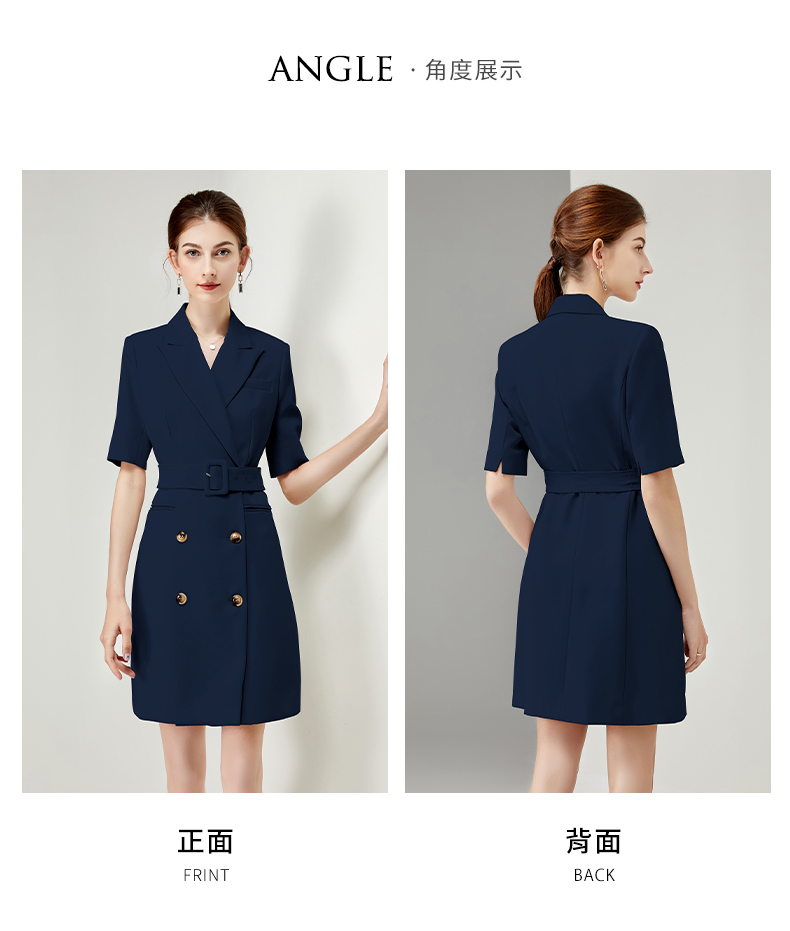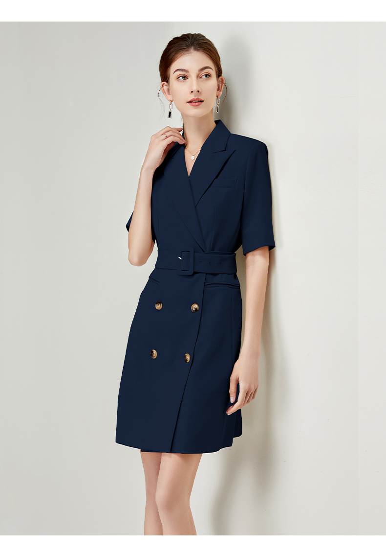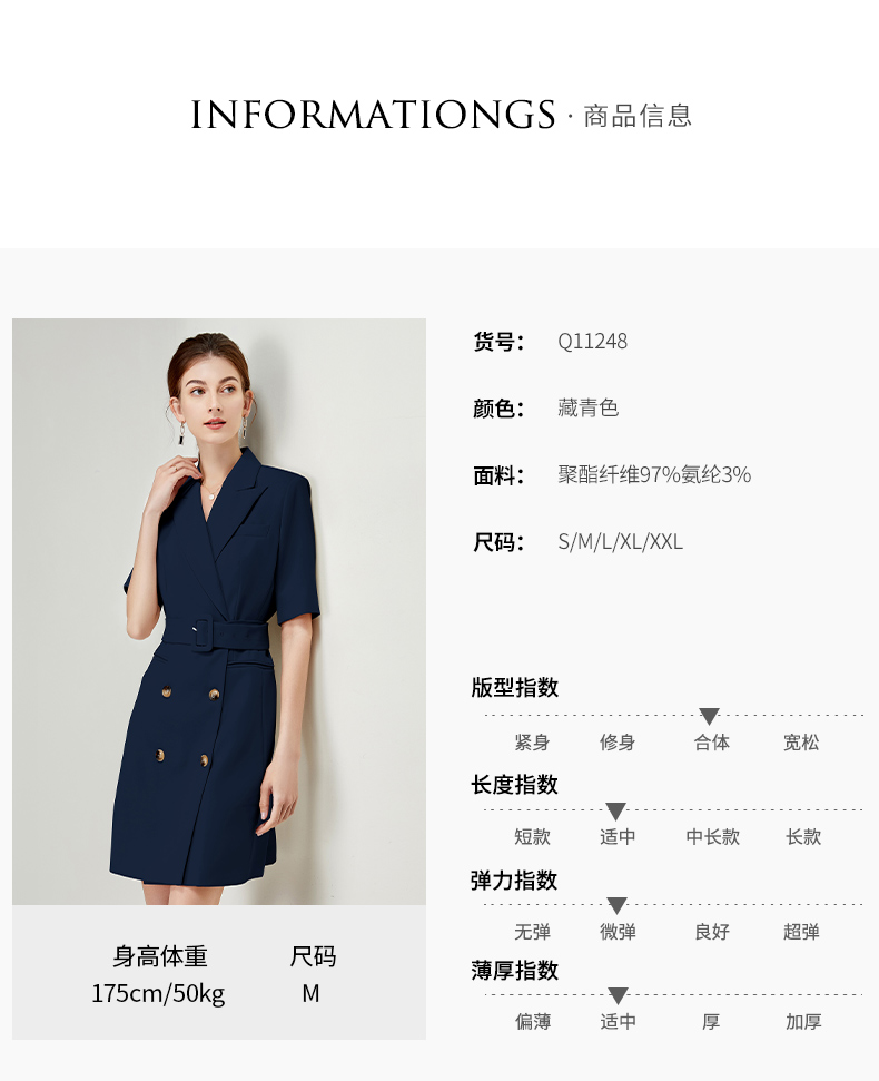 IWY/高端职业连衣裙女2022夏季修身显瘦藏青色气质短袖西装裙工装正装Q11248