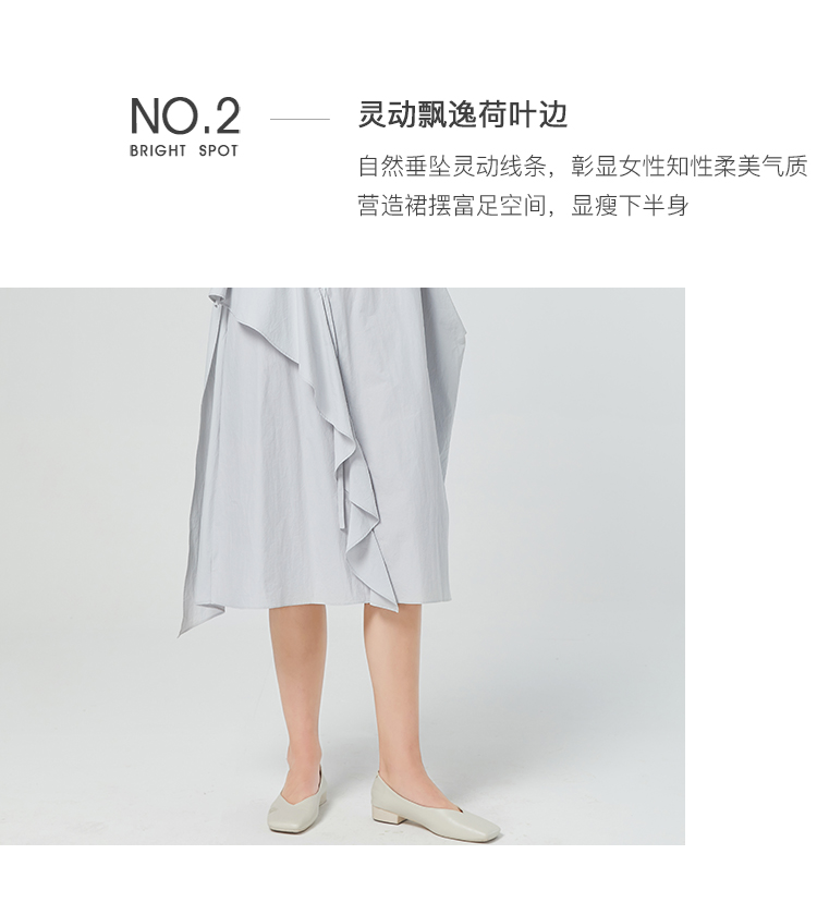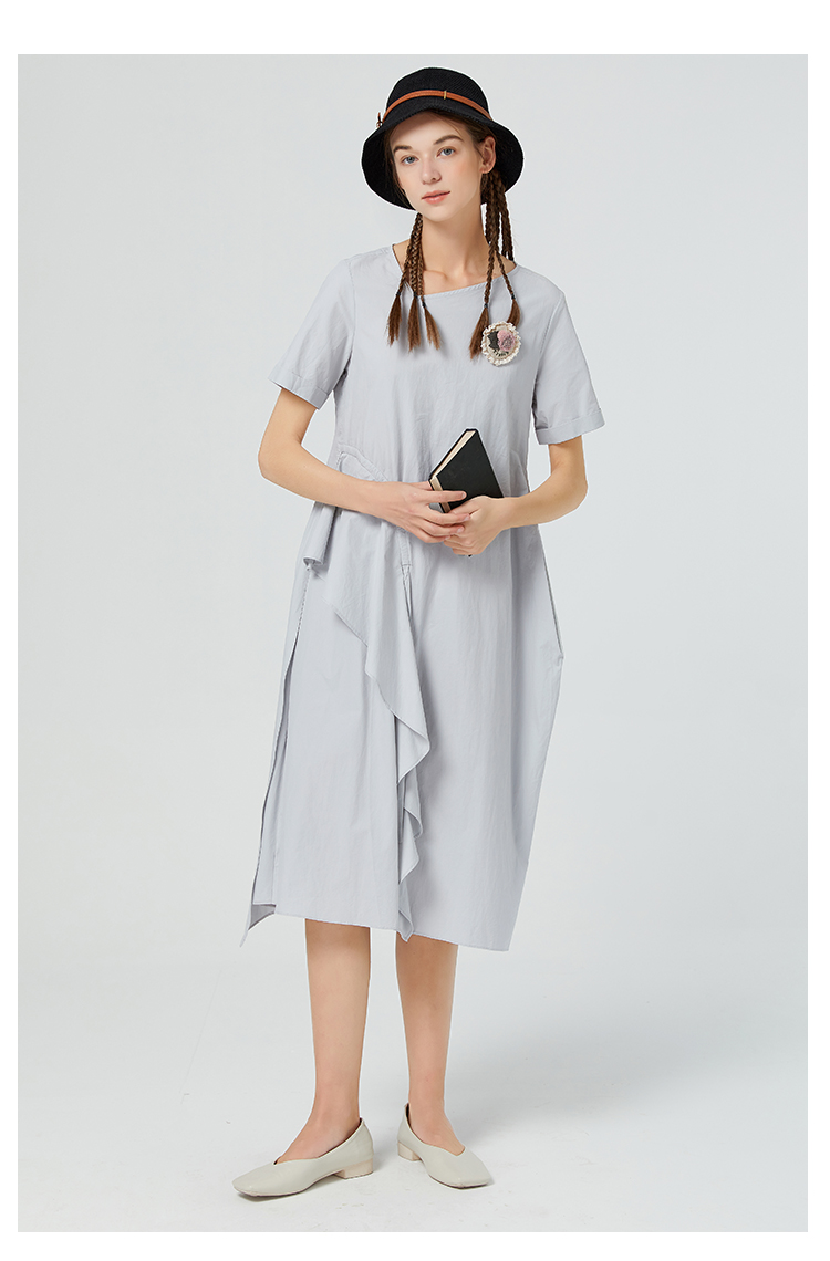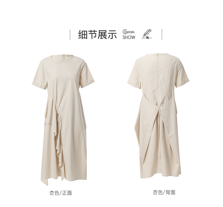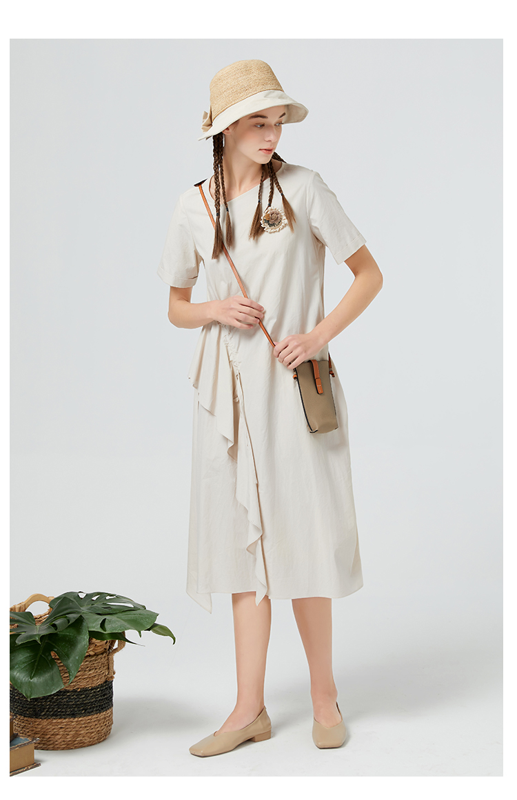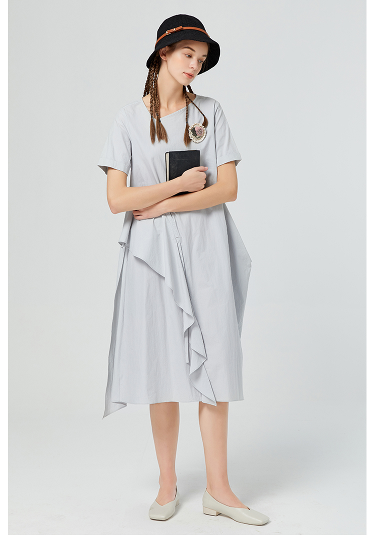 Famecoco范可儿纯棉不对称连衣裙女夏荷叶边长裙气质超仙F223FA006
